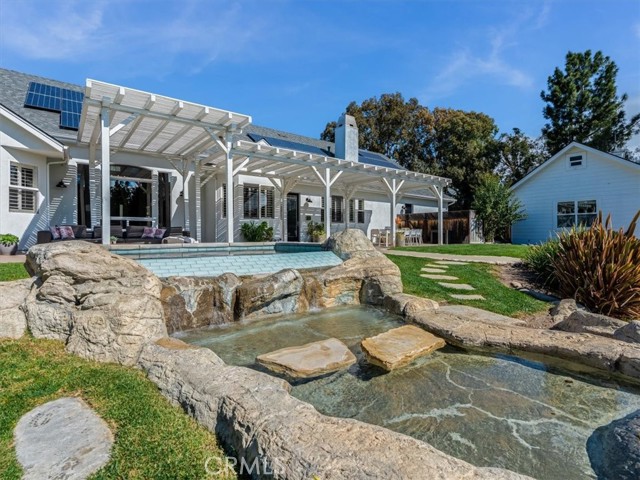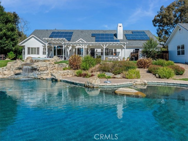 Contemporary Farmhouse meets modern luxury on a picturesque One-Acre Lot! This exceptional property seamlessly blends timeless farmhouse charm with modern elegance in one the most sought-after neighborhoods in Solvang. This sprawling home offers a peaceful retreat with high-end finishes, abundant natural light, and a thoughtfully designed layout perfect for both entertaining and everyday living. With four spacious bedrooms and three full bathrooms, plus a dedicated office/library and an upstairs bonus room ideal as a guest suite, playroom, gym, or media space this home is as functional as it is beautiful. Quality craftsmanship is evident throughout, featuring soaring ceilings, 8-foot solid wood interior doors, window lined walls dressed in classic white wooden shutters and newly installed rich maple hardwood floors all enhance the bright and inviting ambiance of the home. The chef s kitchen is a true showstopper, boasting quartz countertops, high-end stainless-steel appliances, a wine refrigerator, a breakfast bar, and a charming eat-in nook with garden views. The expansive primary suite serves as a private sanctuary, offering serene backyard views, a spa-like en-suite bathroom with an oversized dual-head shower, and a spacious walk-in closet. Designed for both relaxation and entertainment, the resort-style backyard is a private oasis. Multiple patio spaces provide an idyllic setting for outdoor dining and lounging, while the sparkling pool and infinity spa with cascading waterfalls offer a serene, park-like retreat. The two-story detached pool cabana conversion adds incredible versatility, offering additional living space with endless possibilities. Additional highlights include energy-efficient solar power, a generously sized laundry room with ample storage, full perimeter fencing with gated access, and an attached two-car garage. Located within the coveted Ballard School District, this property presents a rare opportunity to own a timeless farmhouse retreat that exudes both warmth and sophistication.Interested in this Listing?