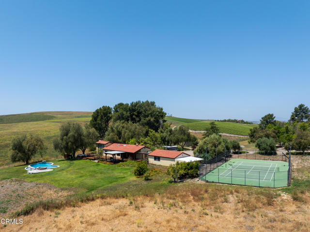 Set within Walking M Ranches off Ballard Canyon, 2851 Tapadero Road unveils a tranquil expanse of spectacular views. With 4 bedrooms and 3 bathrooms spread across approximately 2,499 square feet, this residence offers not only comfortable living space but also an opportunity to immerse yourself in the incredible vistas that surround it.As you step inside, you'll be captivated by the charm of the living room, complete with a wood-beamed ceiling, a stone fireplace, and large picture windows framing the breathtaking scenery. The formal dining room offers an elegant space for gatherings, while the kitchen features a farmhouse sink, stainless steel appliances, and a breakfast area with panoramic views.Relax in the family room, adorned with built-in cabinetry and wine racks, or retreat to the small loft accessed by a ladder for a cozy hideaway. The primary suite boasts a skylight and wood-beamed ceiling, providing a serene escape.Outside, an expansive deck overlooks the pool and spa, perfect for outdoor living and entertaining against the backdrop of the valley vistas. A tennis/basketball court with lights invites recreation day or night, while the petite guest house and barn overlook the boutique vineyard of Petite Syrah creating a charming atmosphere for your guests. Located in the School District of Los Olivos Elementary and Santa Ynez Valley Union High School, this home offers the perfect blend of luxury, comfort, and natural beauty. Don't miss the opportunity to make this your private retreat on 20.07 acres of land, where every day is graced with views of the gently rolling hills, vineyards, and age-old Oak trees of the Santa Ynez Valley.Interested in this Listing?