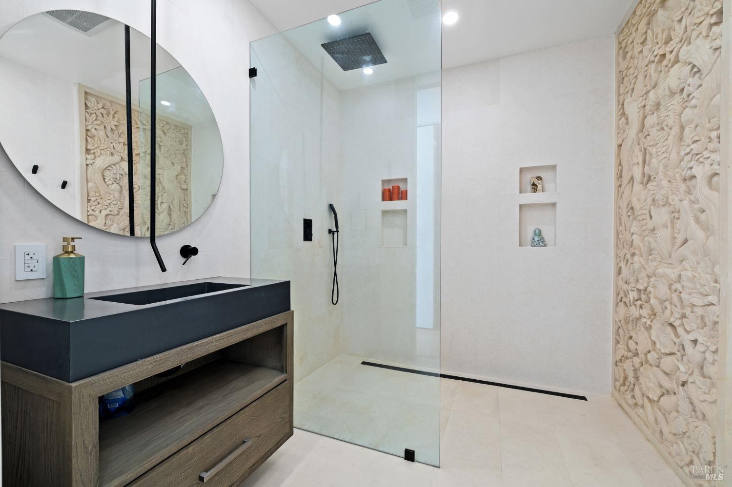 This stunning new custom build sets an unprecedented standard for innovative luxury in Bodega Bay. The thoughtfully designed 2000+ sq ft grand room has 10 ft floor-to-ceiling windows that showcase panoramic coastal views, & 24 ft sliders that seamlessly blend indoor/outdoor living. Gourmet chef's kitchen boasts hidden appliances, oversized waterfall quartz island, & custom cabinetry. The great room also offers multiple seating areas, sound-absorbent interiors, & dry sauna. Off the great room is a primary suite, with backyard access, ocean views, & all-marble bathroom with walk-in shower & soaking tub. The downstairs bedrooms each have ocean views & direct outdoor access. Two of the bedrooms are ensuite with walk-in closets. The bathrooms all feature custom marble work, towel warmers, & imported accent pieces. The final bedroom has four queen-size built-in bunk beds, perfect for group gatherings or Airbnb guests. This modern home is also equipped with solar, Tesla roof tiles, EV chargers, & smart systems to control lighting/temperature/doors/appliances. Pefectly situated in the sought-after community of North Bodega Harbour, offering numerous amenities: clubhouse, bar, gym, pool, golf, tennis/pickleball/bocce courts, & more. Nearby, enjoy wine tasting, seafood, trails, & beaches.Interested in this Listing?