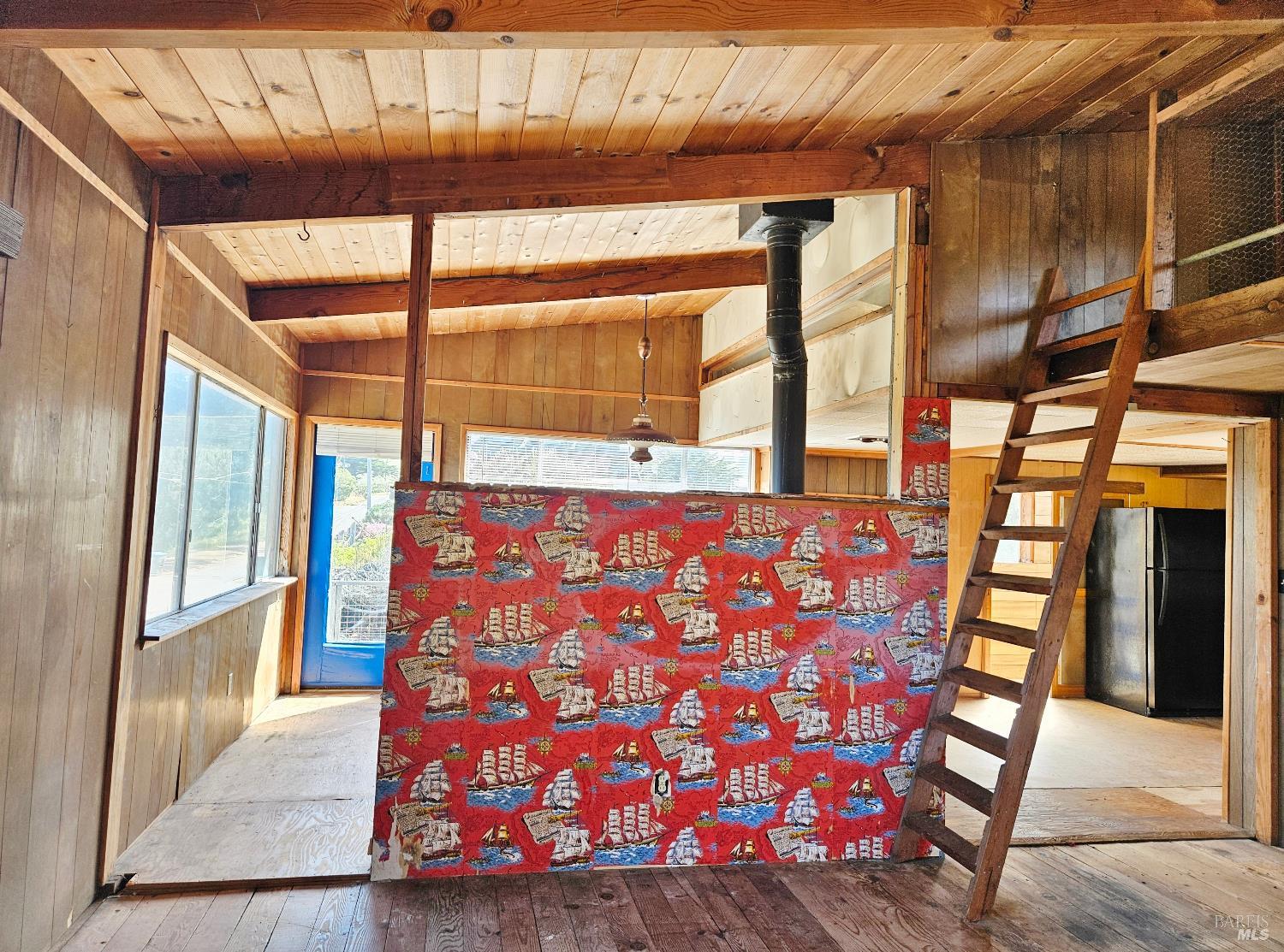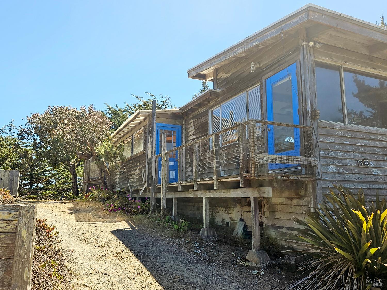 Unique home located in Salmon Creek, Bodega Bay. Large living room with a brick fireplace, fun sleeping loft for kids. A dining area with big picture windows have views of the ocean and the creek. There is a cozy gas fireplace in the dining area that can heat the whole house. Open beam ceilings. Tons of storage space you can even walk under the house where the washer and dryer hookups are and lots of space to store all your beach toys. Enjoy the sunny back porch off the living room. This home needs someone with a vision to remodel and make it a great place to come and enjoy the beach.Interested in this Listing?