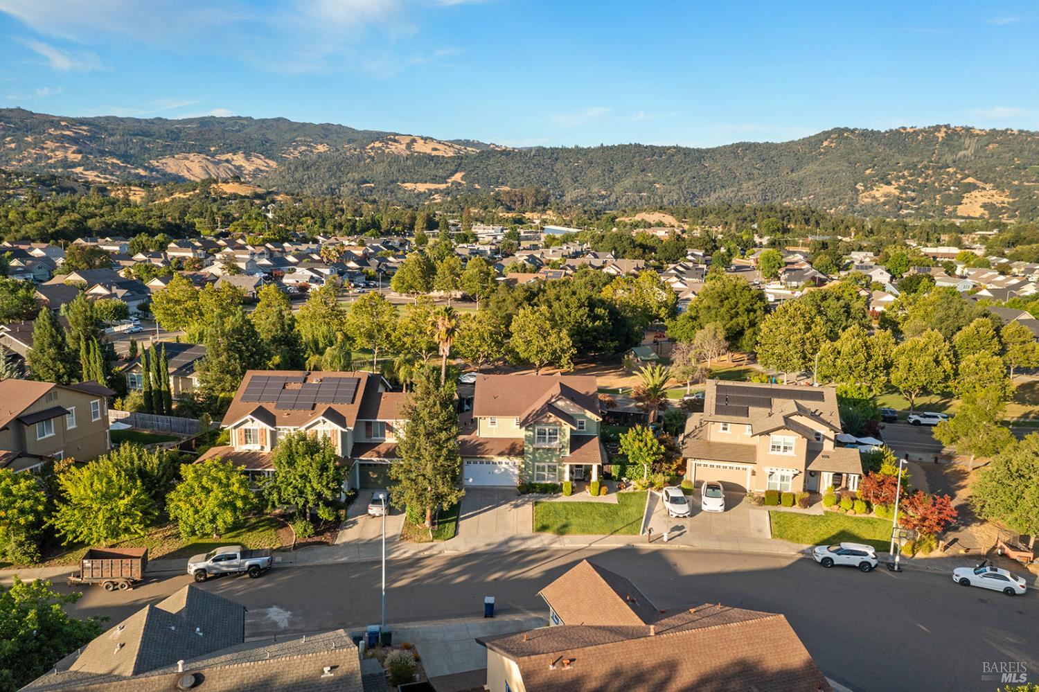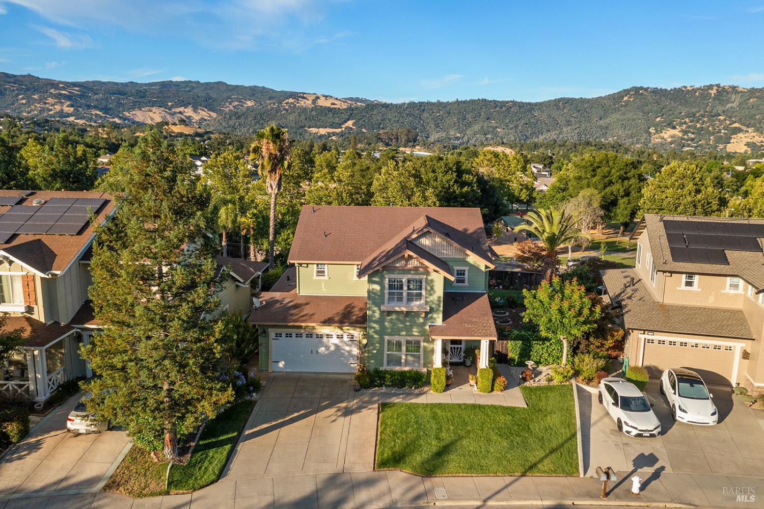 Tucked at the end of a peaceful cul-de-sac next to a neighborhood park, this Christopherson-built home combines timeless design with modern upgrades. Inside, soaring ceilings, oversized windows, plantation shutters, and LVP flooring create a light-filled, welcoming atmosphere. The kitchen features granite counters and includes a new refrigerator, while the formal dining room is perfect for gatherings. A downstairs bedroom and bath provide flexible living options, and the primary bedroom is expansive with a spa-like primary suite that features two separate vanity options for space and comfort. Enjoy dual-zone A/C, a separate electrical panel for a generator, and included washer and dryer. Outside, the backyard is made for entertaining, with lush gardens, vibrant flowers, raised garden beds, shed, and multiple areas to relax and connect. An inviting front porch and the tranquil mountain backdrop complete the Wine Country lifestyle, just minutes from Lake Sonoma, nearby hot springs, and Healdsburg's world-class wineries and dining.Interested in this Listing?