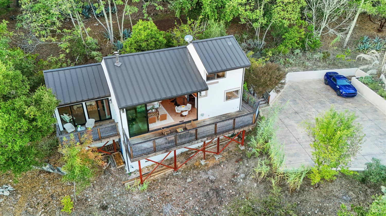 Welcome to 12303 Margie Lane a tranquil Sonoma Valley retreat. Perfectly positioned between the world-renowned wine regions of Sonoma and Napa, this distinctive Glen Ellen hideaway blends rustic charm with modern comfort. Set on 1.8 serene acres, the 1-bedroom, 1.5-bath home offers 1,190 square feet of thoughtfully designed living space, ideal as a full-time residence or a peaceful getaway from city life. A brand new stamped-concrete driveway welcomes you home, leading to a setting surrounded by nature and privacy. Inside, a dramatic sliding glass wall opens to sweeping views, creating a seamless indoor-outdoor connection perfect for morning coffee or evenings spent under the stars. The home's open layout features a striking metal circular staircase ascending to a cozy loft, ideal for an artist's nook, home office, or additional sleeping area. Recent upgrades include a new steel roof, new HVAC system, tankless water heater, new owned propane tank and lines, and a new water storage tank-ensuring comfort and efficiency year-round. Whether you're seeking a serene primary residence, a weekend retreat, or an inspiring creative escape, this one-of-a-kind property in the heart of Sonoma Valley invites you to slow down, breathe, and enjoy the beauty that surrounds you.Interested in this Listing?