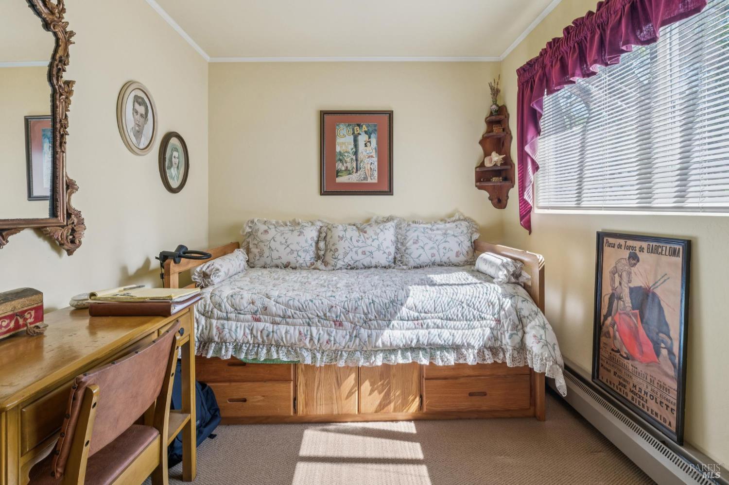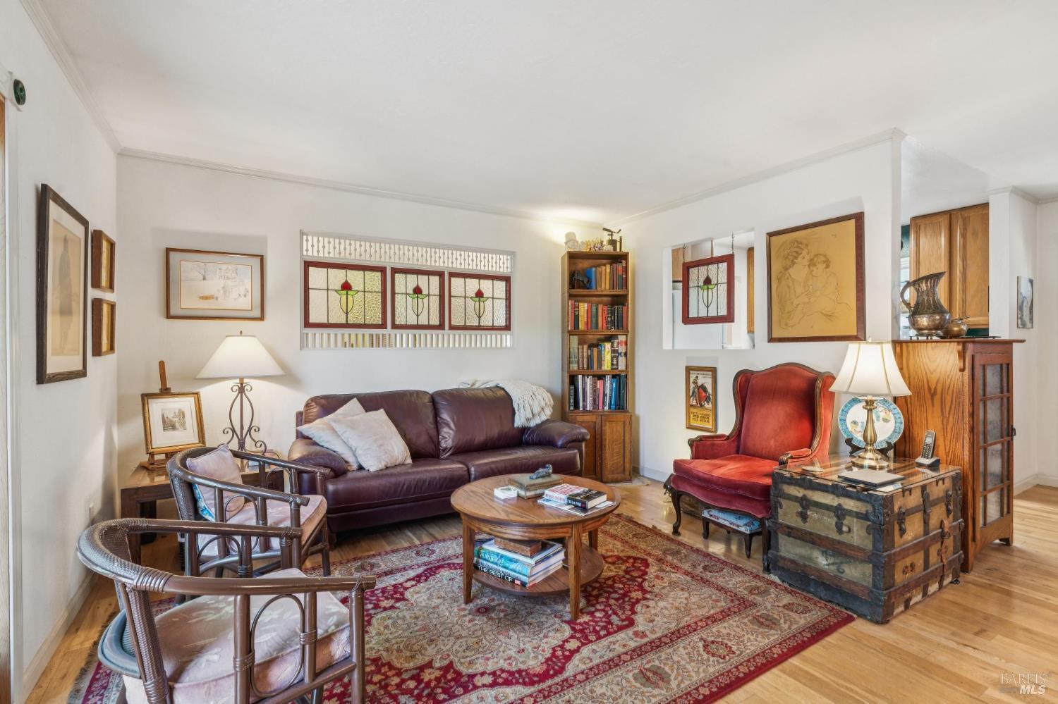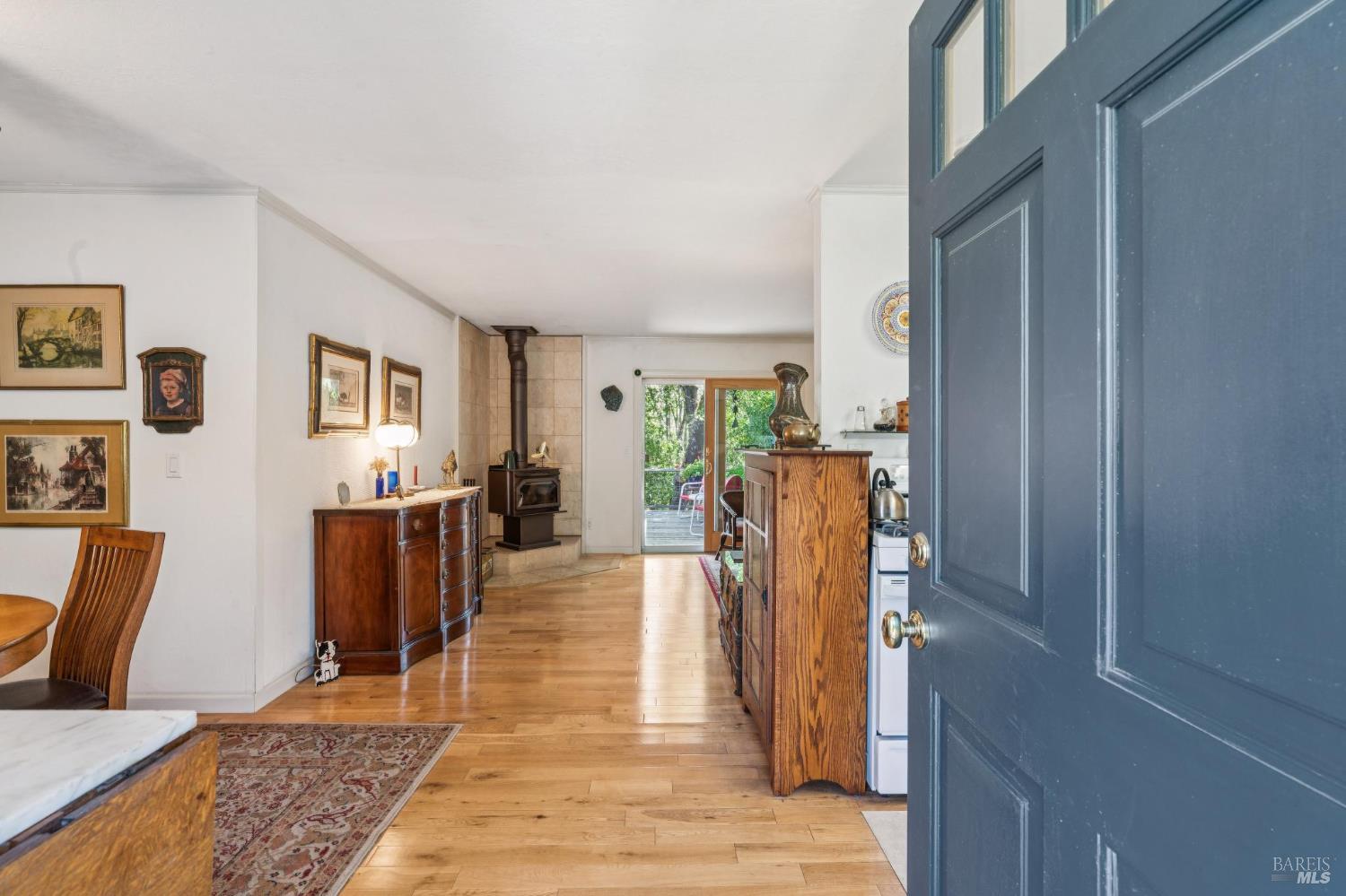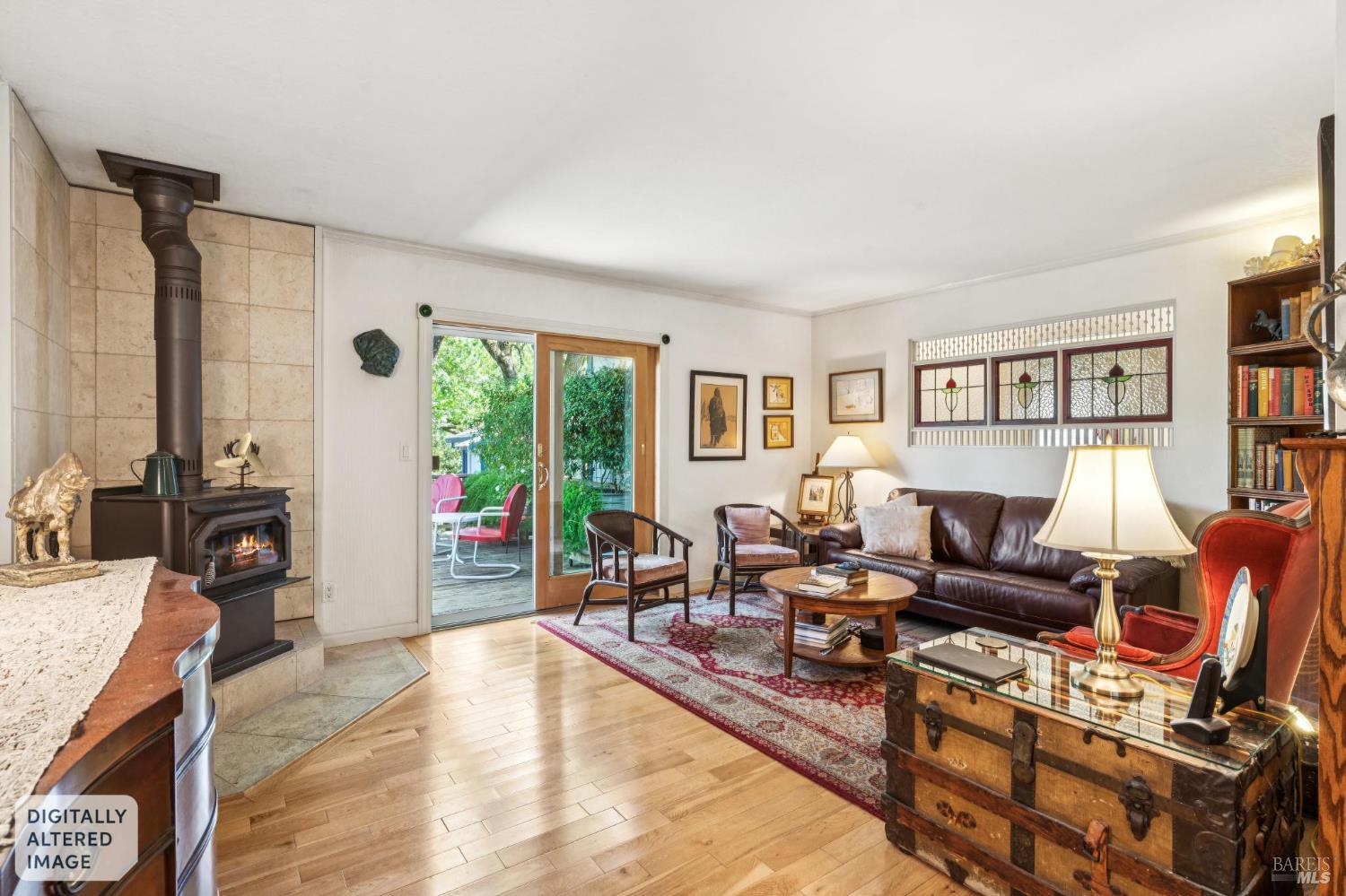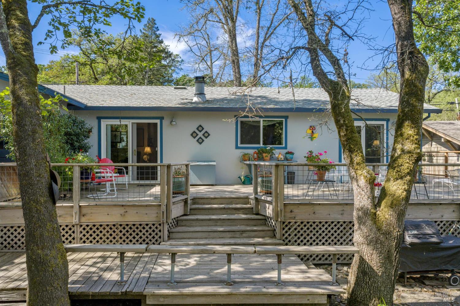Charming single-level home in the heart of Glen Ellen set along Sonoma Creek. This 4 bedroom, 2 bathroom residence offers approximately 1,480 sq ft on a spacious 0.39 acre lot. The functional floor plan features a welcoming living room with wood-burning fireplace, dining area, and galley kitchen. Wood floors run through the main living areas and hallway, with carpeted bedrooms for comfort. Two bedrooms and one bathroom are located on one side of the home, while two additional bedrooms and a second bathroom are situated on the opposite side, providing privacy and flexibility. Several rooms open to a large rear deck overlooking the backyard, mature oak trees, and Sonoma Creek, creating a peaceful setting for relaxing or entertaining. Additional features include public water and sewer, an attached one-car garage, utility shed, and a detached secondary structure offering potential for an ADU or creative workspace. The generous lot provides room for gardening and outdoor enjoyment in a desirable Sonoma Valley location close to the village of Glen Ellen, parks, and wineries.Interested in this Listing?