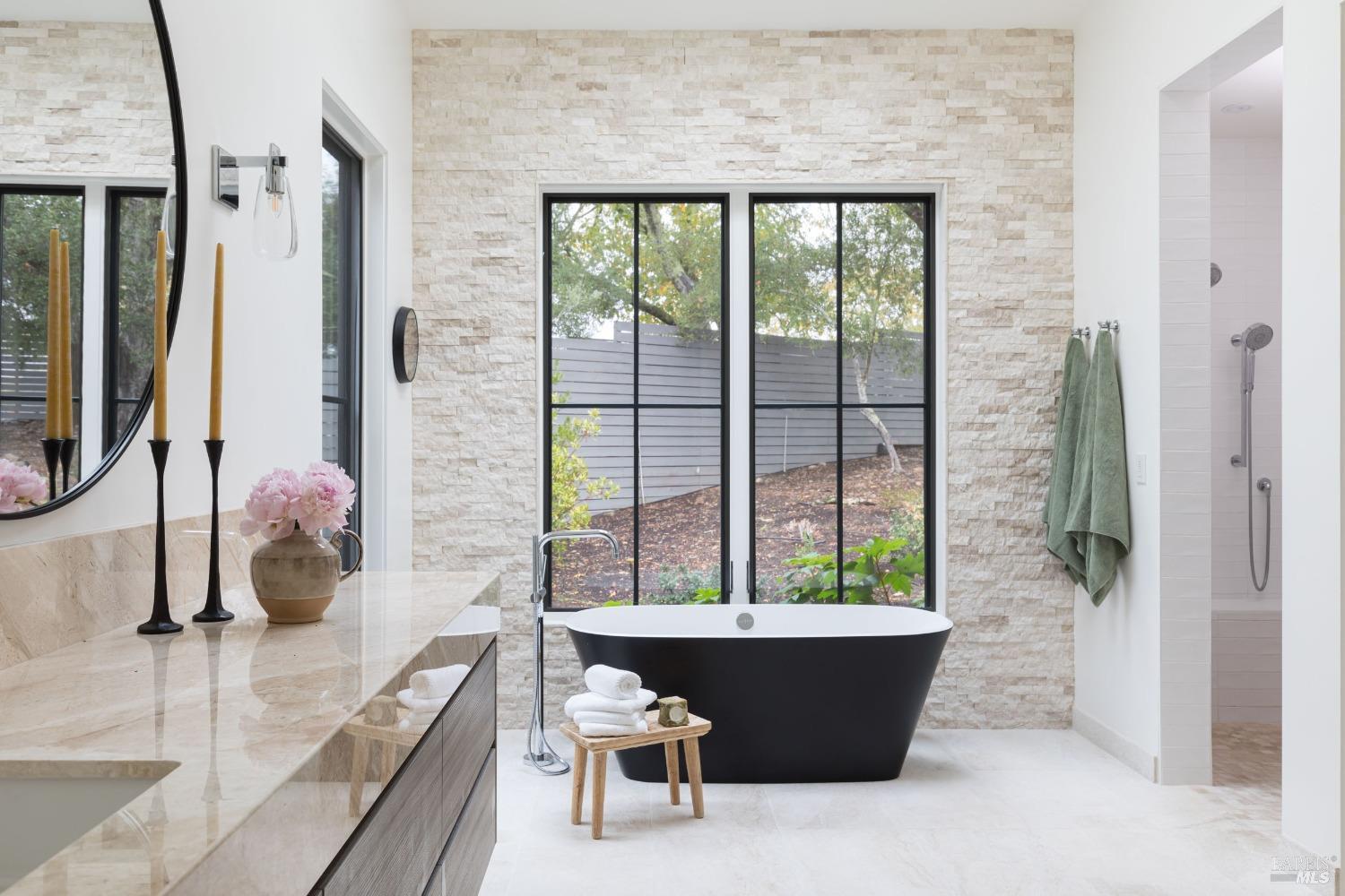 1970 Warm Springs Road is an exquisitely designed home with unique features found throughout. The gorgeous property provides a bucolic setting with mature oak trees, a meadow, and manicured landscaping. The outdoor kitchen boasts a Forno Bravo pizza oven, a Paella station, and a Hestan grill inspired by the one found within the Napa Valley icon, The French Laundry. The interior of the home is equally stunning. The space on the first floor has polished concrete floors, a wet bar, and a fully soundproof recording studio. In the main living area you'll find an infinity window providing a treehouse feel. An expansive deck invites you to experience the breathtaking views of vineyards and Sonoma Mountain beyond. The kitchen has premium appliances, custom cabinetry, and a pop out window allowing for seamless indoor/outdoor entertaining. The primary bedroom is a sanctuary among the trees and each guest bedroom has its own ensuite bathroom. With its picturesque setting and impeccable design, this home is truly remarkable.Interested in this Listing?