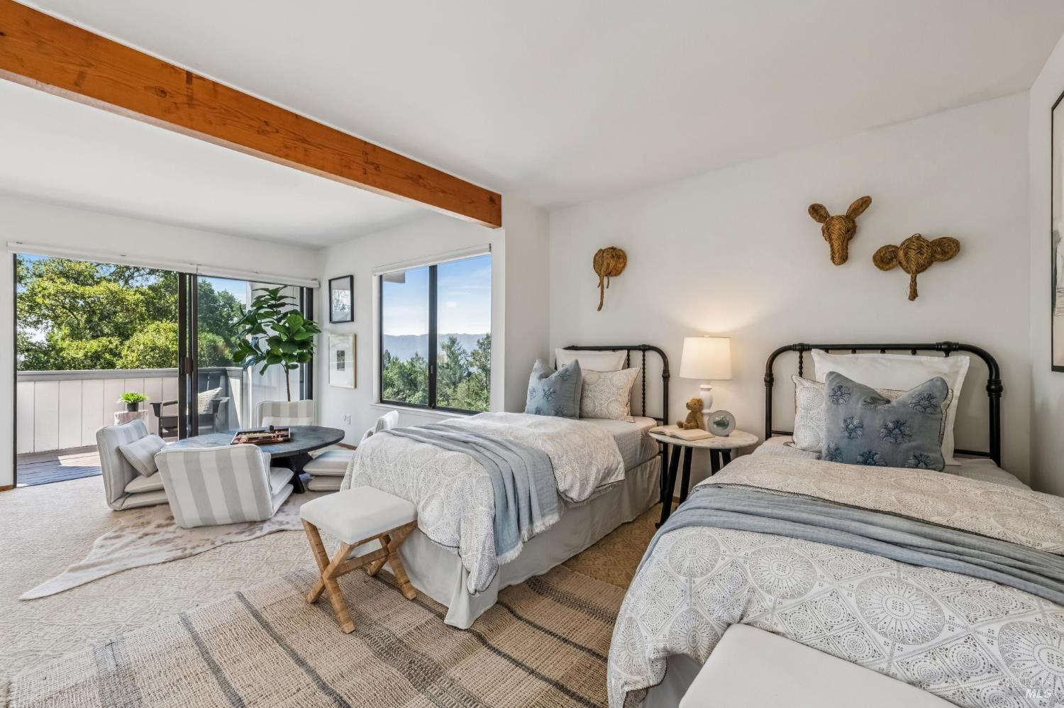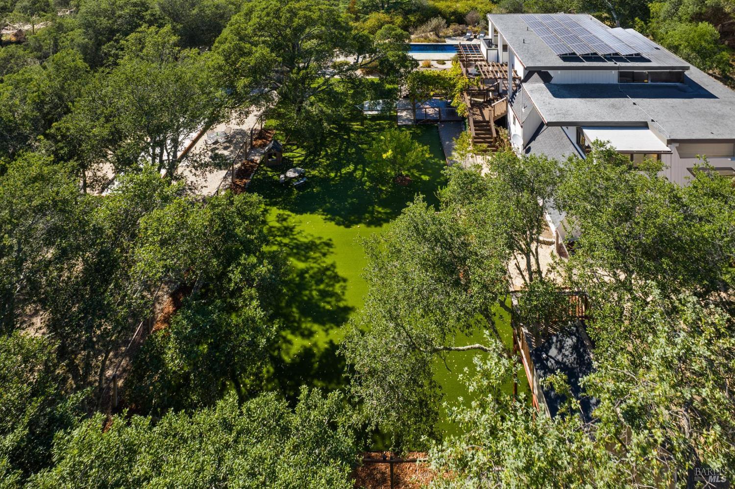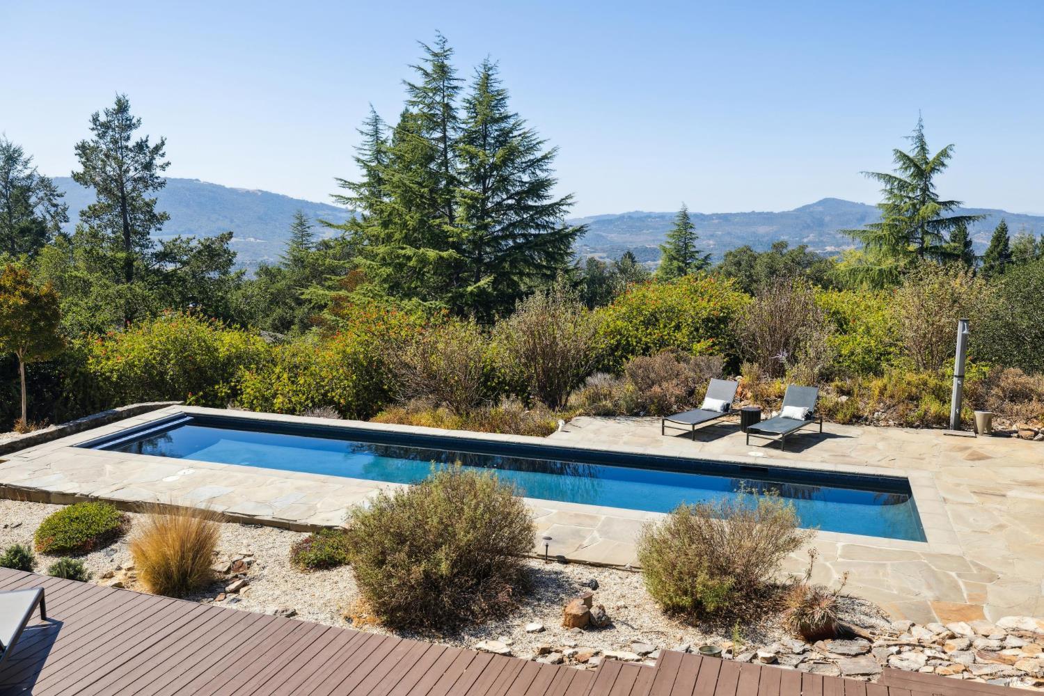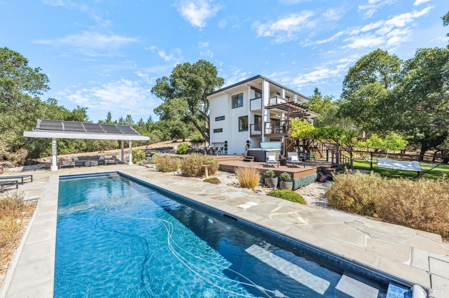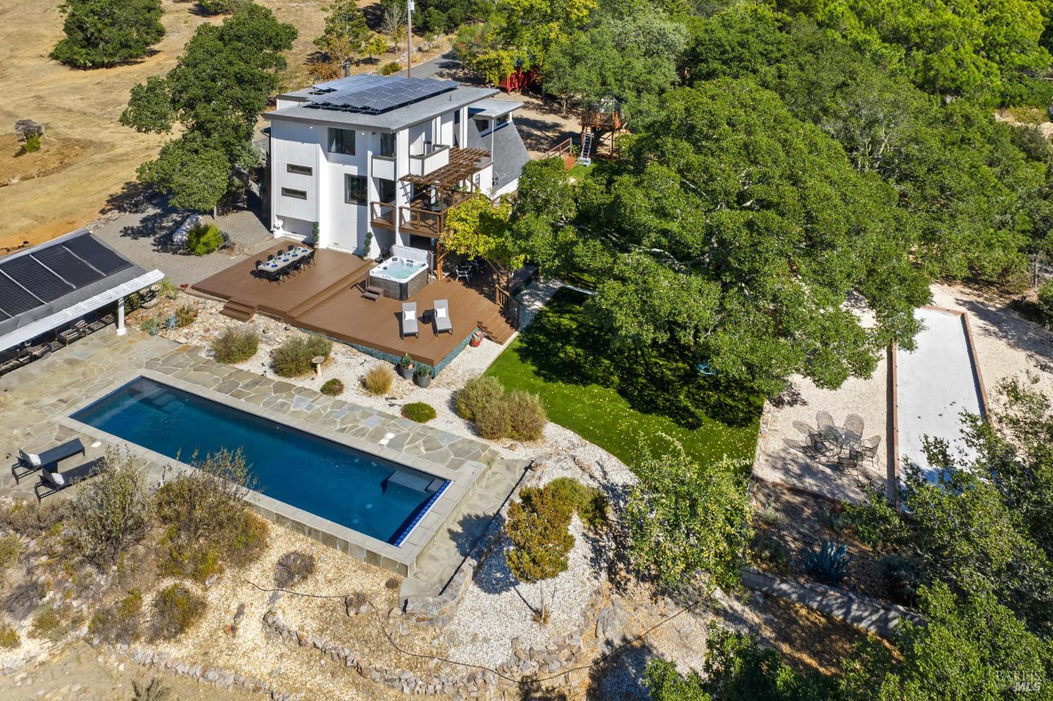 Now offered at $1,850,000 - exceptional value in Glen Ellen's coveted Trinity area. Framed by majestic oaks and redwoods on approx. 3.36 acres, this contemporary retreat delivers the Wine Country lifestyle with room to relax, gather, and play. Inside, soaring beamed ceilings and hardwood floors set a warm, airy tone. The chef's kitchen boasts granite countertops, cherrywood cabinetry, a pantry, and a sunny breakfast nook overlooking the deck. Two spacious bedroom suites provide great separationone with a walk-in closet and balcony, the other with a light-filled sunroomwhile the versatile loft suits office, fitness, or guest use. Upgrades include a fully owned smart solar system under warranty, enhancing energy efficiency. A two-car garage with extra storage and a wine cellar completes the interior. Outdoors, swim in the sparkling lap pool, unwind in the hot tub, play bocce or horseshoes, and entertain under the open-air pavilion. A broad lawn, fenced garden with fruit trees, and whimsical extrasa treehouse and zip linecreate your own private park. With valley panoramas from many windows, this is indoor-outdoor living at its best. Potential for a vacation rental permit; buyer to verify.Interested in this Listing?