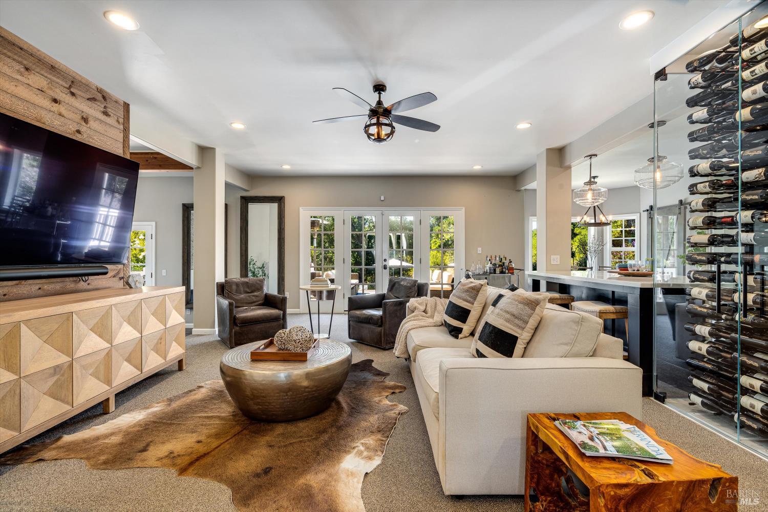 Surrounded by open space and a seasonal creek, this Glen Ellen sanctuary blends privacy, nature, and turnkey comfort on 2.36 acres. Enjoy peaceful views of trees, birds, and visiting deer from nearly every window, with the quiet, restorative feel that makes Glen Ellen living so special. Offering over 3,000 square feet of beautifully updated interiors, the home features generous gathering spaces and an elegant formal dining room for effortless entertaining. Three ensuite bedrooms provide comfort and separation, including a highly desirable main-level ensuite with its own exterior accessideal as a private guest suite or flexible retreat. An additional dedicated space off one of the two upstairs ensuite bedrooms adds everyday functionality, whether you work from home, create, exercise, nursery or simply need extra space. Outdoor living shines with an expansive wraparound porch and a sunny pool/spa area with room for loungers, umbrellas, and relaxed afternoons under the sky. Thoughtful upgrades include a new pool/spa, updated appliances, improved HVAC ducting, EV charger, custom redwood fencing, deer fenced raised bed garden. A striking floor-to-ceiling glass wine display adds a modern focal point to the open living space. Approved septic expansion plans provides option to build another structure with two additional bedrooms. Vacation rental potential (buyer to verify) make this a property a truly flexible investment to enjoy over the years. This is a rare Glen Ellen offeringprivate, polished, and ready to enjoy from day one.Interested in this Listing?