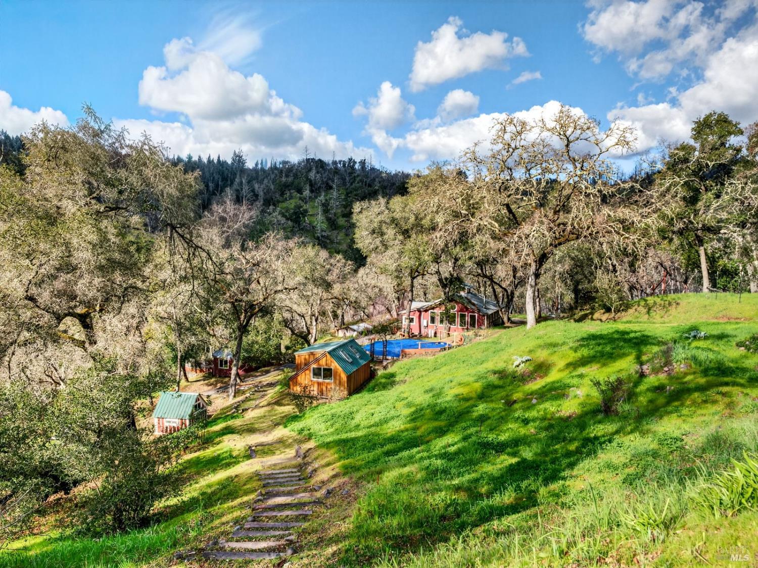 A truly unique offering tucked between Healdsburg and Calistoga, this one-of-a-kind property blends history, natural beauty, and exceptional versatility. Spanning 10.59 acres across two parcels, the property offers added flexibility and future potential. Enter through a gated private entry and discover a serene, park-like setting featuring open views and a true sense of privacy. The property includes a 1,037 sq ft studio home, detached guest studio, yurt, small art studio, and a tiny home currently operating as a successful Airbnb, creating immediate income potential and endless use possibilities. Maacama Creek borders the edge of the property, offering a beautiful, year-round stream with private access, an ideal backdrop for a peaceful retreat or creative escape. A natural spring on the property further enhances the land's beauty and self-sustaining appeal, adding to the rare and special character of this offering. At the top of the property sits a stunning, flat building site with sweeping views, perfectly positioned to build your dream home in addition to the existing structures. Continuously operated as a camp, retreat center, and school from 1949-2019 with an established use permit, the property carries a long-standing legacy of community, education, and gathering. Most recently home to the Leap Year School from 2002-2019, this special property offers a rare opportunity for a private compound, retreat center, educational space, or investment. Located just seconds from world-class wineries and approximately a 15-minute drive to both downtown Healdsburg and Calistoga, this property offers a private oasis in the heart of Wine Country with exceptional versatility and income potential.Interested in this Listing?