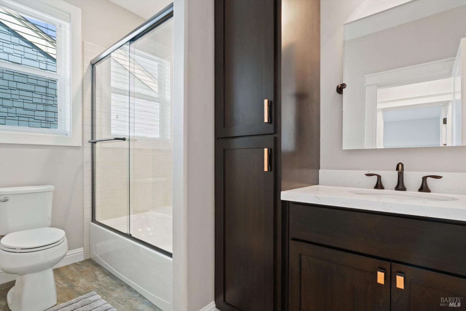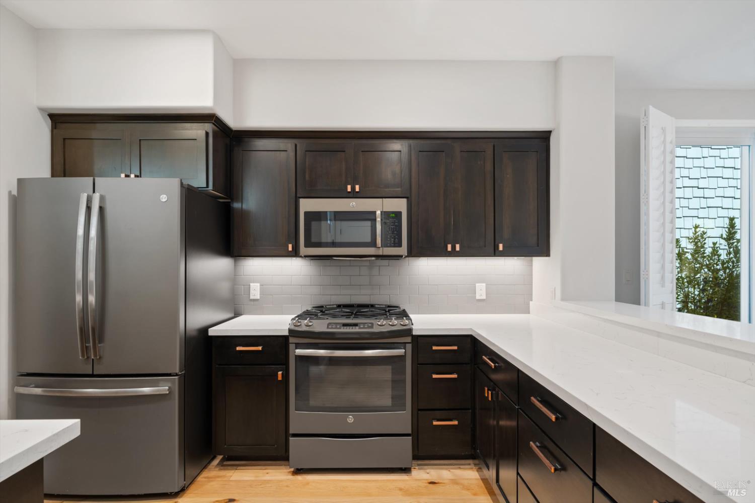 Welcome to 124 Grayson Way, a beautifully upgraded home in the heart of Healdsburg that combines timeless style with modern comfort. Rich hickory hardwood floors flow throughout the living areas, while porcelain tile elevates each bathroom and a chic tile backsplash enhances the kitchen. Light filters softly through Hunter Douglas window coverings and plantation shutters, with additional up-and-down shutters in the primary suite for privacy. Every bathroom features sleek Sliding Arrow Glass shower doors, and French doors create an elegant entry into the downstairs bedroom/office. The garage is fully finished with epoxy flooring, custom cabinetry, painted walls and ceiling, and an outlet for an electric car charger. Outdoors, a large Trex deck and porcelain tile patio invite gatherings, surrounded by professionally landscaped front and back yards, with thoughtful details. Every detail has been carefully considered, making this home a rare blend of beauty and comfort.Interested in this Listing?