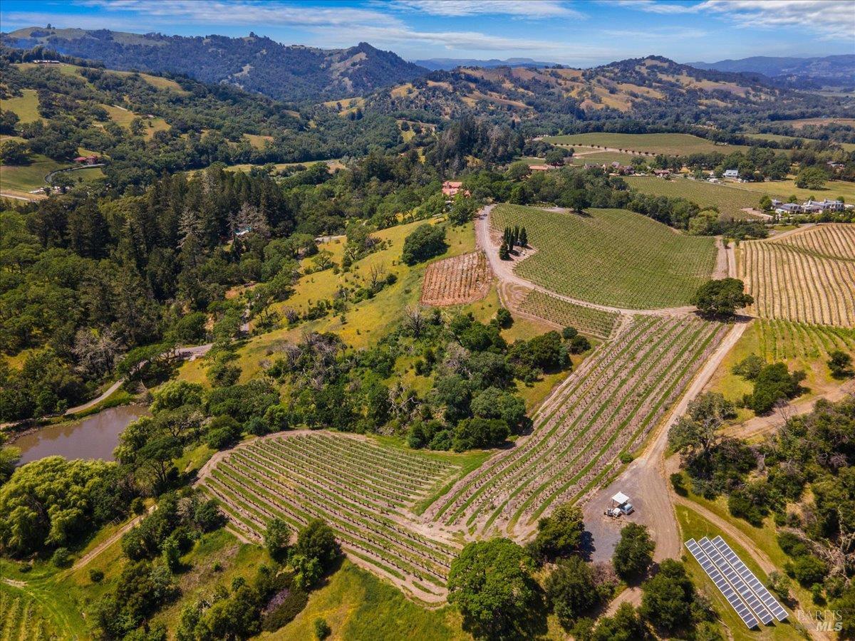 Flora Ranch Estate sits on 40+ acres atop a vineyard knoll with a beautiful custom-built Mediterranean inspired home overlooking Alexander Valley and Mt Saint Helena with panoramic views. Inside the home, warm, inviting spaces feature soaring beam-wrapped cathedral ceilings, an open-concept layout, and serene seating areas throughout to relax amongst the views. Step onto the wrap-around back deck and enjoy the infinity-edge pool and spa, seamlessly blending indoor-outdoor living. The home's lower level reveals a winemaking lounge and small production space built into the hill for aging your own estate grown Cabernet Sauvignon, sourced from 15 acres of sustainably farmed, hillside vineyards planted in ancient volcanic soils. The rolling terrain enhances both vineyard character and breathtaking views. Flora Ranch Estate offers a rare opportunity to join or expand within Alexander Valley's esteemed wine growing and agricultural community. The rich land is not only planted to award winning grapes but you'll also find flowers, raised garden beds, an irrigated orchard and a picturesque pond draped with large willow trees. Enjoy the peacefulness of gorgeous wine country living yet just 15 minutes to Healdsburg Plaza, 15 min to Santa Rosa Airport & 20 min to Napa Valley's Calistoga.Interested in this Listing?