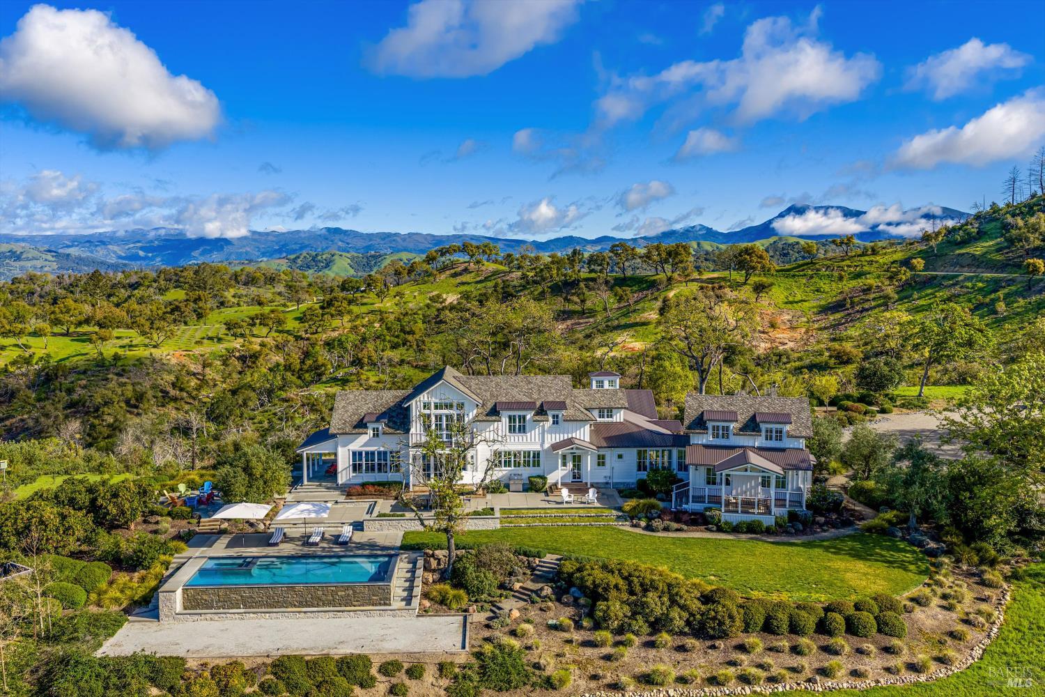 Sited upon a naturally protected contour on 113 acres in one of Northern California's most desirable wine country settings, The Clearview Estate is a luxury vineyard estate near Healdsburg in Sonoma County, offering remarkable privacy, unobstructed sweeping views, and refined living in the heart of wine country. Just minutes from the Michelin-starred dining of Healdsburg, renowned wineries, and Sonoma County Airport, and approximately 1 hour from San Francisco, the property offers a rare balance of privacy and accessibility. The gently rolling landscape includes 7.5 acres of premium Cabernet Sauvignon vineyard under lease, offering the perks of vineyard ownership without the responsibilities of management. A five-mile trail network winds through open meadows, seasonal creeks, and around a tranquil reservoir below the residence, creating an exceptional setting for hiking, mountain biking, horseback riding, and exploring the natural beauty of the land. The 4,288 sq. ft. custom residence, built by respected wine country builder Total Concepts, reflects authentic farmhouse architecture with vaulted ceilings, expansive windows, and seamless indoor-outdoor living. The formal living room flows into the dining room with exposed beams and folding glass doors opening to outdoor spaces and a screened porch with fireplace. The kitchen features a generous butcher-block island, elevated appliance selection, walk-in pantry, and abundant windows framing the surrounding landscape. The entire second level is dedicated to the primary suite, offering vaulted ceilings, fireplace, multiple view balconies, spa-inspired bath with soaking tub, and dual walk-in closets. A private guest wing with its own living area, bedroom, sleeping loft, and covered porch provides comfortable accommodations for visitors. A temperature controlled wine cellar offers ample storage for collectors. Outdoor amenities include an infinity-edge pool and spa, bocce court, fire pit, and multiple gathering areas overlooking the property's inspiring landscape. Resting near converging creeks and heritage oaks, a distinctive party barn offers flexible space for a car collection, studio, workshop, or memorable gatherings. Grid-tied solar, multiple wells, water storage, and fenced pastureland complete this exceptional Healdsburg wine country estate. Experience a lifestyle defined by the land itself.Interested in this Listing?