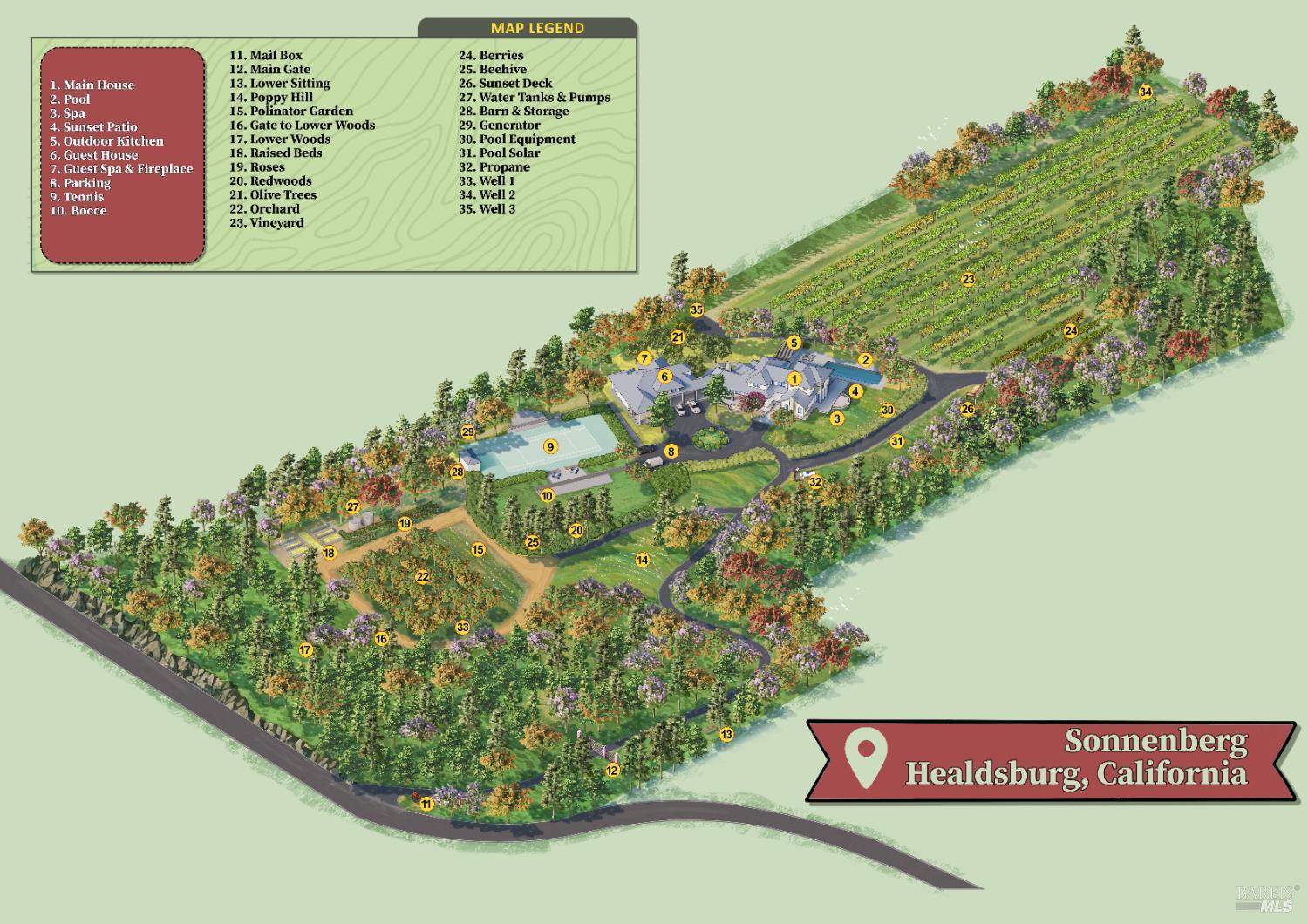 Welcome to 4395 Pine Flat Rd, an elegant Healdsburg estate offering some of the most breathtaking views in Sonoma County. Just minutes from downtown yet worlds away, this extraordinary property blends luxury, comfort, and resort-style amenities on 10+ mostly usable acres. The Main Residence consists of a four-bedroom, five-bathroom home is designed for both entertaining and everyday living. High ceilings, rich wood floors, and expansive windows frame vineyard and mountain vistas at every turn. Highlights include: Chef's kitchen with bar seating and seamless flow to the outdoor dining pavilion, formal dining room and multiple living spaces including a family room, library/office, gym, and wine cellar, main-level suite perfect for guests or multi-generational living, upstairs primary suite with private balcony, sitting area, and generous storage. A spacious detached studio offers flexible use for guests or extended family. Its outdoor entertainment area, complete with fireplace, is ideal for gatherings under the stars. This estate was made for relaxation and play, featuring a sparkling pool & hot tub, tennis court & bocce court, outdoor kitchen & vineyard-view dining, orchard, rose gardens, and raised garden beds, serene spots for birdwatching or simply doing nothing at all.Interested in this Listing?