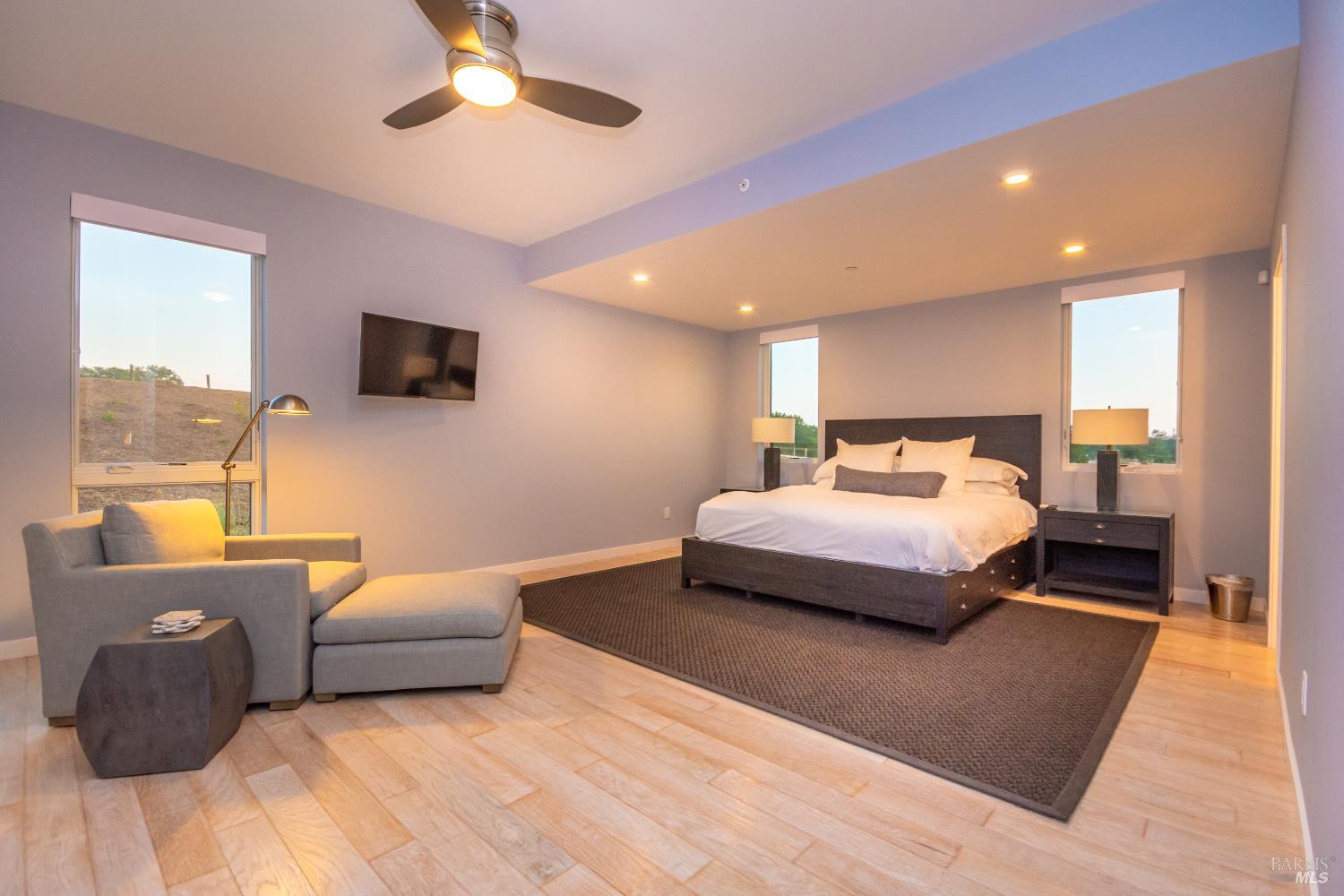 Tucked just minutes from the heart of downtown Healdsburg, this striking newer home offers a rare blend of modern design & privacy with a wine country lifestyle ease. Set amid meadow views, gardens, and forested hills, the property delivers true single-level living with seamless indoor-outdoor flow-perfect for everyday comfort and effortless entertaining. Glass-walled Nano doors open the expansive great room to the outdoors, creating a natural extension of the living space and framing serene natural surroundings. The chef's kitchen anchors the home with an oversized eat-in island along with a Wolf gas cooktop & vented hood in relationship with Sub-Zero refrigerator and separate wine refrigerator. The thoughtfully designed floor plan boasts high-end finishes with hardwood floors throughout inclusive of two private primary en-suite bedrooms plus two additional guest bedrooms that share a full bath, all on one level. A dedicated office and flexible additional room offers space for work, media, or recreation, complemented by high-speed Starlink internet. Outside, professionally landscaped grounds create a resort-like setting featuring a heated infinity-edge pool, separate spa and expansive deck with accent lighting along with both dining and lounging areas sprinkled amongst recreational amenities inclusive of bocce court, sand volleyball court and horseshoe pits. There is a private well with a complete Reverse Osmosis system installed for properly treated water to use everywhere around the home. The setting feels secluded yet is incredibly convenient - just five minutes to Healdsburg Plaza and moments from renowned wineries in Dry Creek, Alexander Valley, and the Russian River. Sustainably built with an owned 9.36kWh solar power system and eco-conscious design, this home balances luxury with efficiency and comfort. Whether used as a full-time residence or a refined Wine Country retreat, 519 Horse Barn Road offers an exceptional lifestyle in one of Sonoma County's most desirable locations.Interested in this Listing?