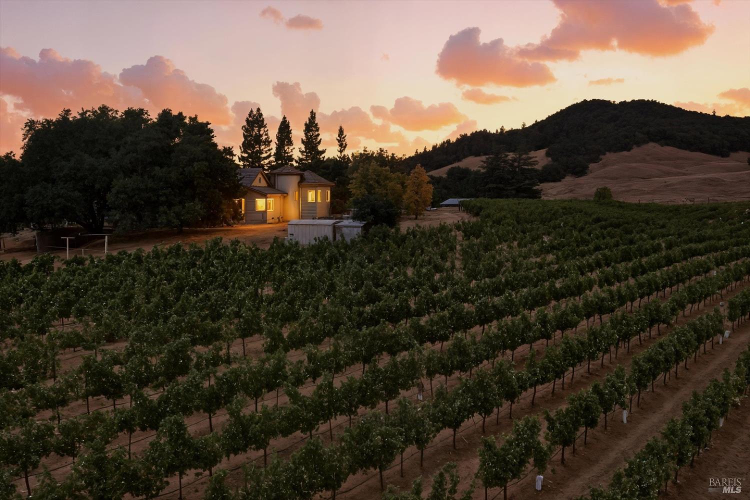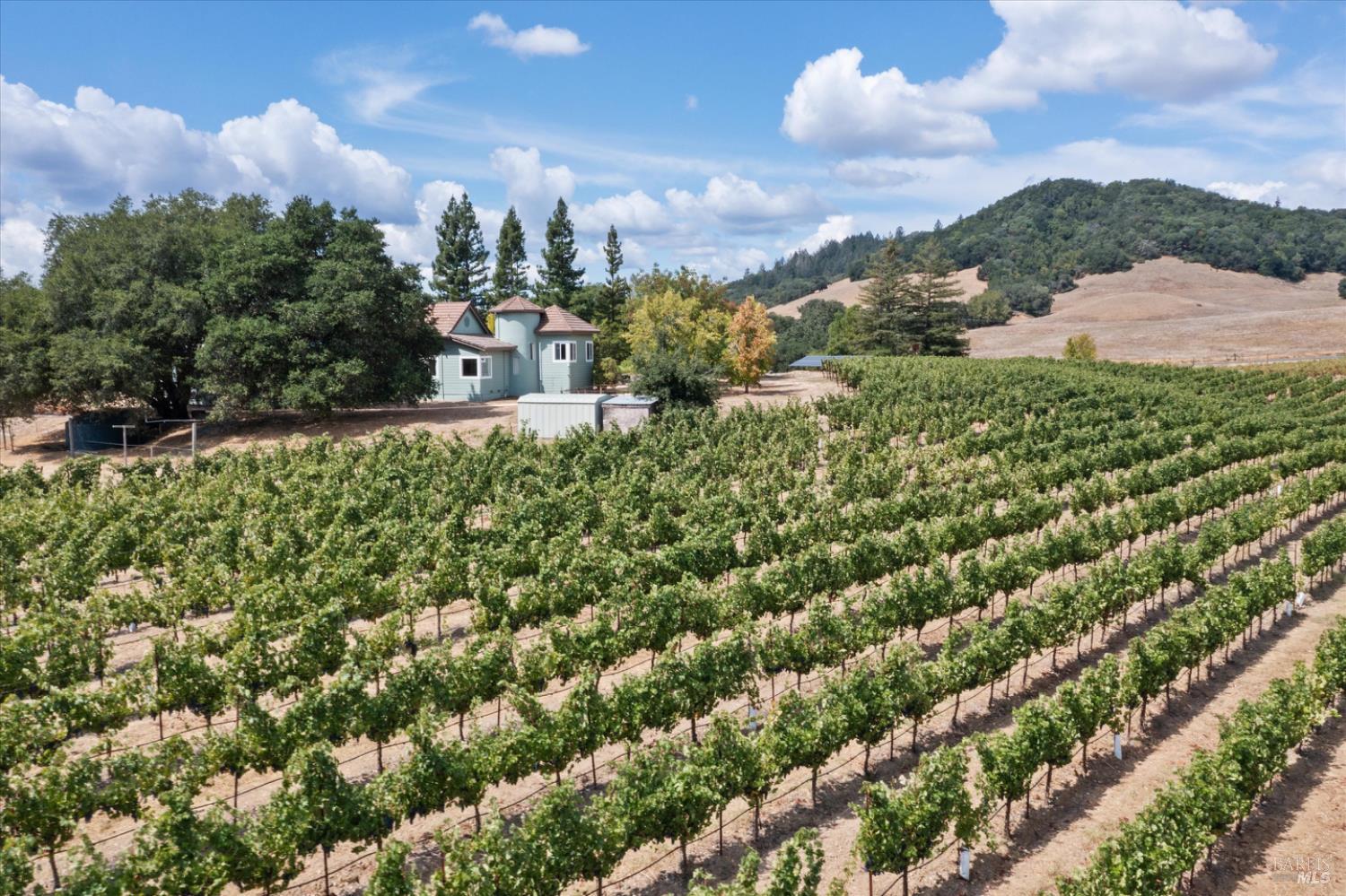 Lytton Manor Vineyard is a private 20.05-acre estate just 10 minutes from Healdsburg's renowned plaza. Set across two 10 acre parcels (910 Lytton Springs and 1730 Chiquita Road), it features a bespoke 2,637 sq. ft. ranch-style home perched on a hill, complete with 3 bedrooms, 2.5 baths, an attached garage, and a whimsical tower. The residence is embraced by 12.2 acres of premium Cabernet Sauvignon, planted in 2019. Panoramic vineyard views pour through sweeping bay windows in the living room, while the spacious dining room and large kitchen with generous storage invite effortless entertaining. The master suite flows into the tower, both overlooking the vines, and a cozy basement awaits conversion into a wine cellar. Beyond the home, two productive wells (one on each parcel), an acre-foot irrigation pond, a free-standing barn, and a custom-built diesel generator ensure self-sufficiency. The all-electric house is approached by a charming driveway winding past apple, fig, and olive trees, with a separate drive for vineyard access. Nestled in Sonoma County's famous Dry Creek Valley its oldest recognized wine-growing regionLytton Manor is uniquely framed by the legendary vineyards of Ridge Vineyards Lytton Springs.Interested in this Listing?