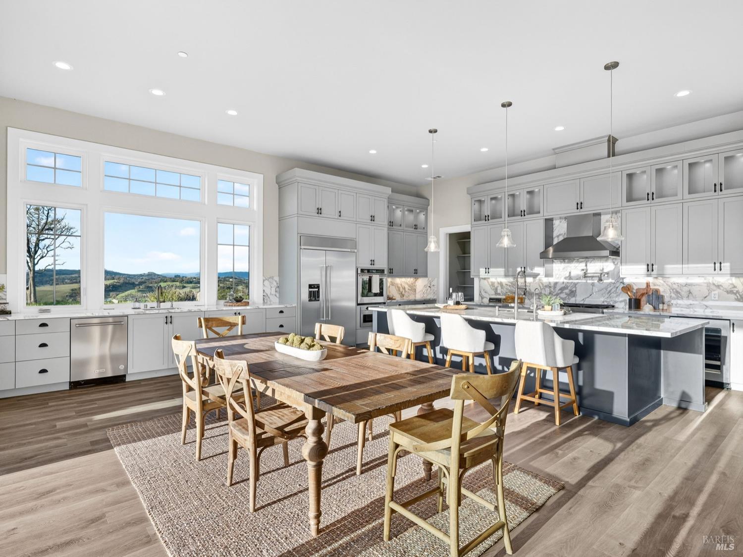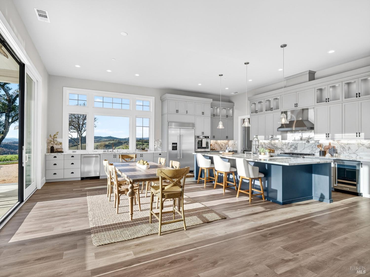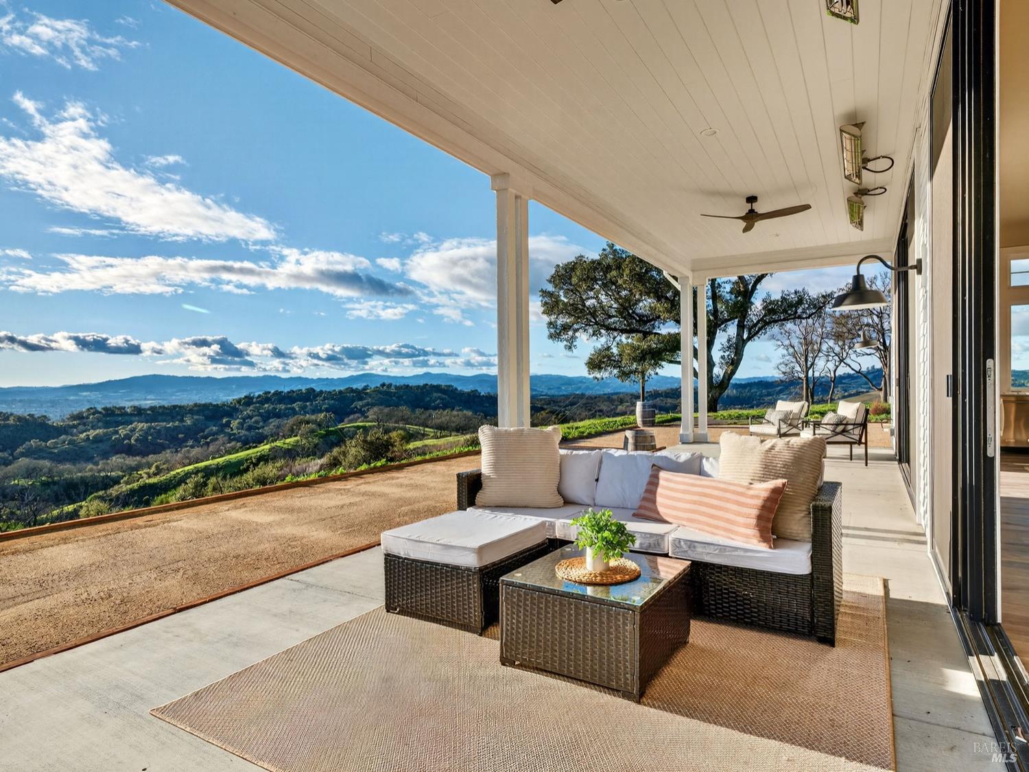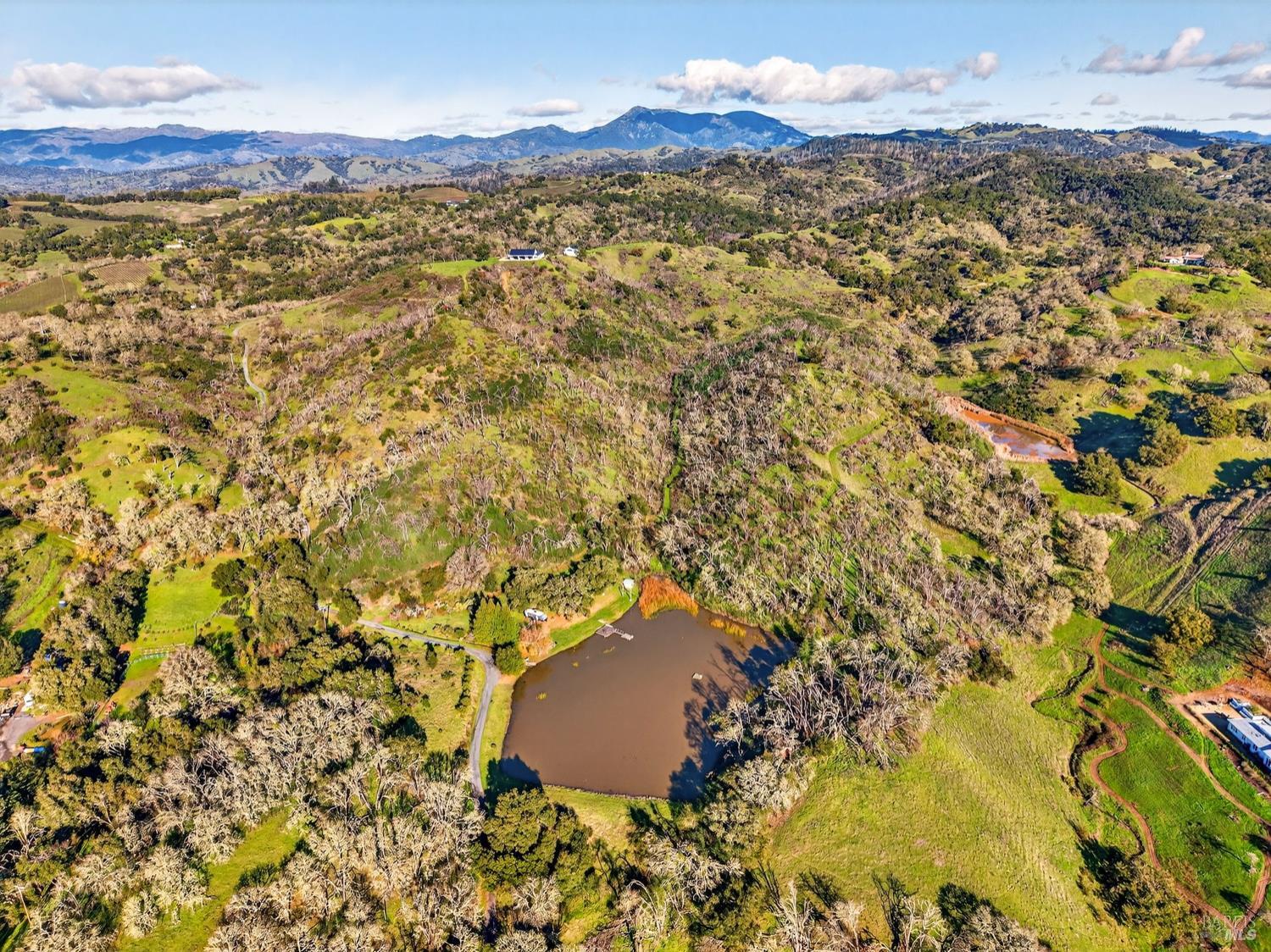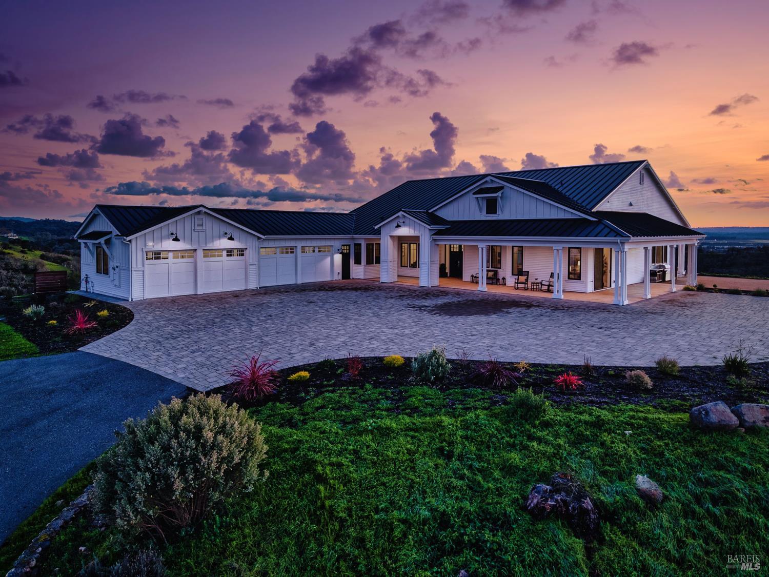 Don't miss this truly exceptional Healdsburg estate, offering gated, private living on one of the most coveted roads in the area. A private bridge crosses a seasonal rocky creek, leading you into a serene, park-like setting where an enchanted pond with swimming and boat docks is framed by mature trees and a fenced orchard garden. Nearby, a newer RV creates the perfect hub for weekend campouts, swimming, barbecues, volleyball, and lakeside relaxation. Continue up the drive to the recently built modern farmhouse, completed by local builders in 2023. Inside, soaring ceilings and expansive walls of glass capture breathtaking, uninterrupted panoramic views from every room stretching across the Mayacamas, Mt. St. Helena, and rolling vineyard-lined valleys. The main residence features four bedrooms and three-and-a-half baths, a stunning great room, expansive outdoor decks, and deep garages with a large motor court ideal for car enthusiasts and entertainers alike. An adjacent ADU offers two bedrooms and two baths, its own fireplace, and equally impressive views, positioned above an expansive six-car garage and workshop. Set on approximately 100 acres with thoughtful improvements throughout, this rare wine country offering combines privacy, recreation, and refined living. A truly special property awaiting its next discerning buyer!Interested in this Listing?