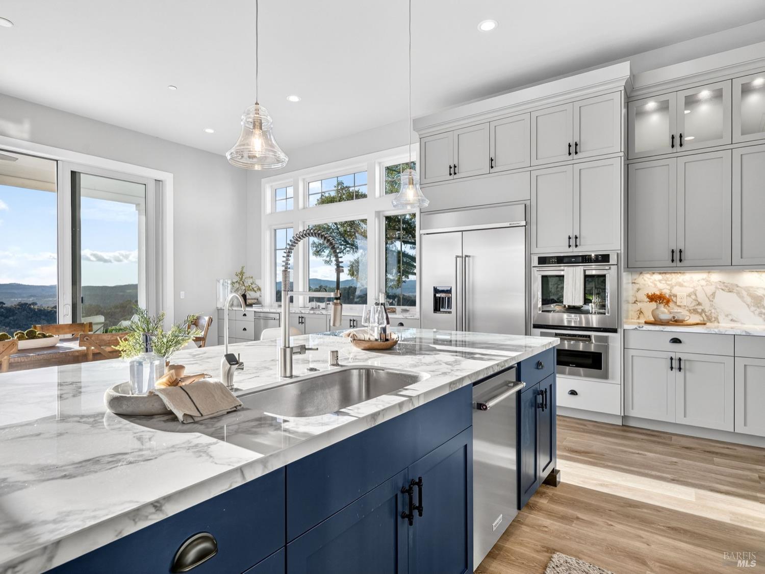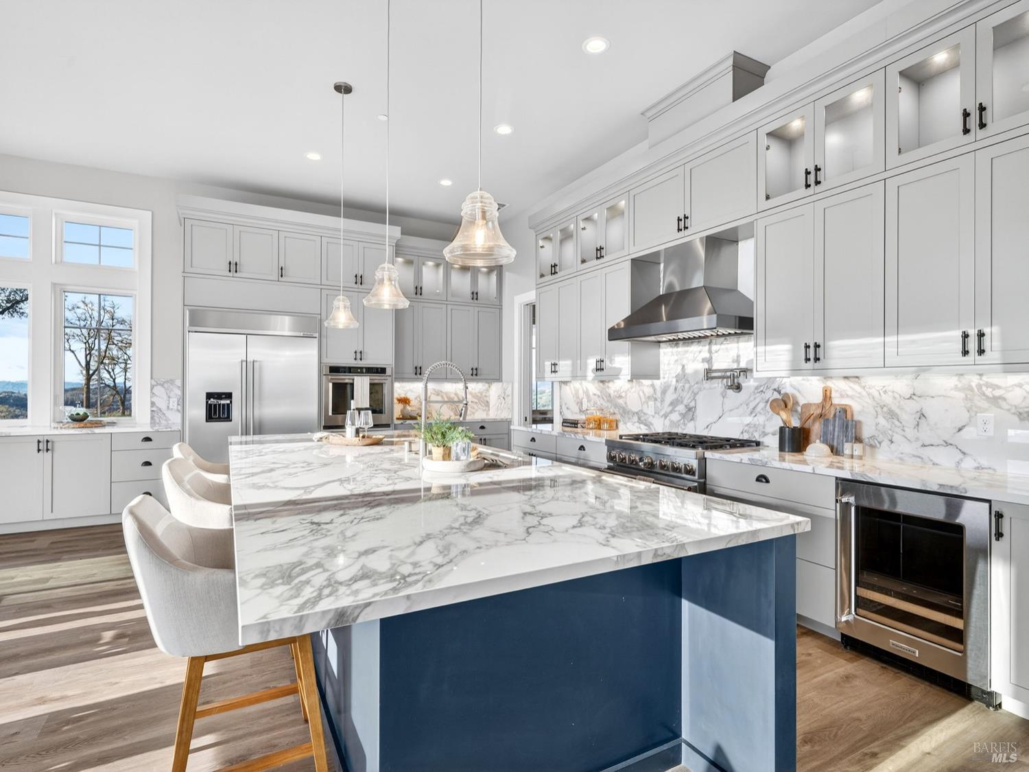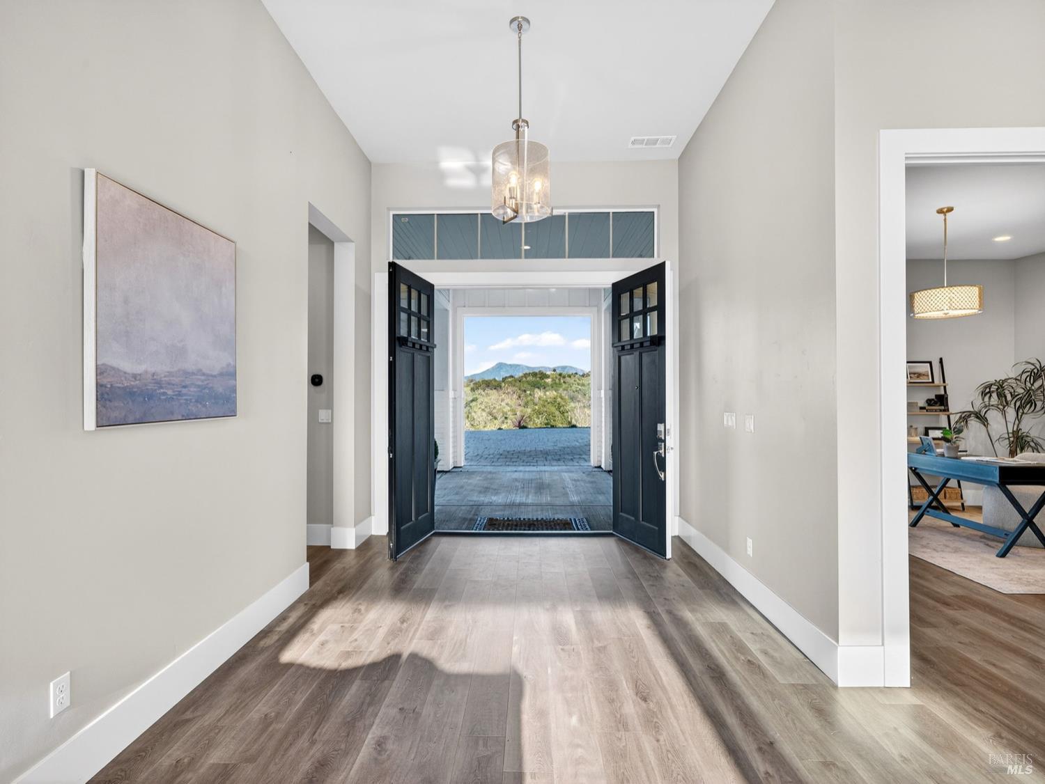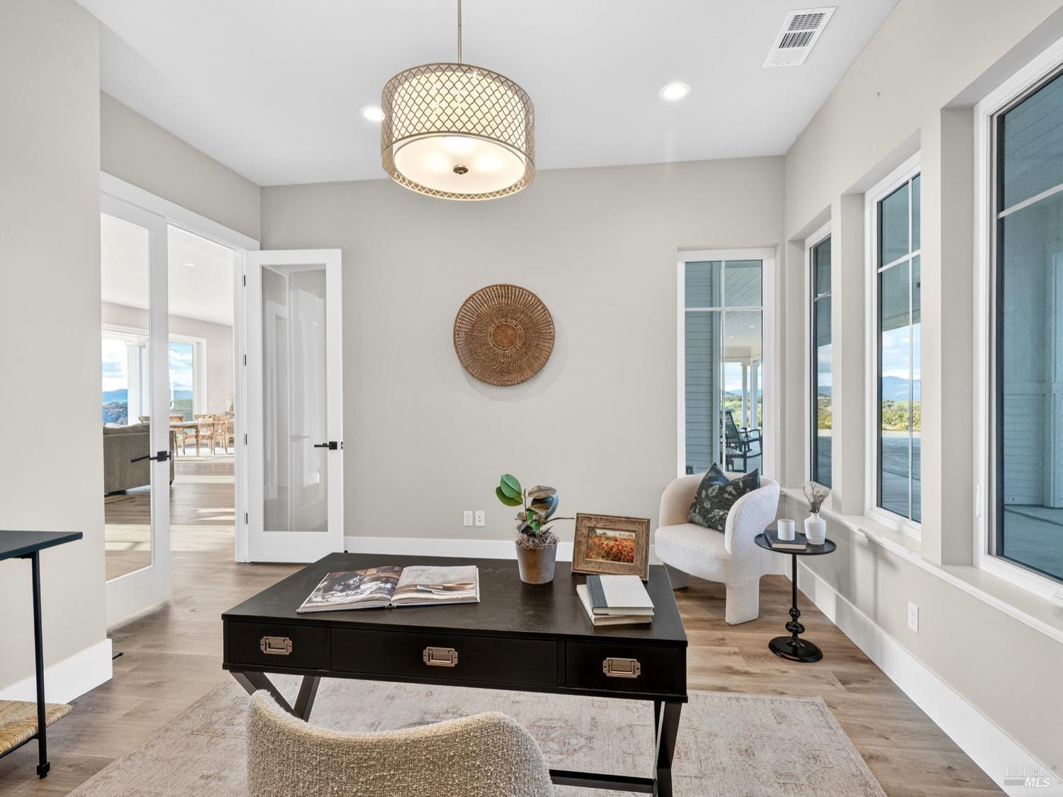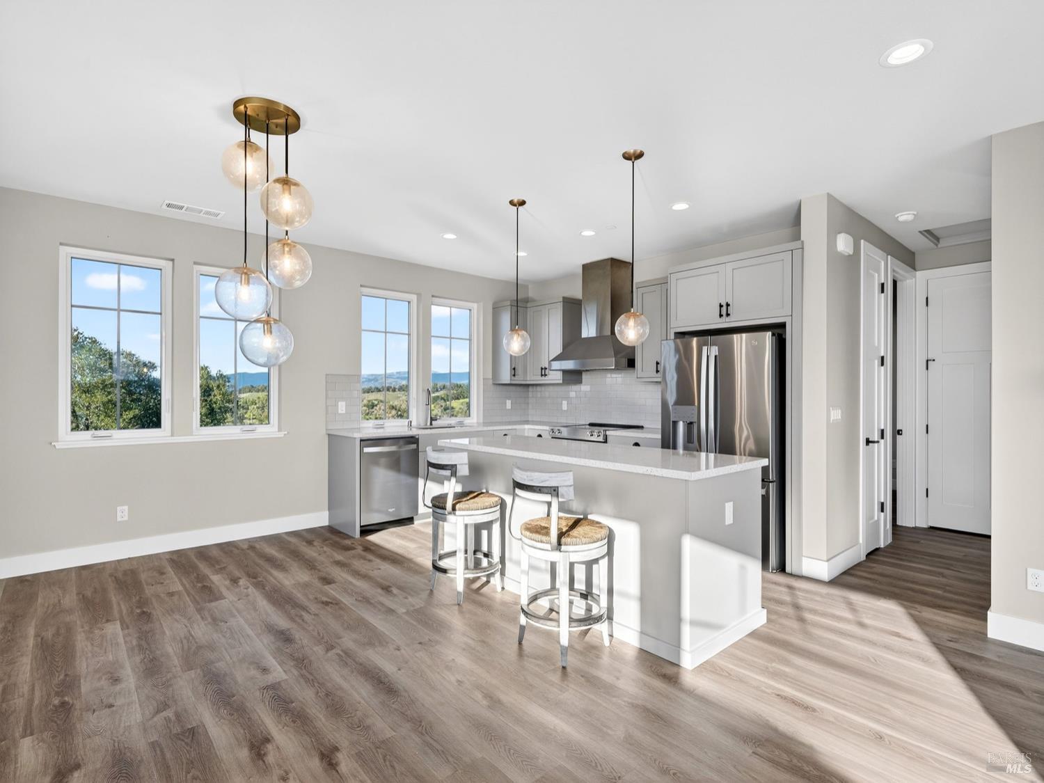 Don't miss this truly exceptional Healdsburg estate, offering gated, private living on one of the most coveted roads in the area. A private bridge crosses a seasonal rocky creek, leading you into a serene, park-like setting where an enchanted pond with swimming and boat docks is framed by mature trees and a fenced orchard garden. Nearby, a newer RV creates the perfect hub for weekend campouts, swimming, barbecues, volleyball, and lakeside relaxation. Continue up the drive to the recently built modern farmhouse, completed by local builders in 2023. Inside, soaring ceilings and expansive walls of glass capture breathtaking, uninterrupted panoramic views from every room stretching across the Mayacamas, Mt. St. Helena, and rolling vineyard-lined valleys. The main residence features four bedrooms and three-and-a-half baths, a stunning great room, expansive outdoor decks, and deep garages with a large motor court ideal for car enthusiasts and entertainers alike. An adjacent ADU offers two bedrooms and two baths, its own fireplace, and equally impressive views, positioned above an expansive six-car garage and workshop. Set on approximately 100 acres with thoughtful improvements throughout, this rare wine country offering combines privacy, recreation, and refined living. A truly special property awaiting its next discerning buyer!Interested in this Listing?