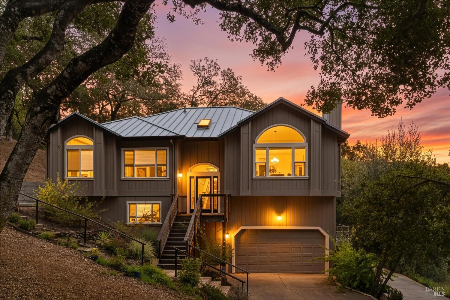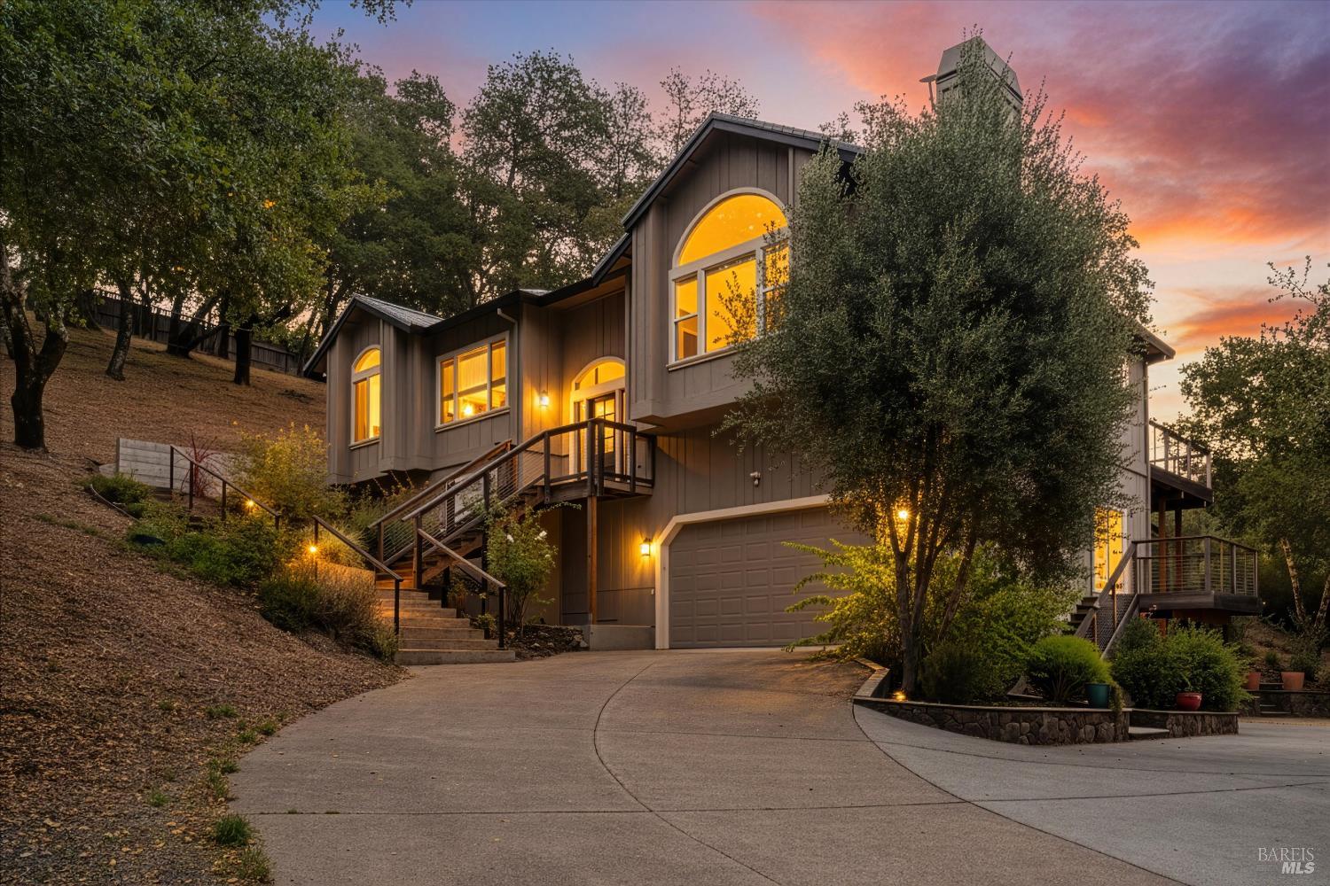 Perched on a peaceful hillside along Chalk Hill's coveted wine-country corridor, this stylishly updated 4-bedroom, 3-bath home captures panoramic mountain and woodland views through soaring window walls and vaulted ceilings. A thoughtfully refreshed interior features European white oak flooring, a remodeled chef's kitchen with granite counters and stainless appliances, new HVAC, and upgraded doors and hardware. Outside, expanded decking maximizes indoor-outdoor living. The main level includes a spacious primary suite and multiple entertaining spaces anchored by a dramatic stone fireplace. Outside, enjoy a tranquil setting with lush landscaping, patios, spa, and water feature, ideal for quiet relaxation or gatherings. A separate guest studio with private entry, kitchenette, and full bath offers excellent versatility for guests, home office, or additional living space. Located minutes from wineries and conveniences, this private Chalk Hill retreat blends comfort, style, and wine-country living at its best.Interested in this Listing?