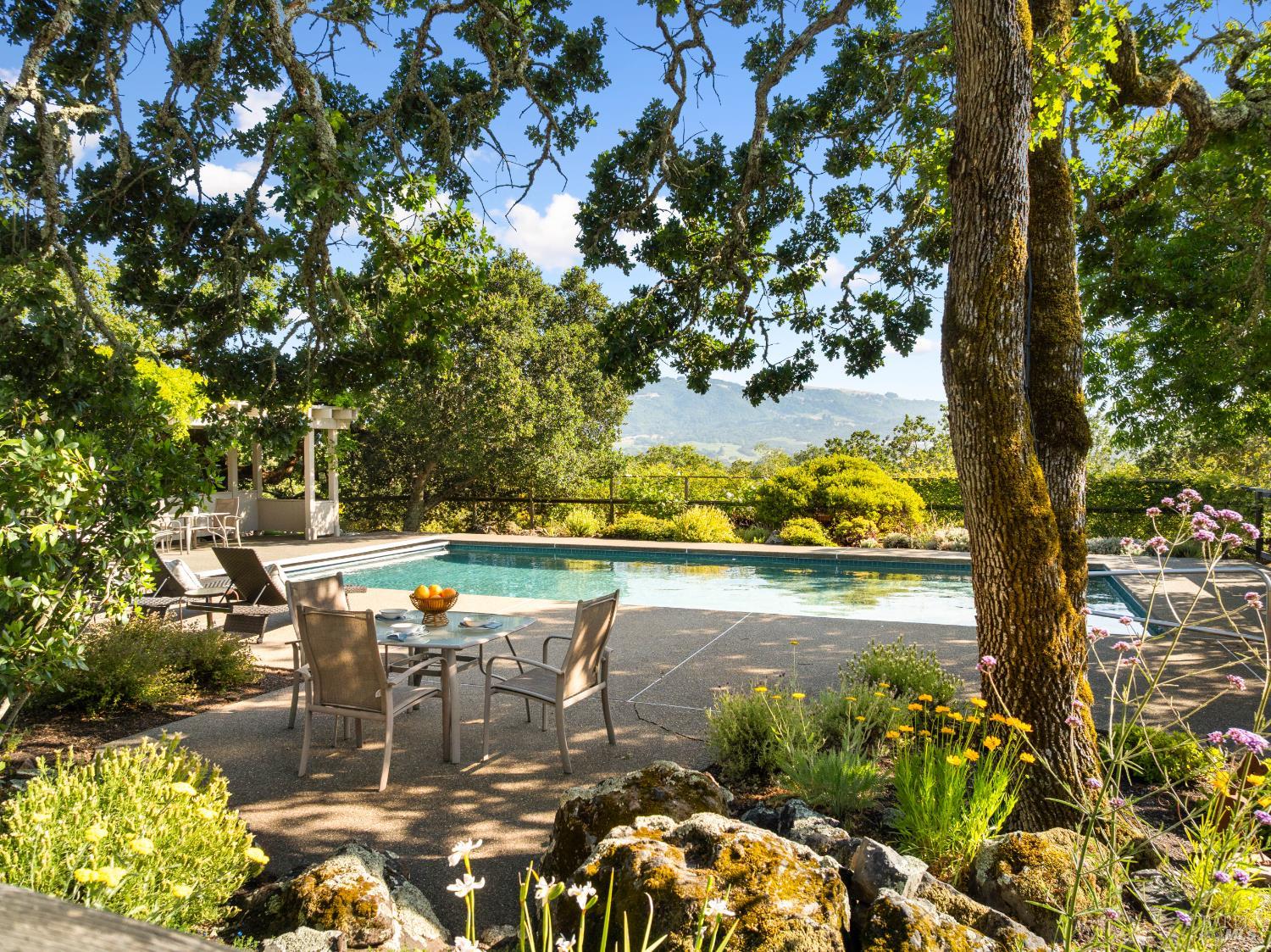Welcome to your dream retreat in the heart of Sonoma Valley. This impeccably designed 2-bedroom, 2.5-bathroom residence with 2 Bedroom / 2 bath guest house offers the quintessential wine country lifestyle. A grand entry with vaulted ceilings and large windows greets you as you enter the home. The living space unfolds with an airy open floor plan that effortlessly balances functionality and design. The thoughtful design continues in the kitchen where you will find custom cabinetry, granite countertops, and premium appliances. The primary suite is a private sanctuary with vaulted ceilings, abundant natural light and a spa-like bathroom. One of the standout features of this property is the detached cottage perfectly suited for guests or multigenerational living. This home invites you to experience true indoor-outdoor living, with spectacular entertaining areas, mature landscaping and an in-ground pool. Whether you're looking for a full-time residence, a weekend escape, or a property that offers privacy and flexibility for hosting, this home has it all.Interested in this Listing?