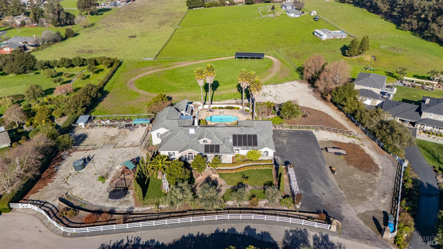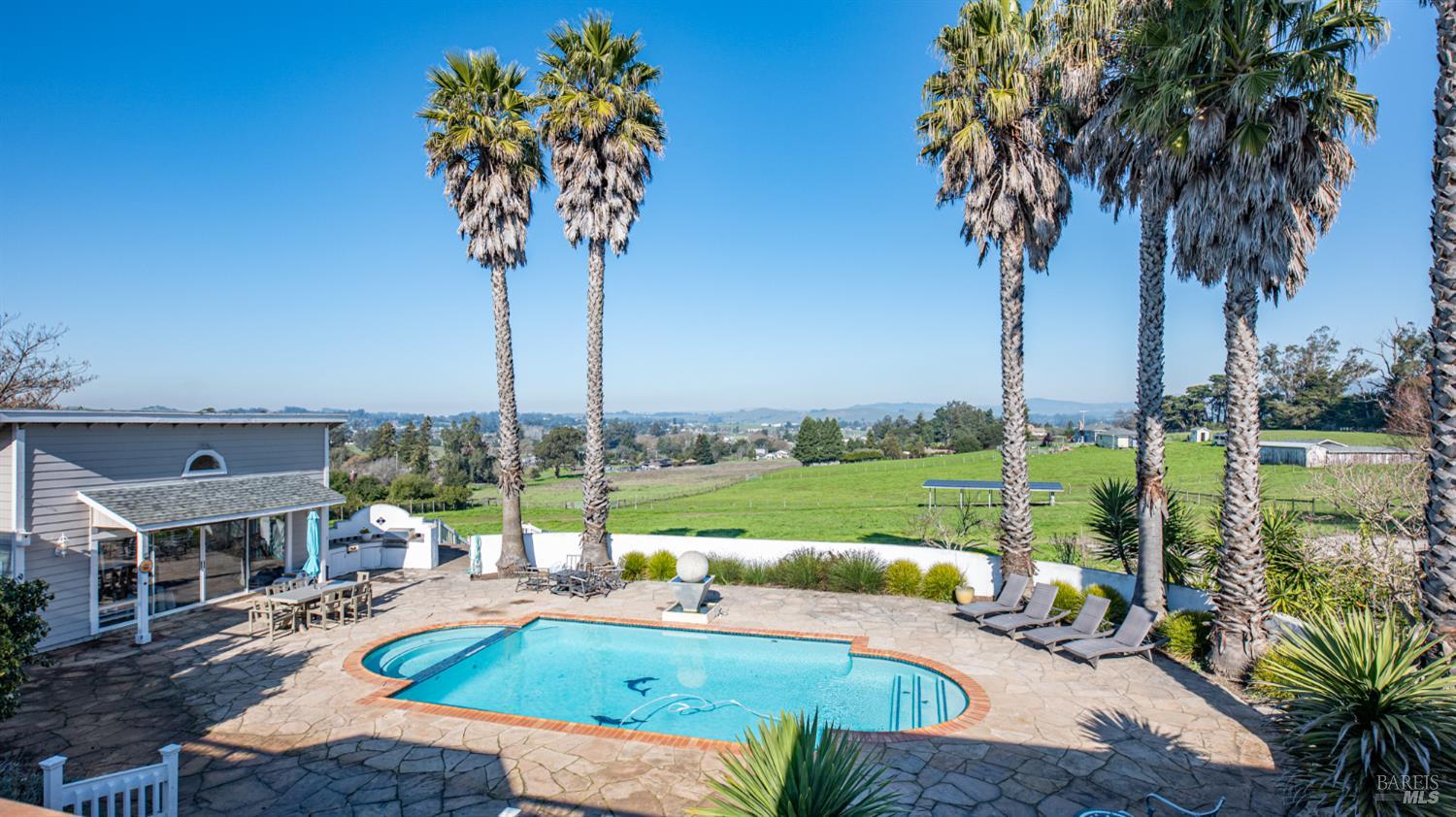 Wine Country Paradise just minutes from downtown Petaluma. This stunning single-level estate offers nearly three acres of serene country living with privacy and convenience. Built in 2000, the 3,606 sq ft home features 5 bedrooms and 3.5 bathrooms with soaring ceilings, hardwood floors, and a wall of windows that captures beautiful views and abundant natural light. The open-concept kitchen with a large center island flows seamlessly into the main living area and out to a spacious deckideal for entertaining or quiet mornings surrounded by nature. The versatile floor plan offers flexibility for guests, home offices, or multi-generational living. The outdoor setting is a true retreat with a sparkling pool, pool house, gazebo, and expansive open pasture perfect for gardening, animals, or recreation. A 4+ car garage provides ample storage and space for hobbies. Owned solar and a whole-house generator offer efficiency and peace of mind. A rare opportunity to enjoy relaxed Wine Country living just minutes from downtown Petaluma, dining, shopping, and Sonoma County wineries.Interested in this Listing?
