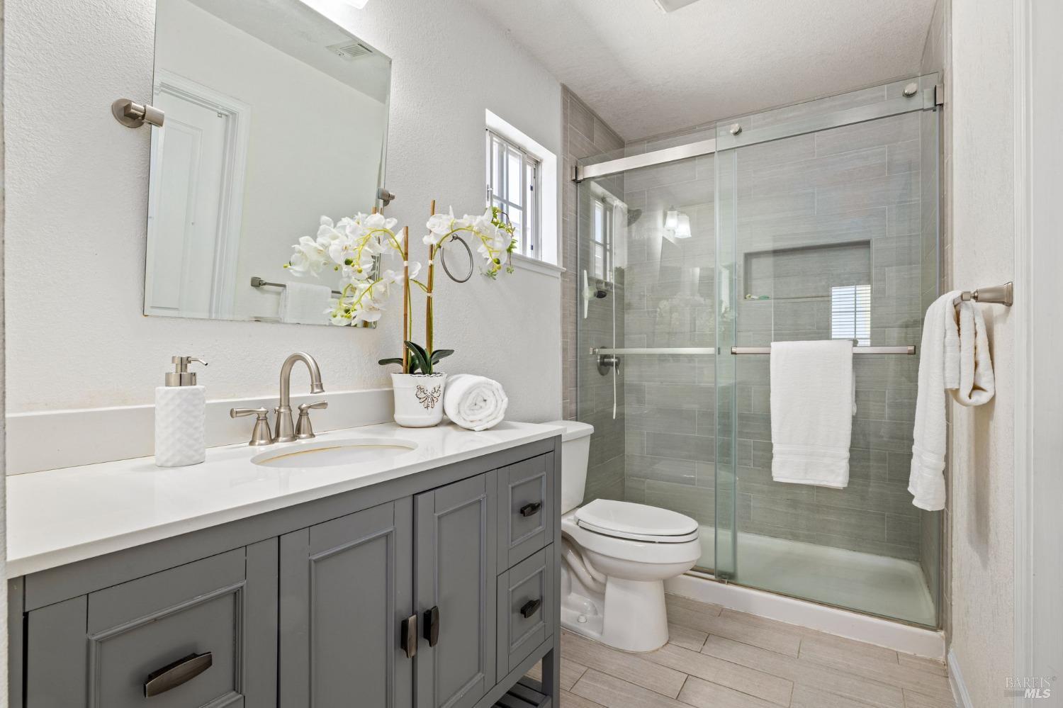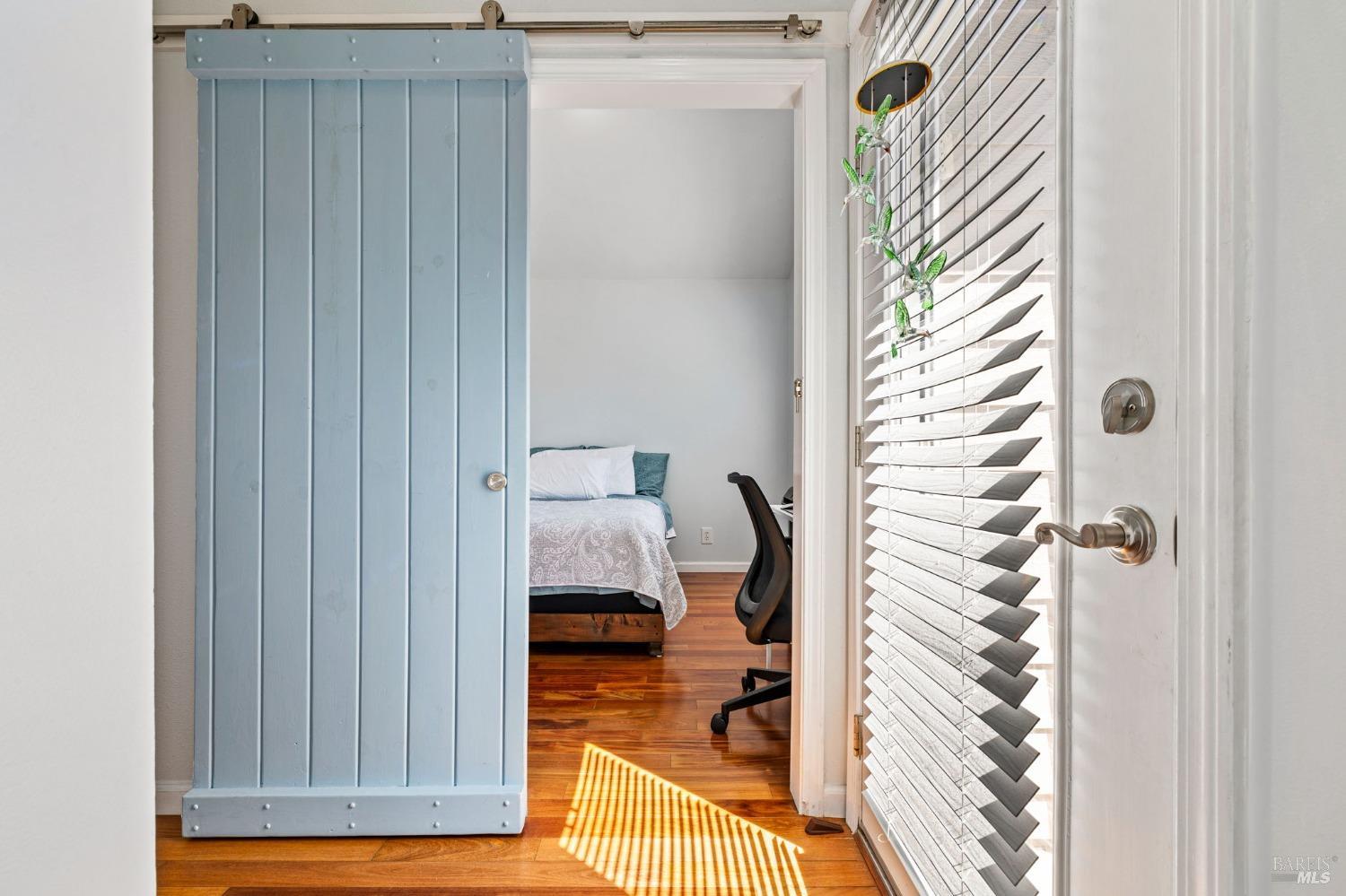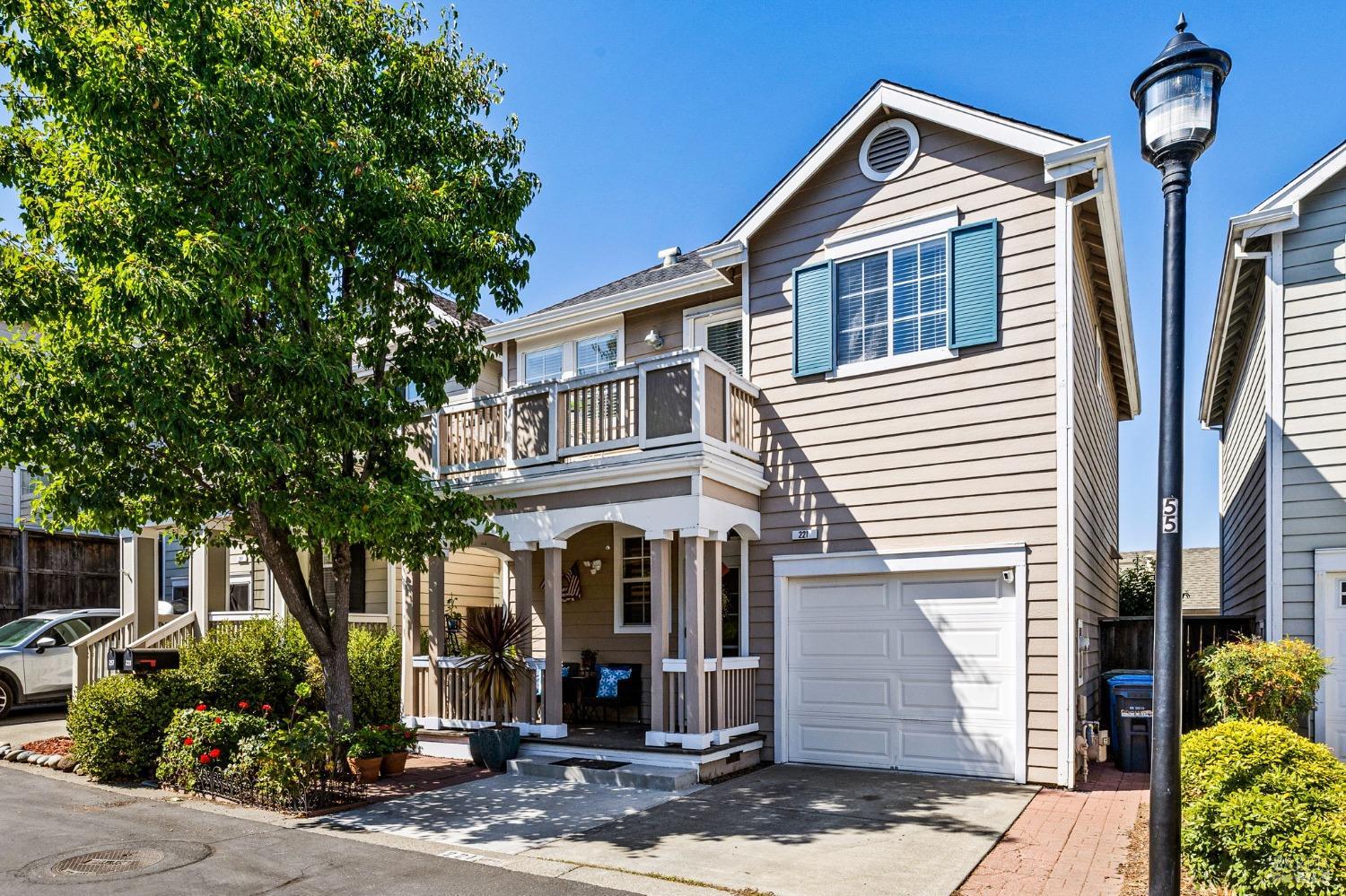 Welcome to 221 Preston Ct in the coveted McNear Landing community. West Petaluma is highly desirable for its rich history, charming downtown, and walkability. This enclave offers access to the West Petaluma lifestyle at a fraction of the cost. This home features hardwood floors on both levels, a newly carpeted stairway, and a modern kitchen featuring quartz countertops and stainless steel appliances. Start your mornings with a coffee and the news from the deep island bar top area. The downstairs half bath has been tastefully updated with modern tile floors and quartz top vanity. Enjoy the open courtyard and clear skies from your upper-level front-facing balcony, or relax in the privacy of your all-weather deck accessible from the rear sliders. The covered rear deck ensures year-round enjoyment, protected from the elements. Equipped with central heat and AC for your comfort. Upstairs, you'll find a perfect guest bedroom or home office, enhanced with a modern farmhouse-style barn door slider. Down the hall, you'll discover bedroom #2 and the light-filled primary suite with modern farmhouse barn door, updated quartz counter Vanity and remodeled tiled shower with frameless sleek glass doors. Only 1 mile to West Petalumas Vibrant lifestyle, explore on foot!Interested in this Listing?