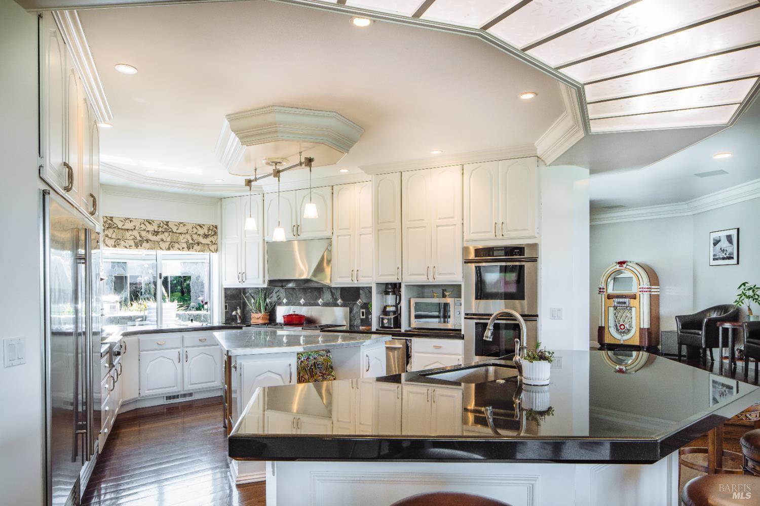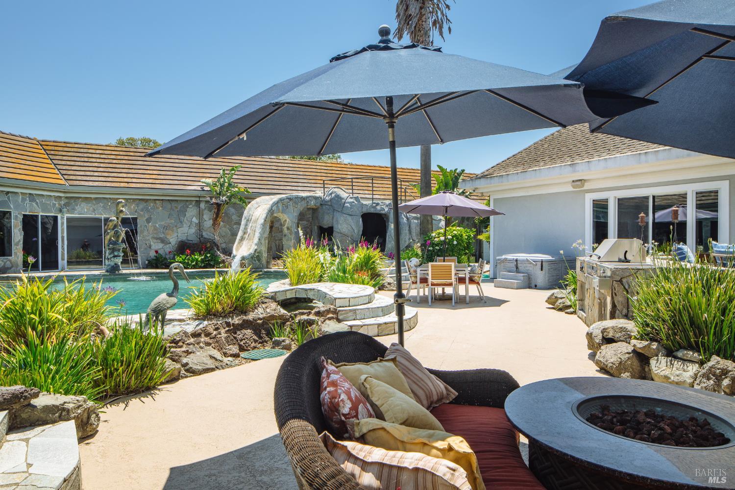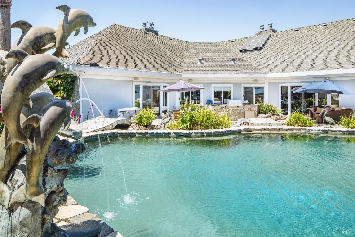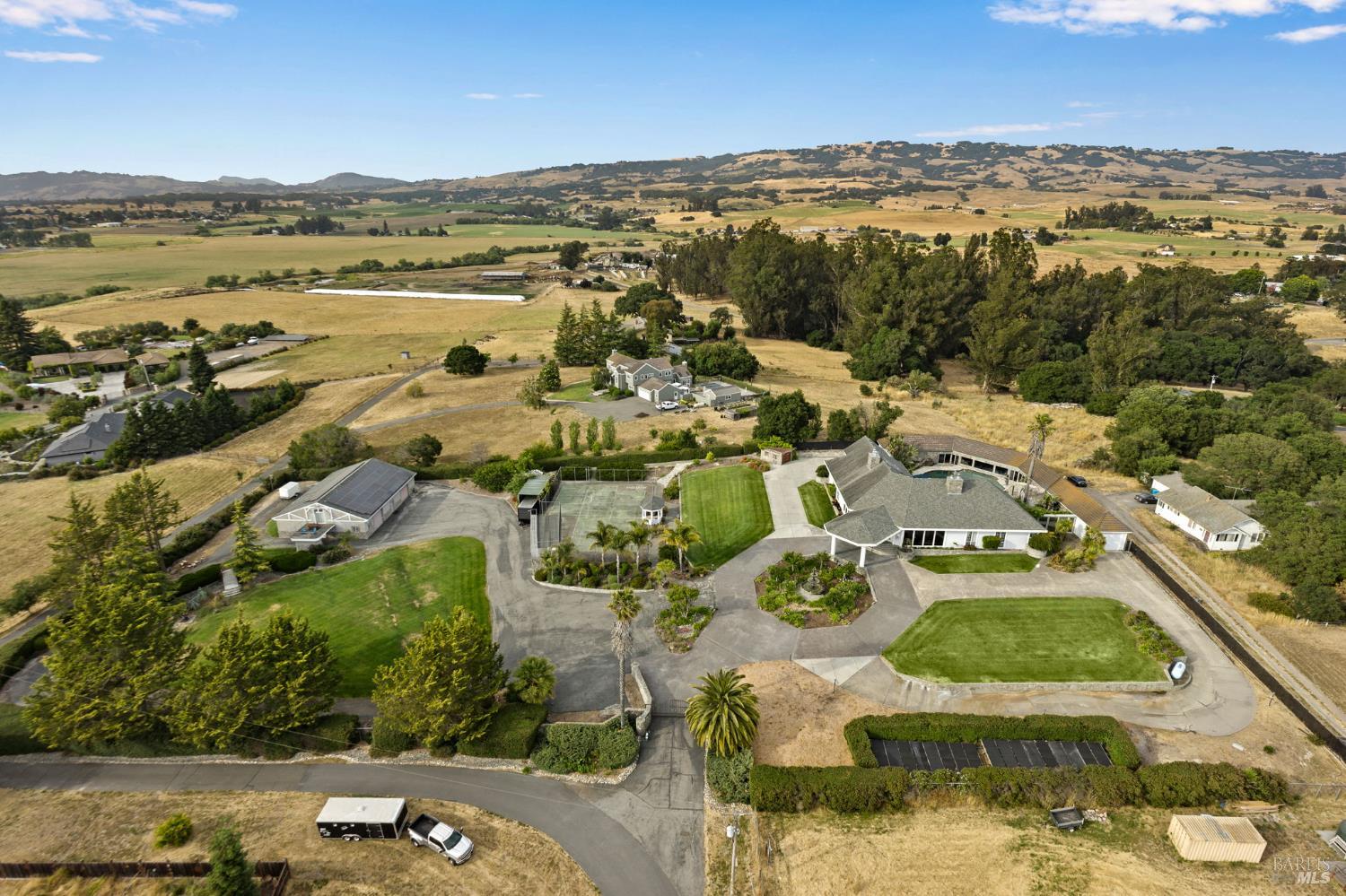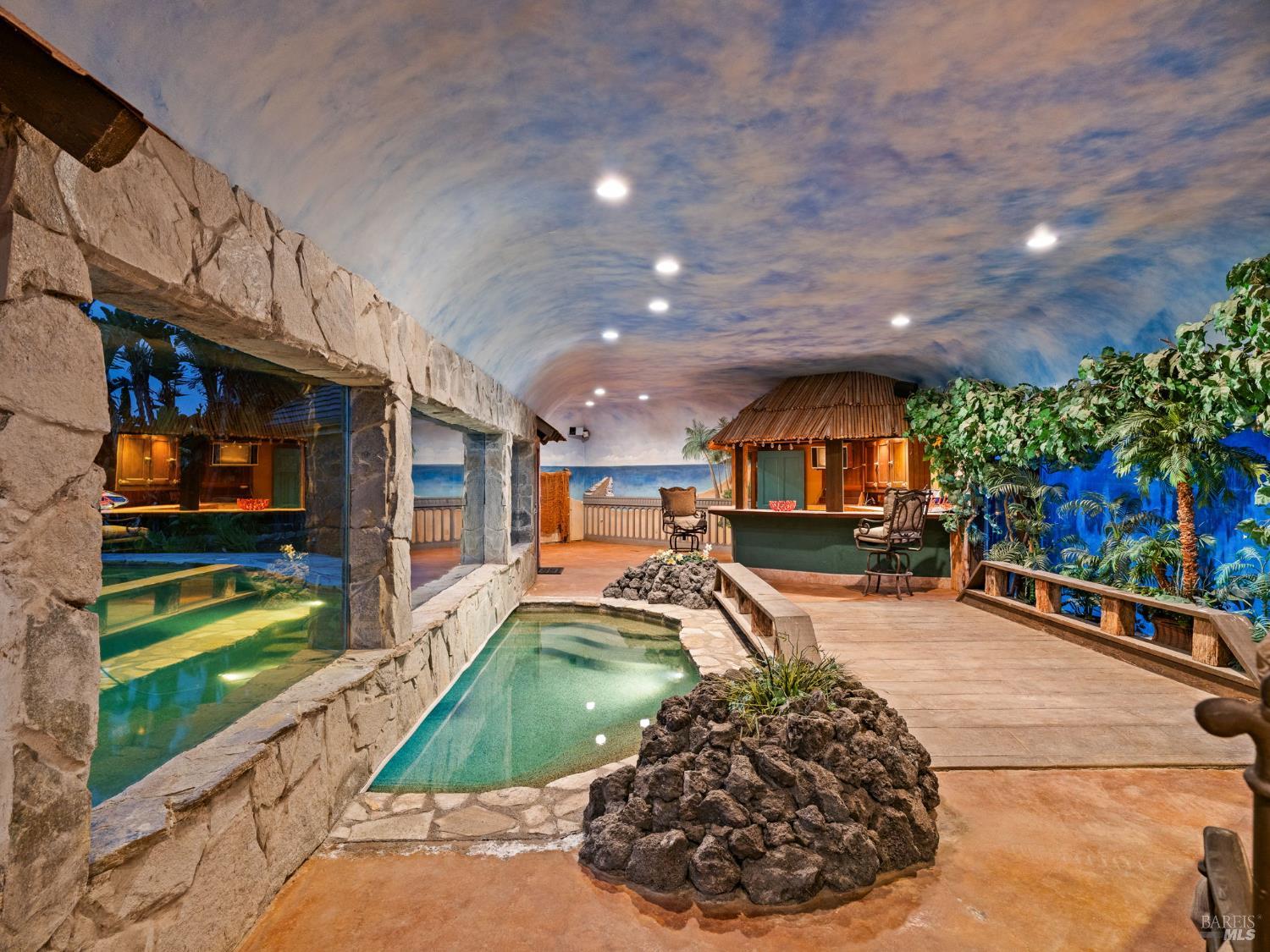 Set in the rolling hills of North Petaluma, this gated estate is a country playground designed for car lovers and entertainers alike. At its heart is an approx. 4,000 sqft showroom-style shop with car lift, 200-amp service, and 9 total garagespaired with a private go-kart track for endless fun. The approx. 4,289 sqft home opens to a grand entryway and an impressive vaulted great room with panoramic valley views, surround sound, and formal dining. A refined kitchen with high-end appliances flows to the breakfast nook and wet bar, both opening to the backyard. Upstairs, the primary suite offers a spa-inspired bath, wet room with tub, and custom walk-in closet. Guest spaces include 2 bedrooms with a marble-clad bath and jacuzzi tub, plus an additional suite with private garage access. A flex room with Murphy bed doubles as a gym or guest space, complete with steam shower and sauna. Outdoors, the property transforms into a private resort: heated pool, dual hot tubs in a grotto, water slide, and fully outfitted pool house with tiki bars, full bath, and office. Solar (10-year prepaid), HD security, R-tech wifi, sport court with gazebo, pond, and fruit trees complete the lifestylemaking this an unmatched retreat for those who love cars, country living, and play.Interested in this Listing?