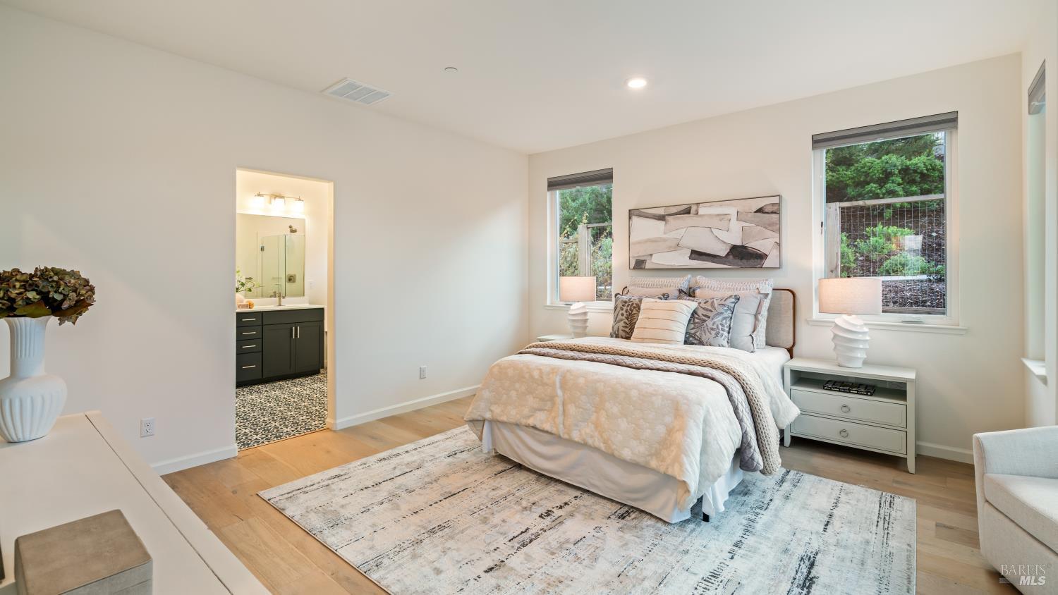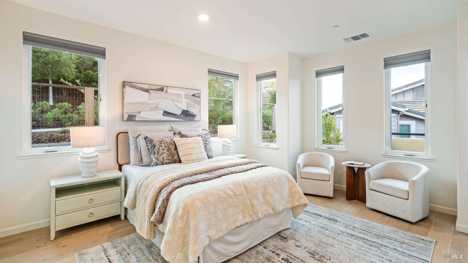 This spacious 5 bed, 3 bath 3,302+/- SqFt Sterling Hills home provides modern comforts and stunning features that complement its hilltop location. You'll instantly love the tiered community walking paths and parks with wonderful views. Just inside the main level is a bright living room with remote shades on light-filled windows. Gorgeous white oak engineered flooring runs into the open-concept kitchen with incredible island, stainless appliances with wall oven, pantry, and country sink. Entertaining is easy in the family room with gas fireplace and balcony views. The primary suite enjoys cultured marble flooring, soaking tub, double-faucet vanity, and custom walk-in closet. The rest of the level includes a guest bedroom, full bath, and French-door den perfect as a bedroom. Stairs down lead to a wonderful bonus/game room featuring a kitchenette with wine fridge, dishwasher, and soft-close cabinetry. The 4th and 5th bedroom, a full bath, laundry room with sink, and 3-car garage with room for a home gym complete the lower level. The backyard space defines tranquility with bark landscaping and flagstone path. Even more are the finer details such as the A/C, tankless water heater, solar power with Tesla Power Wall, and smart thermostats that truly make this home feel luxurious.Interested in this Listing?