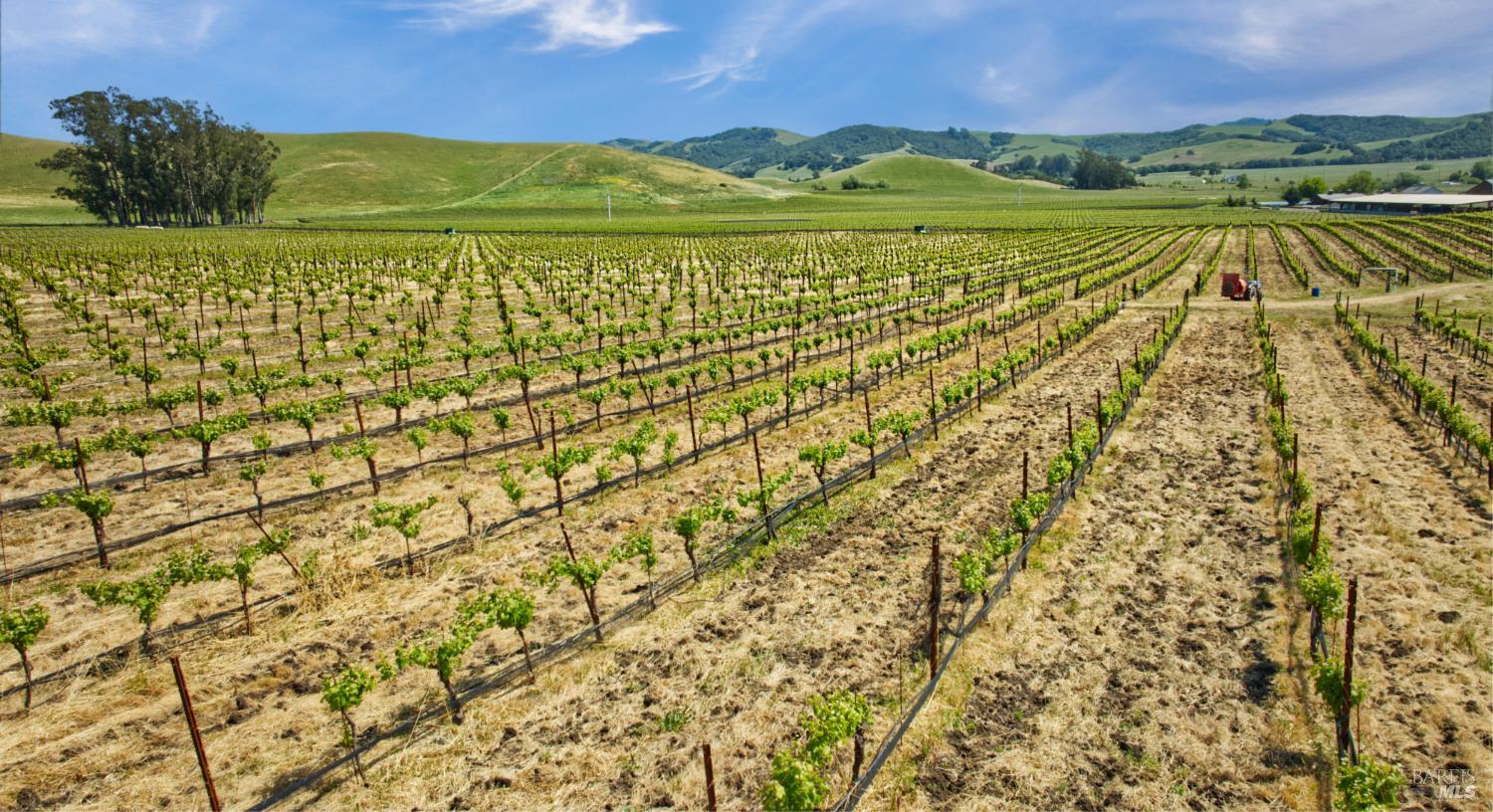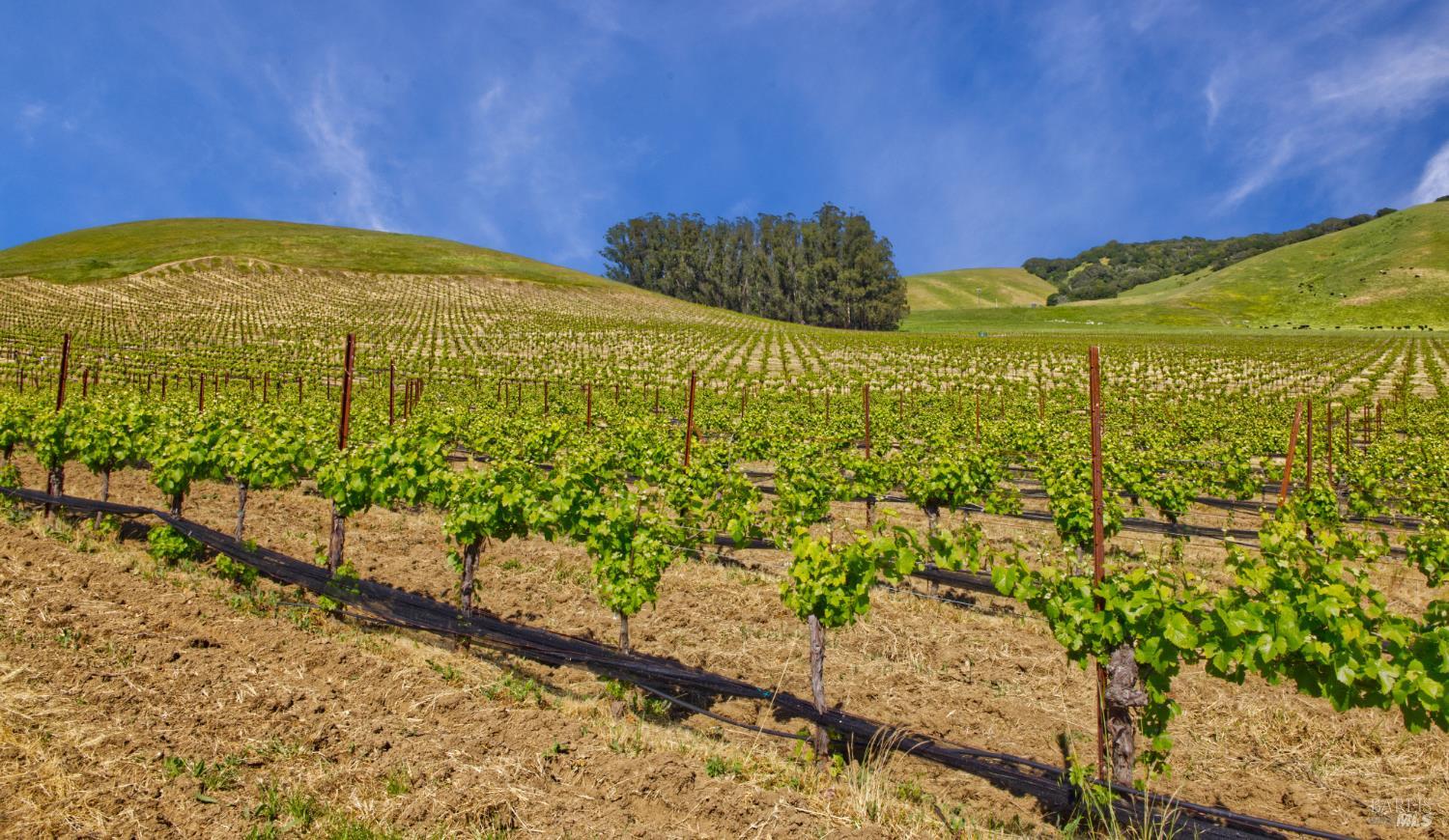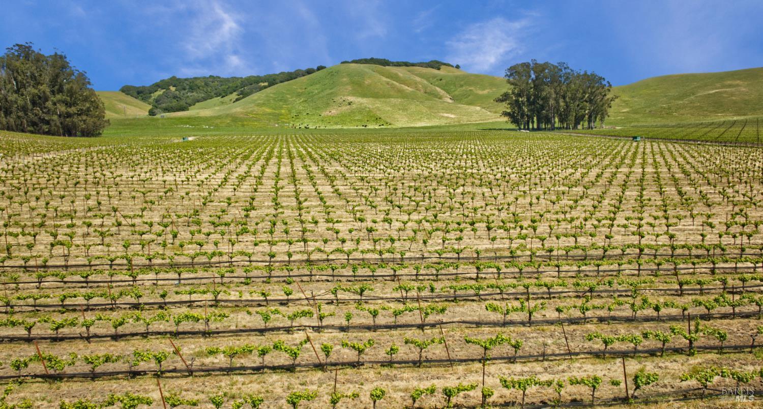 Tucked into the undulating hills of the western Petaluma Gap AVA, Antonio Mountain Vineyard spans approximately 49.35 acres of refined rural beauty and proven agricultural excellence. With 30 acres of established Chardonnay and Pinot Noir vines, this site has built a reputation for producing quality fruit that echo the cool-climate distinction this region is known for. The property has multiple elevated vantage points that offer panoramic vistas of bucolic countryside, neighboring vineyards, olive orchards, open plain, and the kind of rolling terrain that causes one to take pause and appreciate the natural splendor. Estate Building site potential. The property is in the Williamson Act.
