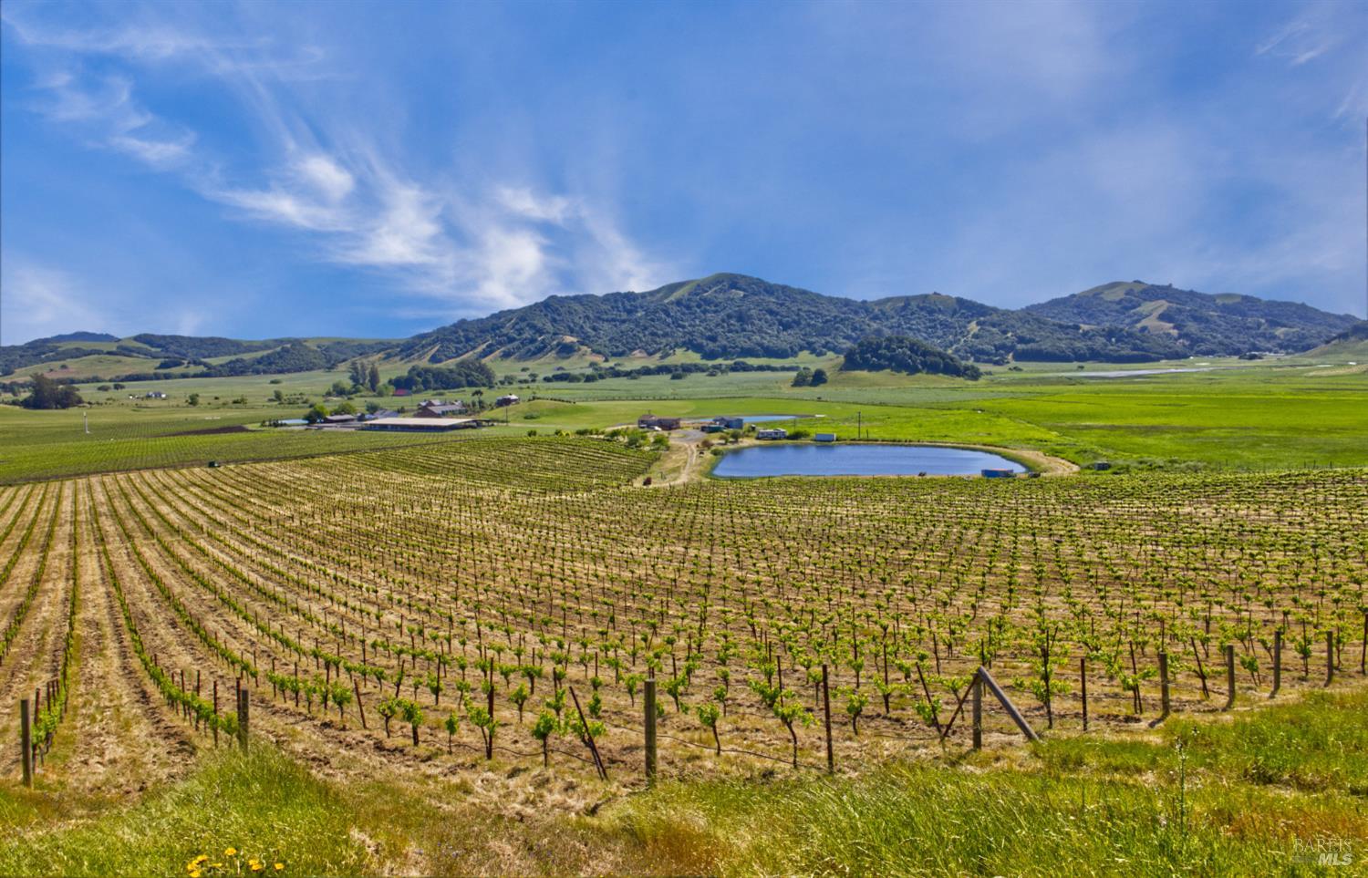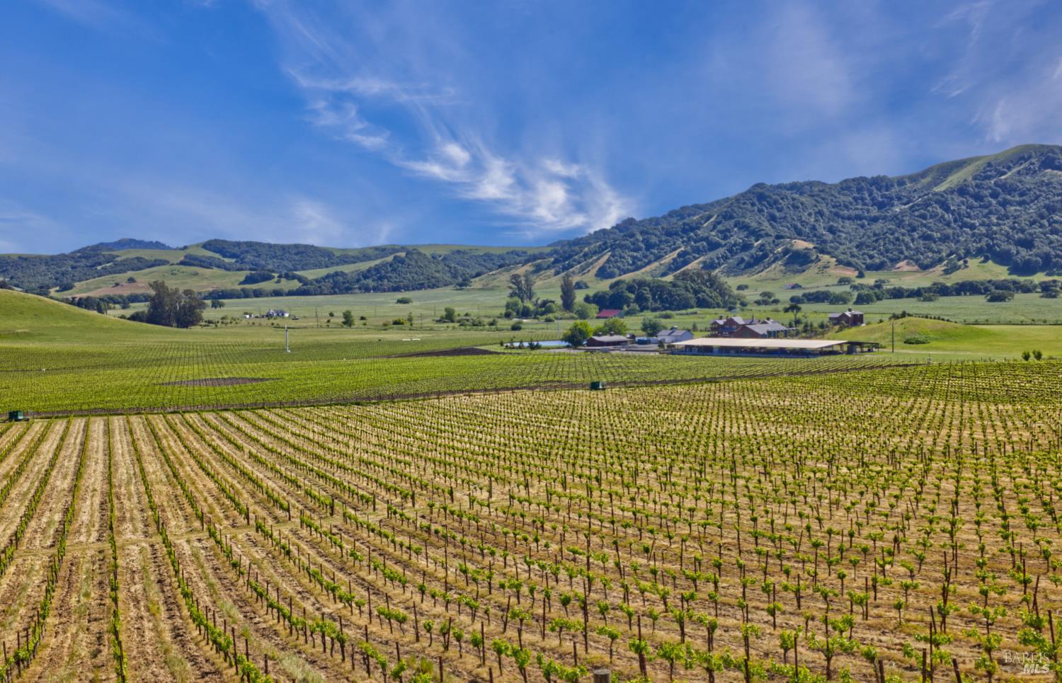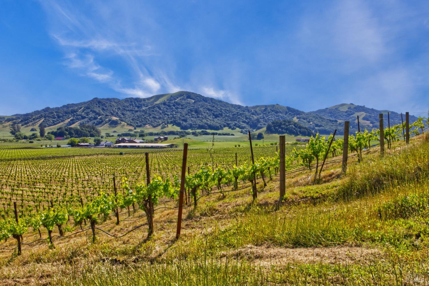 Tucked into the undulating hills of the western Petaluma Gap AVA, Antonio Mountain Vineyard spans approximately 49.35 acres of refined rural beauty and proven agricultural excellence. With 30 acres of established Chardonnay and Pinot Noir vines, this site has built a reputation for producing quality fruit that echo the cool-climate distinction this region is known for. The property has multiple elevated vantage points that offer panoramic vistas of bucolic countryside, neighboring vineyards, olive orchards, open plain, and the kind of rolling terrain that causes one to take pause and appreciate the natural splendor. Estate Building site potential. The property is in the Williamson Act.