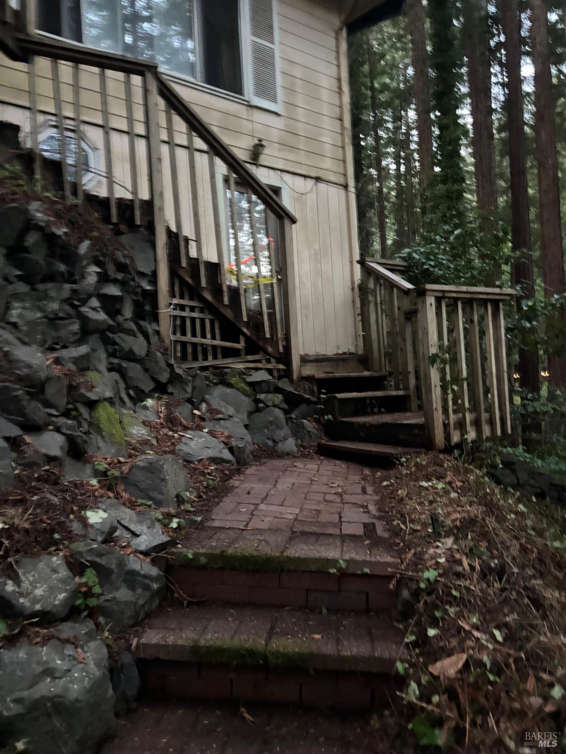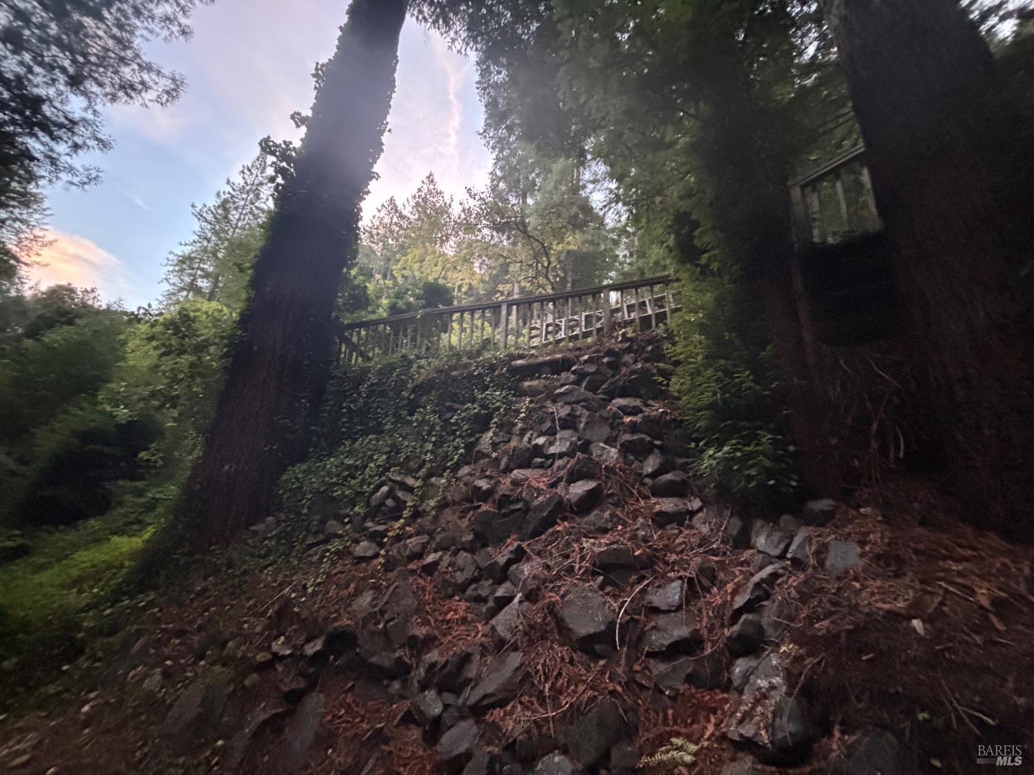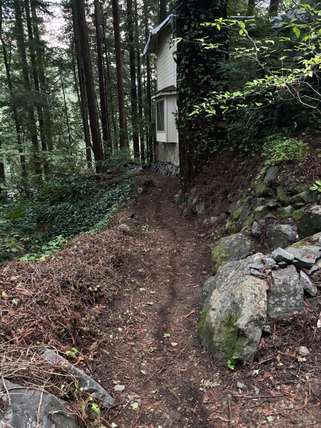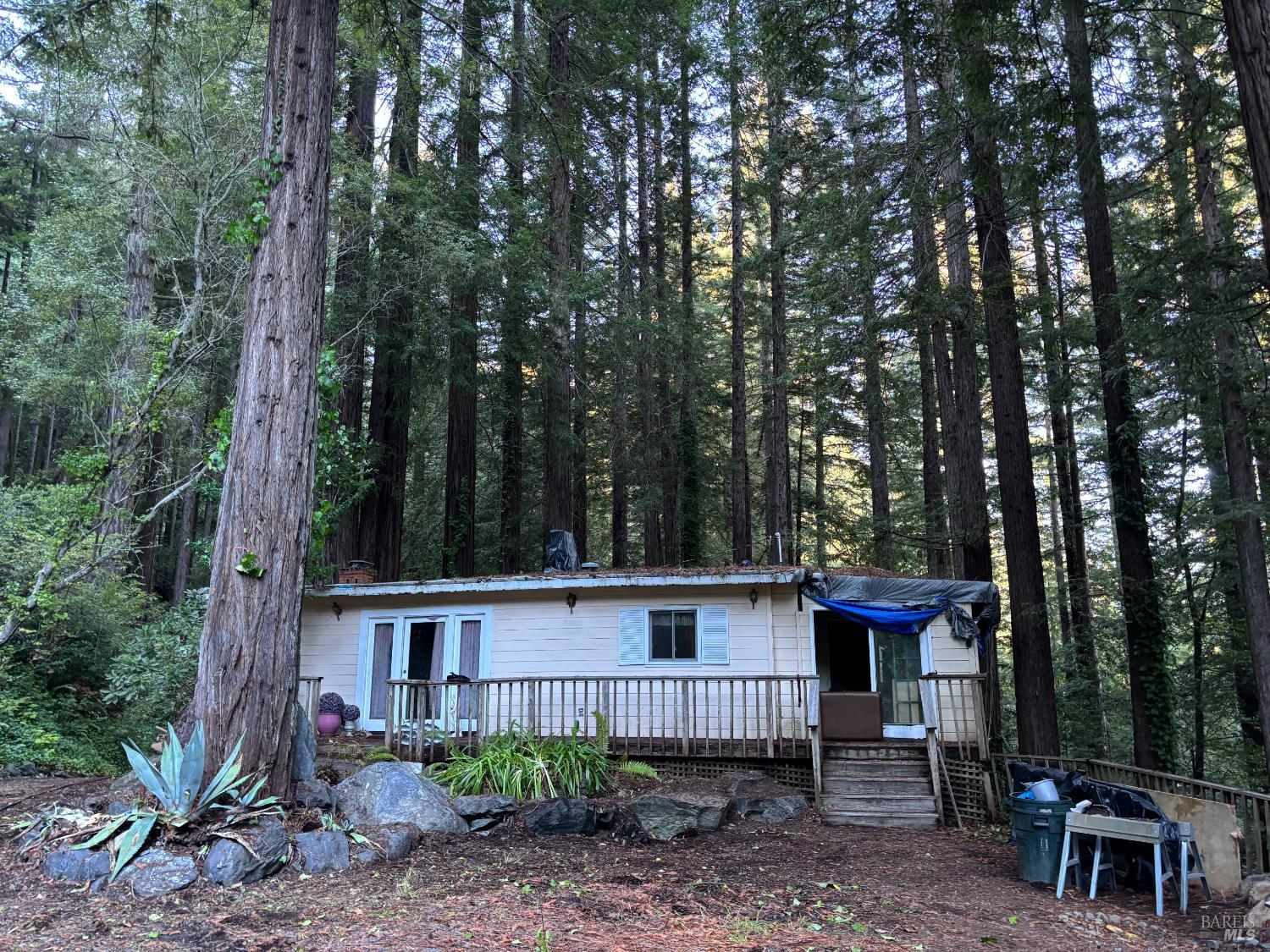 Oasis in the Redwoods! Main level has two bedrooms, 2 full bathrooms, fireplace, indoor utility room. Downstairs has separate entrance and a full bathroom-could be a separate studio/ADU. Privacy galore, once you get through your gates with 4.32 acres of Redwood Trees. Walk up the mountainside, there are trails throughout-they go way up the mountain, count hundreds of Redwood Trees. This home has several flat, useable, terraced entertaining areas, lined with innate rock walls. Enjoy the quiet, peace and tranquility, just above some of your neighbors, but with no one above you. Ferns galore, towering Redwoods, there is a six foot deep rocked pond in front of the house. Waterfall and Koi pond in front yard, by driveway. Needs a lot of work, heavy fixer, needs a new roof and outside stairs, PLUS the kitchen and all three bathrooms need remodeling, it needs new floor coverings and there is quite a bit of dry rot near windows and doors. Deck and railings also need repair. Then, however, you will have a great retreat/home that you can treasure for years to come. The front yard is not on a hill. It's flat to the front door. Remarkable rock work throughout. Upside is a beautiful SFD, duplex or retreat, comps are in the $700k's.Interested in this Listing?