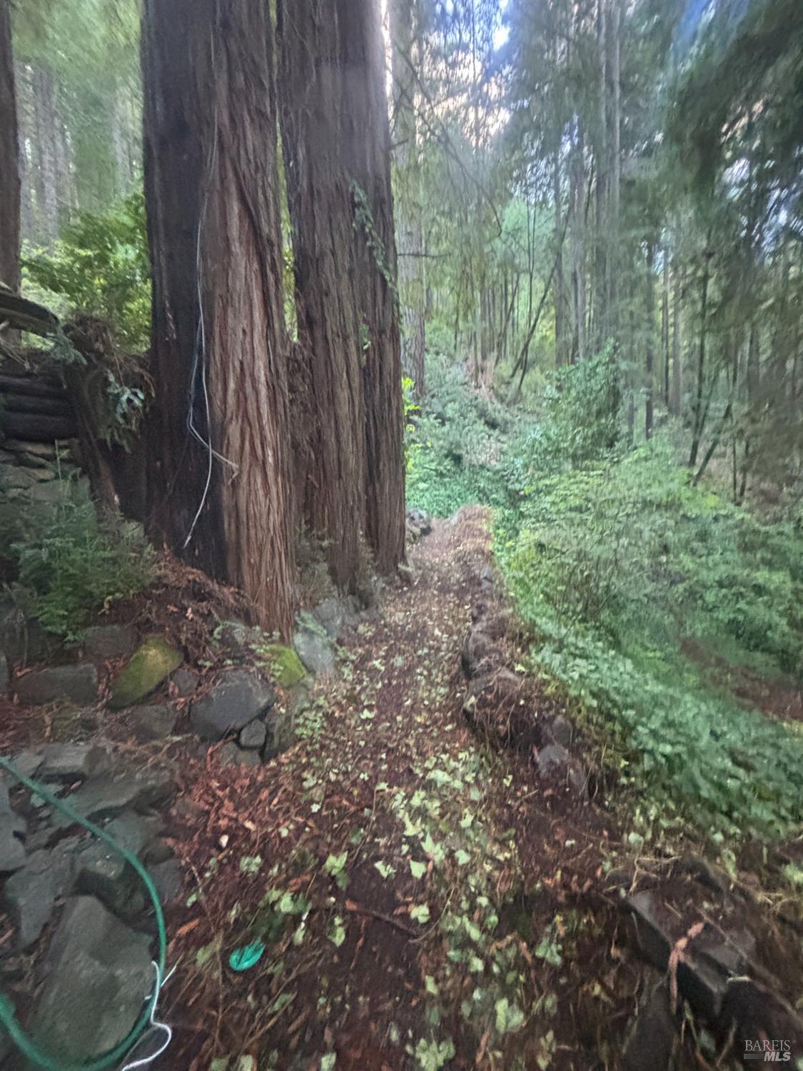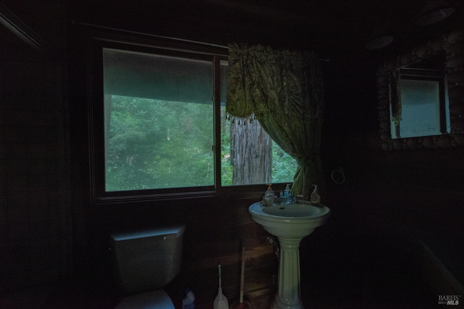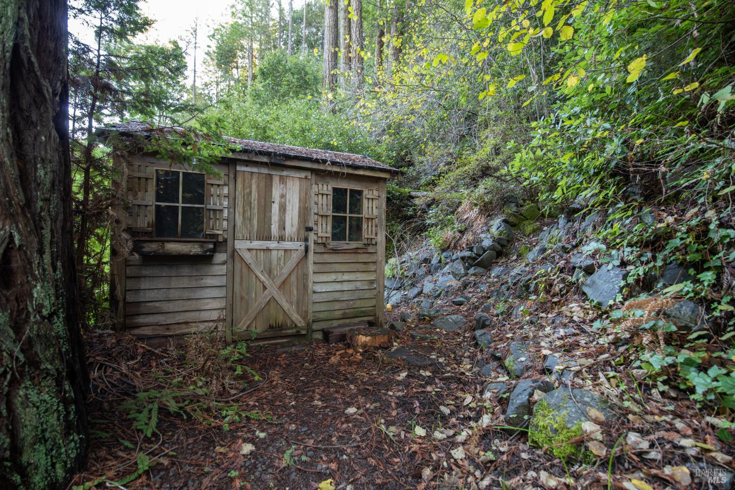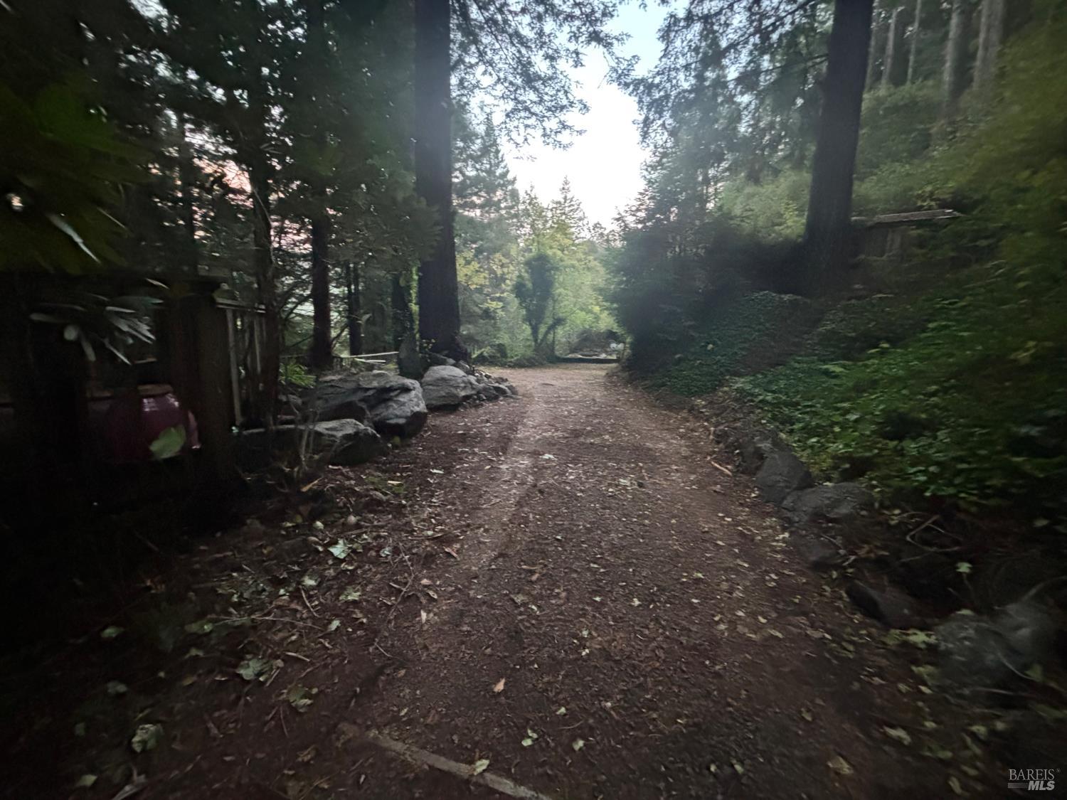 Oasis in the Redwoods! Main level has two bedrooms, 2 full bathrooms, fireplace, indoor utility room. Downstairs has separate entrance and a full bathroom-could be a separate studio/ADU. Privacy galore, once you get through your gates with 4.32 acres of Redwood Trees. Walk up the mountainside, there are trails throughout-they go way up the mountain, count hundreds of Redwood Trees. This home has several flat, useable, terraced entertaining areas, lined with innate rock walls. Enjoy the quiet, peace and tranquility, just above some of your neighbors, but with no one above you. Ferns galore, towering Redwoods, there is a six foot deep rocked pond in front of the house. Waterfall and Koi pond in front yard, by driveway. Needs a lot of work, heavy fixer, needs a new roof and outside stairs, PLUS the kitchen and all three bathrooms need remodeling, it needs new floor coverings and there is quite a bit of dry rot near windows and doors. Deck and railings also need repair. Then, however, you will have a great retreat/home that you can treasure for years to come. The front yard is not on a hill. It's flat to the front door. Remarkable rock work throughout. Upside is a beautiful SFD, duplex or retreat, comps are in the $700k's.Interested in this Listing?