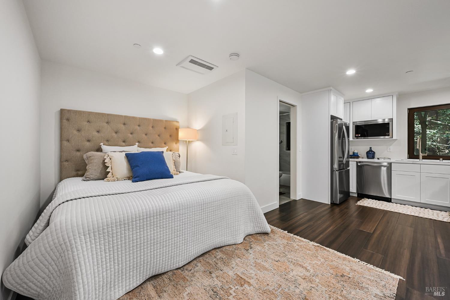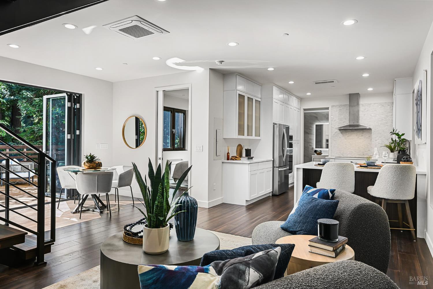 New construction in the heart of Rio Nido, this striking modern residence offers a rare opportunity to own a luxury retreat surrounded by the iconic redwoods of the Russian River. Thoughtfully designed across Three levels, the home blends contemporary architecture with the relaxed, nature-driven lifestyle that defines this region. The main living level features an open-concept layout with a high-end kitchen, premium appliances, dining area, office space, and laundry. Expansive windows and glass doors create a seamless connection to the outdoors, opening to a spacious deck set among towering trees perfect for entertaining or unwinding after a day on the river. Upstairs, a private primary suite captures peaceful treetop views, complemented by a versatile media room ideal for relaxation or hosting guests. The lower level includes a separate studio apartment with its own entrance, offering flexible use for extended stays, income potential, or a private guest retreat. Located minutes from the Russian River, this property places you at the center of an unmatched outdoor lifestyle kayaking, swimming, and riverside relaxation just moments away. Explore nearby hiking trails through the redwoods, take a short drive to the Sonoma Coast and Pacific Ocean, or spend the day enjoying world-class wineries throughout Sonoma County's renowned wine country. Per Seller an additional attached commercial parcel presents a unique opportunity for future development, boutique lodging, or creative investment potential. Private, modern, and surrounded by nature, this is a rare chance to own new construction in one of the Russian River's most sought-after communities.Interested in this Listing?