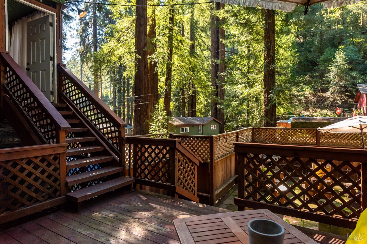 15256 Canyon 3 Road captures the easy going spirit of Rio Nido living. Tucked into this welcoming river community and located outside the flood zone, this one bedroom, one bath cabin reflects that classic Russian River lifestyle where weekends naturally turn into long, relaxed stays. Inside, warm wood paneling gives the home that nostalgic cabin feel while the open living area allows the space to flow comfortably for gathering with friends or spending a quiet evening in. The kitchen has been updated with rich maple cabinetry and opens directly to the main living area, creating a natural connection between the spaces. One of the standout features is the covered enclosed sun porch, a welcoming nook for coffee, casual meals, or an evening cup of tea while looking out over the trees. It adds an extra living space that extends the home outdoors. Step outside to a fenced patio area that sets the scene for summer dinners, relaxed afternoons, and entertaining. Bring your imagination this downstairs area could easily become the workspace or flex room you've always envisioned. Life here is as much about community as it is about nature, with the Russian River just a quick jaunt away for swimming or floating, and the Rio Nido Roadhouse nearby for live music, good food, and gathering with neighbors. Only a couple miles to downtown Guerneville, about 15 miles to the Sonoma County Airport or the beaches of Jenner, and under 20 miles to Santa Rosa shopping, this West County cabin offers a simple place to settle in and enjoy everything the Russian River area has to offer.Interested in this Listing?