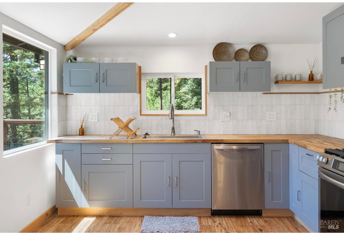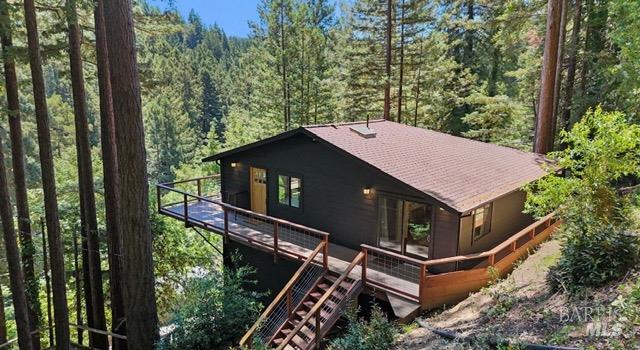 Tucked into the Guernewood Heights neighborhood along the famed Russian River corridor, this thoughtfully updated 1,770 sq ft home offers the rare combination of authentic Sonoma County character and modern, move-in-ready comfort all under a canopy of old-growth redwoods. Recently remodeled, the home has been carefully brought into the present with quality upgrades throughout: warm butcher block countertops, ceramic tile baths, cathedral ceilings, and hardwood floors that bring a fresh, elevated style to the home's timeless character. The updated kitchen is dialed in and ready for everything from weeknight dinners to weekend entertaining. Step outside and the setting takes over. The upper balcony commands sweeping, unobstructed views of ancient redwoods that rise dramatically against the sky a view that never stops giving. Below, a shaded lower patio offers a cooler, more intimate escape, perfectly suited for morning coffee, evening wine, or simply losing track of time in the quiet of the trees. The flexible lower-level space opens the door to whatever you envision a workshop, art studio, home gym, or generous storage. This is a home that holds you close but when you're ready to explore, the adventures await you: Several Russian River beaches are just minutes away, Armstrong Redwoods State Natural Reserve offers world-class hiking and horseback riding, and the acclaimed restaurants and wineries of the Russian River Valley are yours to explore at a moment's notice. Whether you're searching for a full-time residence or a weekend retreat, 17356 Old Monte Rio Road delivers the Sonoma County lifestyle without compromise.Interested in this Listing?