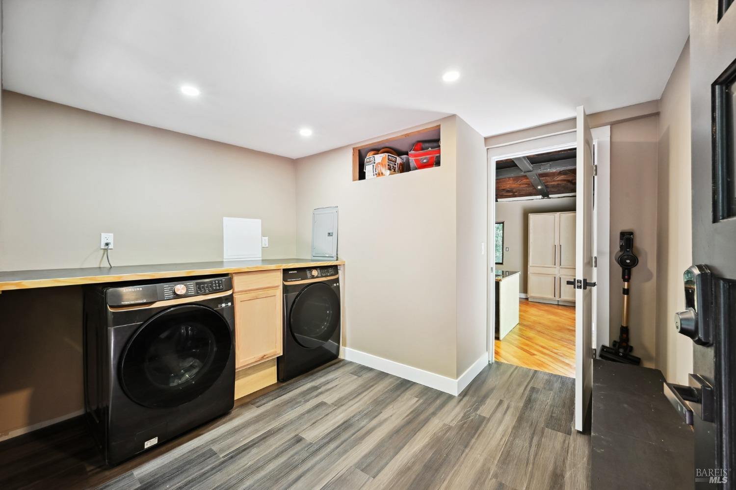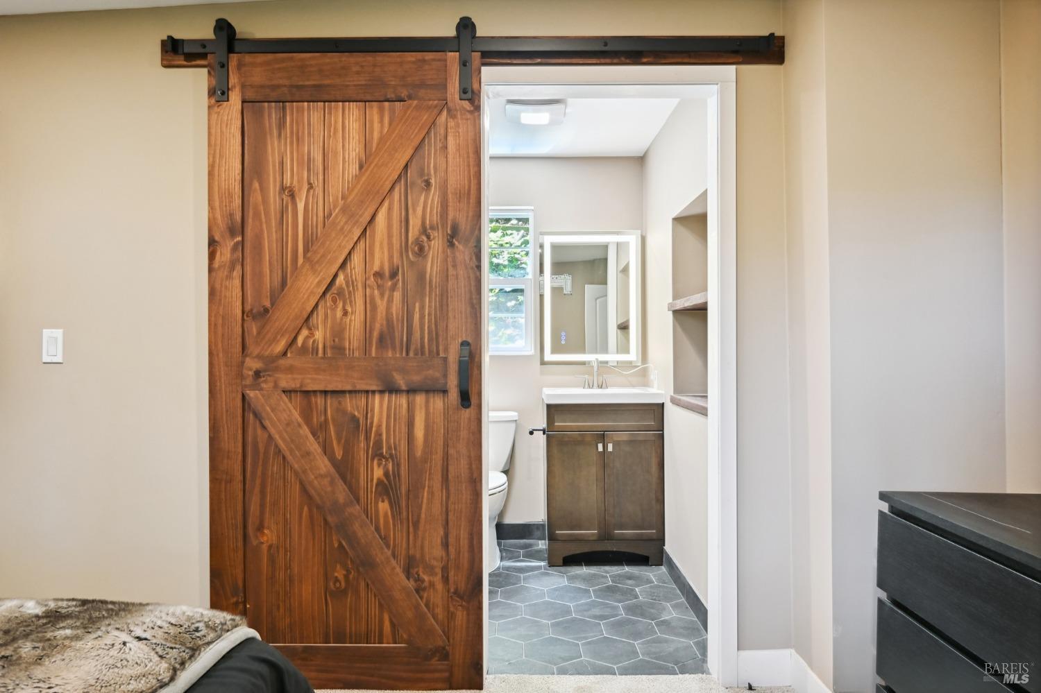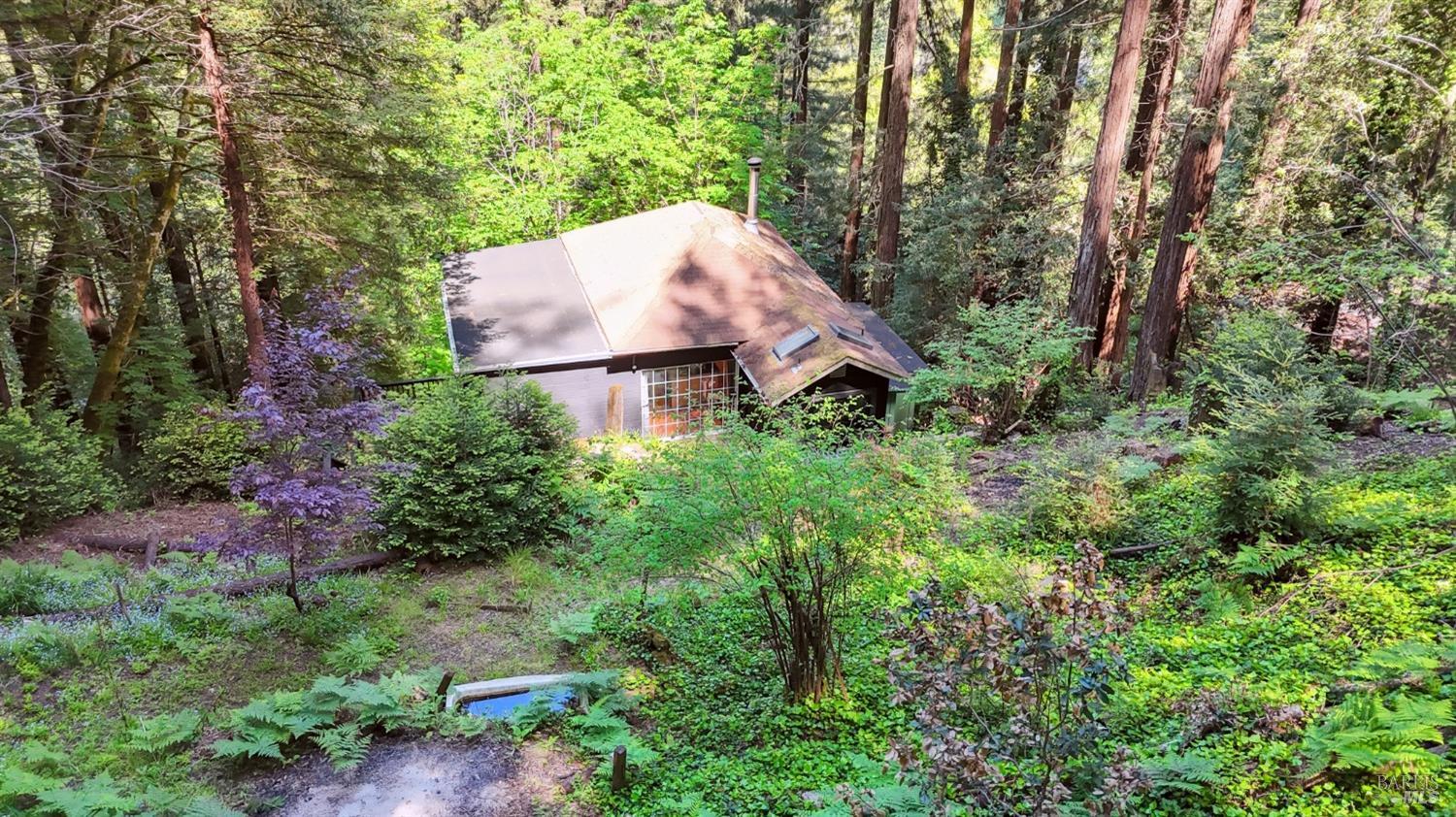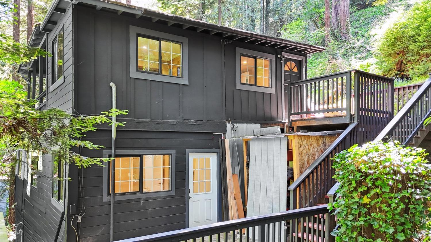 Redwoods Retreat Meets Modern Luxury. Nestled among the towering redwoods near the Russian River, this enchanting 1915 cabin has been reimagined with luxury finishes and designer touches throughout. Step inside to discover a custom entertainment wall with 75'' built-in TV, floating vanities, and porcelain-tiled spa bathrooms with soaking tubs and waterfall showerheads. The chef's kitchen shines with granite countertops, custom cabinetry, and a center island with cooktop, icemaker, and built-in wall oven/microwave. Enjoy elevated features like smart dimmable lighting, USB/USBC charging outlets, drop lighting, and custom wood-paneled ceilings. The lower-level suite boasts a spiral staircase, private entrance, and direct backyard accessideal for guests or extended stays. Entertain or unwind outdoors with a private yard perfect for dining and gardening. Additional perks: Samsung Smart laundry, mini-splits in key rooms, barndoor bath, and Cat-6 wiring for modern connectivity. Beauty, function, and serenity converge in this rare gem, don't miss it. Own Your Dreams!Interested in this Listing?