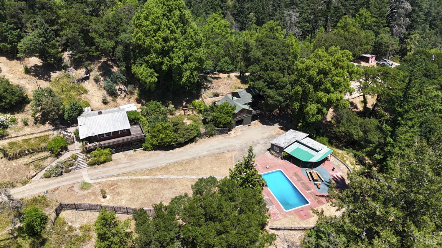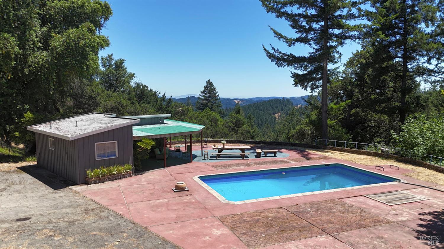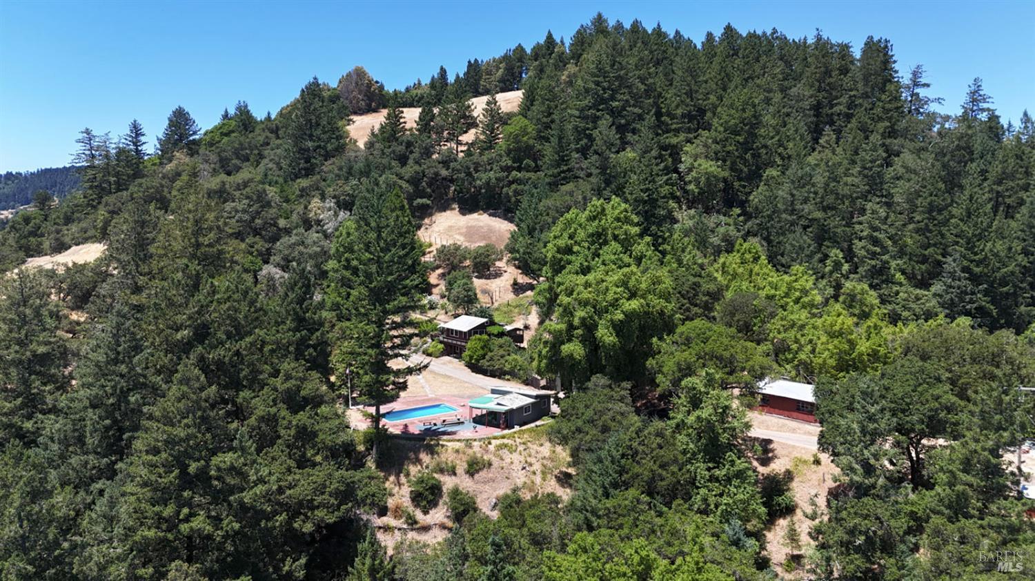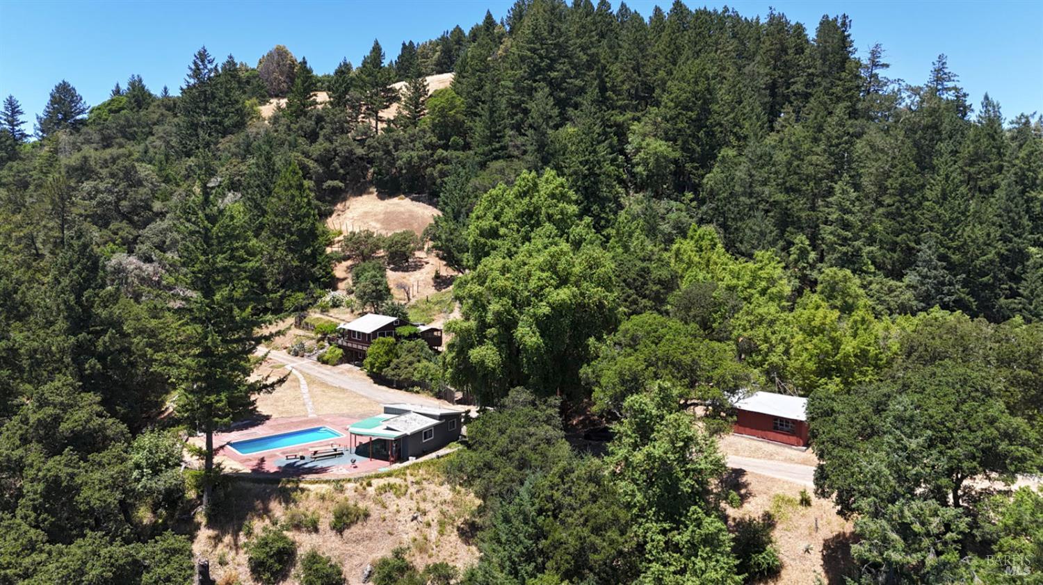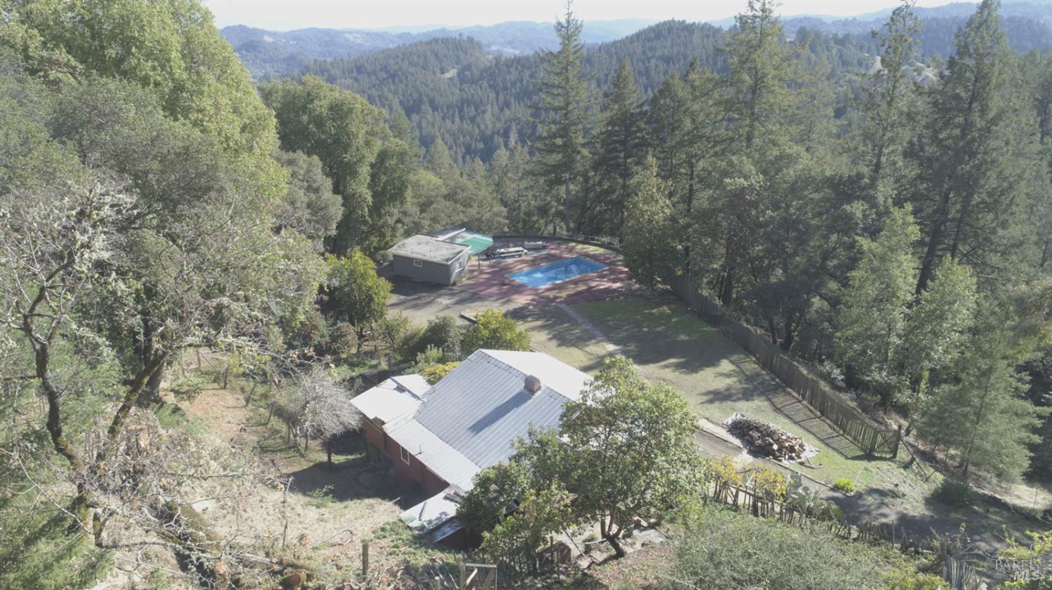 This 45-acre ranch offers privacy and forever views with a 900+/- square foot 1/1 main house, 900+/- square foot 1/1 2nd caretakers' home, 560+/- square foot 2/1 pool house with a resort style in-ground pool, 2,000+/- square foot 1/1 converted barn, and a 1,500 +/- square foot storage building. This property was originally developed beginning in 1932 through the 1950's and into the early 60's according to the Sonoma County Assessor's office. All its improvements are maintained mostly original with old world charm. The improvements here were all built prior to county regulation which makes them 'legal non-conforming', meaning they are grand-fathered in. You could not re-create this compound again today. This beautiful property is located just 4.4 miles from downtown Cazadero off Morhardt Road, an extension of King Ridge Road, which is a private all-weather road shared by large acreage property owners. There are developed roads throughout the property, a large 5+/- acre South facing meadow, a redwood grove, stunning panoramic views over 5 counties, hiking/riding trails, and much more. If you're looking for a country retreat property to get away too and have perfect privacy and serenity where nature abounds, this is the ranch for you.Interested in this Listing?