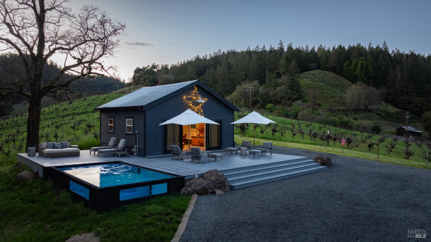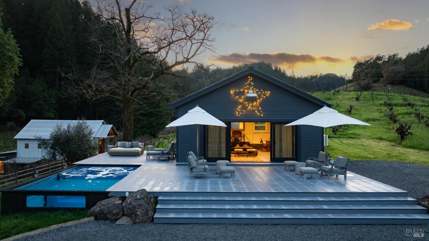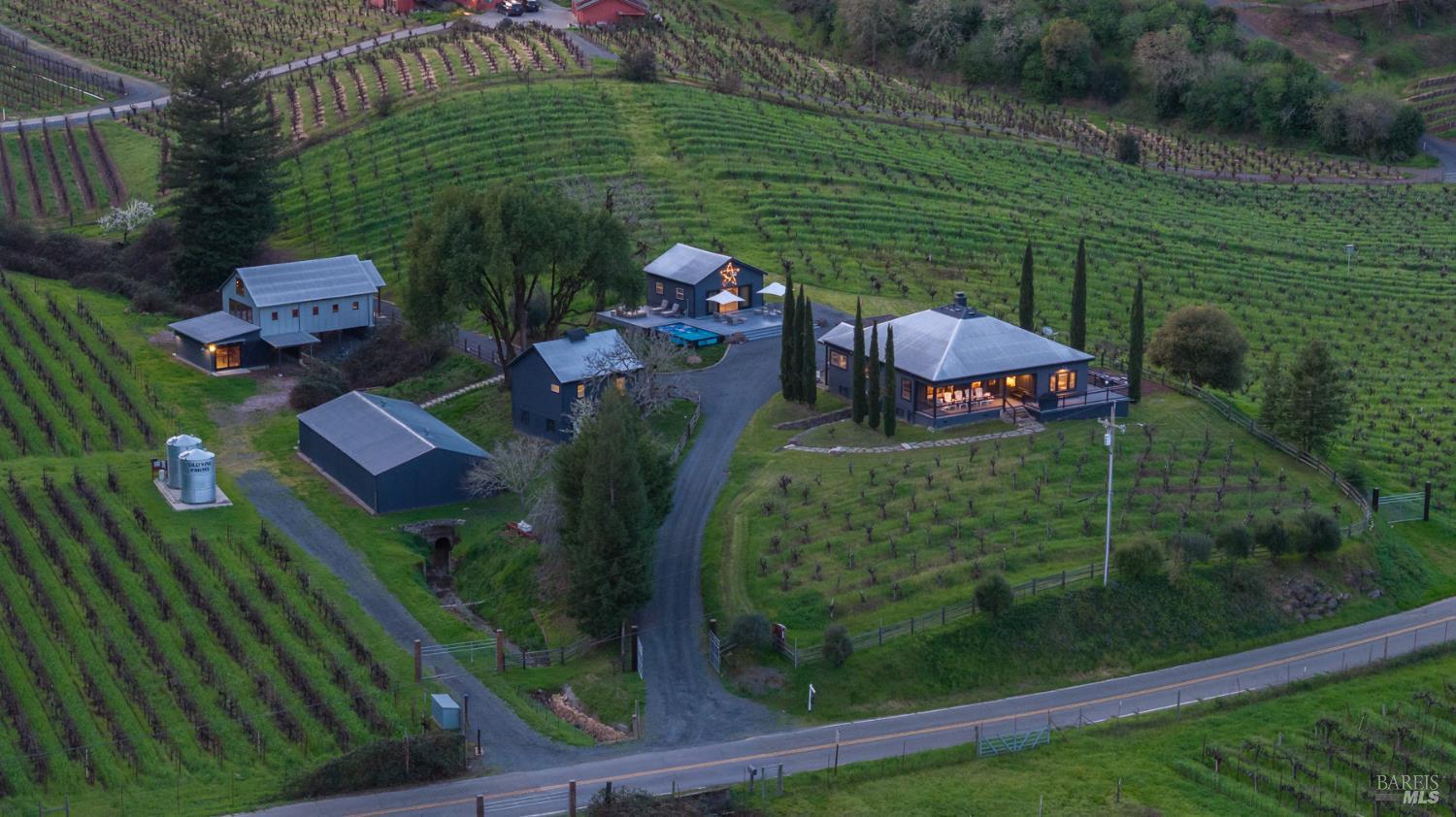 Welcome to Old Vine Farms, a one-of-a-kind 74.51-acre Wine Country estate in the heart of Forestville. Nestled where Green Valley Creek, Green Valley, Russian River Valley, and Sonoma Valley converge, this remarkable property reflects more than a century of Sonoma County heritage. Old Vine Farms is not a replicait is a historic estate originally founded by one of Sonoma County's pioneering grape-growing and winemaking families. From the back porch, the property opens to a village-like setting of five distinctive structures surrounded by vineyards, trees, and rolling countryside. At the center is a beautifully renovated 3-bedroom, 3-bath farmhouse that blends old-world charm with modern design. A separate 1-bedroom, 1-bath guest cottage provides a peaceful and private retreat for visitors. Nearby, a pool house and expansive deck surround a plunge pool, creating the perfect setting for relaxing or entertaining under the warm Sonoma sun. The reimagined vineyard barn serves as a memorable gathering space, while the vineyard office below overlooks more than 10 acres of vines and 65 acres of forested landscape. A spacious workshop offers endless possibilities for creative projects, hobbies, or storage. The vineyard includes rare dry-farmed old vine Zinfandel dating back to the 1800s, along with Chardonnay planted in the early 1970s, adding historic character and authenticity to the land. Private trails wind through redwoods, firs, and bay trees, creating a tranquil setting that feels worlds away. Located just over an hour from the Golden Gate Bridge, Old Vine Farms offers a rare opportunity to experience a timeless Wine Country lifestyle while enjoying the comfort and convenience of modern living. Furnishings are also available.Interested in this Listing?