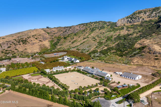 Introducing an exquisite 10 acre equestrian haven in the prestigious Santa Rosa Valley. Presenting the renowned property currently home to ''Q of E Farm'', this extraordinary estate sets the standard for world-class hunter, jumper, and equitation facilities. With meticulous attention to detail, this exclusive property boasts 46 opulent and spacious stalls, including an in-stall Vita Floor. Each stall is a testament to superior craftsmanship, featuring custom construction using the finest materials. Designed with your horse's comfort in mind, these stalls are equipped with gentle swoop yokes and outfitted with premium rubber mattresses. Advanced amenities such as automatic water bowls, fly spray system, lighted arena with full sound system and with video, a comprehensive security and AV system, commercial generator, high ceilings and wide barn aisles create an unrivaled environment of luxury.The centerpiece of this exceptional property is the state-of-the-art Grand Prix sized show jumping arena. Sprawling over 200x300 ft, this masterpiece is adorned with specialized GGT footing and an innovative Riso Ebb & Flow watering and drainage system a seamless blend of form, function and sustainability.Indulge in the pinnacle of equestrian elegance with a host of thoughtfully designed spaces. Discover an elegantly appointed private office, a generous tack room, cobblestone floors, and an inviting upstairs viewing lounge where you can witness the magic of equestrian pursuits. The property also features an oversized hay and feed room, a convenient commercial laundry room, and two well-appointed bathrooms. Furthermore, indoor and outdoor cross tie areas provide convenience and versatility.Unparalleled attention to detail extends to the outdoor areas of the farm, with a total of nine expansive turnouts. Among these, three magnificent, irrigated grass turnouts stand out, providing your horses with an idyllic and lush environment and a state-of-the-art Eurosizer.Complimenting this exceptional equestrian sanctuary is a stand-alone equipment storage garage, boasting two exquisite two-bedroom living quarters above with 1/2 bath on ground level. Additionally, the property offers ample space for up to six large RVs and/or horse trailers, catering to the needs of the most discerning equestrian enthusiasts.It's the ultimate equestrian experience with this bespoke property crafted for passionate horse enthusiasts where every aspect of this estate has been meticulously designed to elevate the lifestyle of both horse and rider.Interested in this Listing?