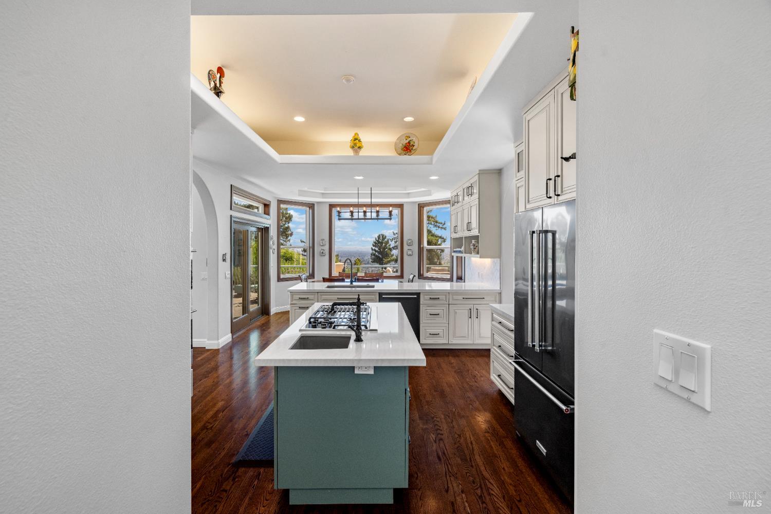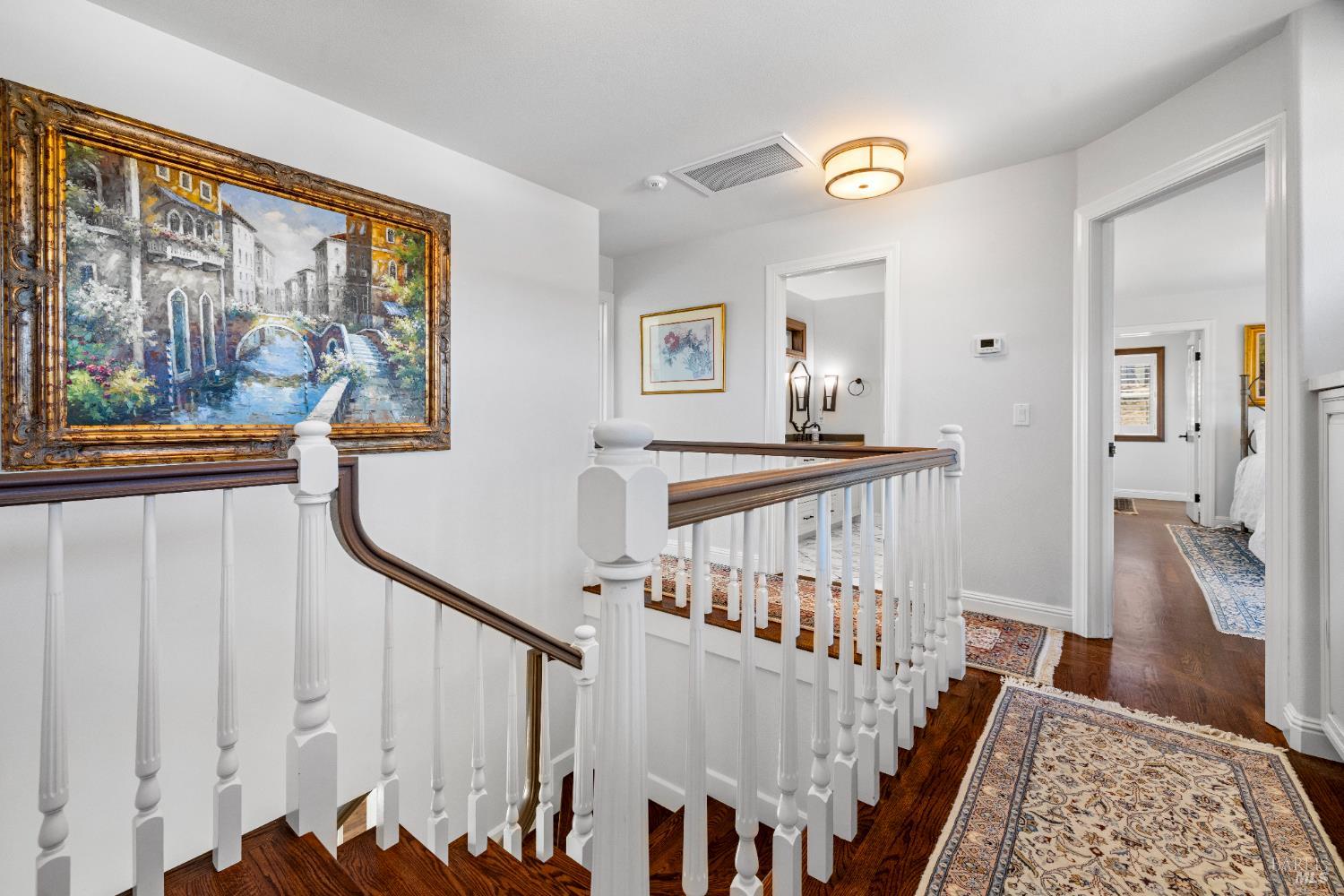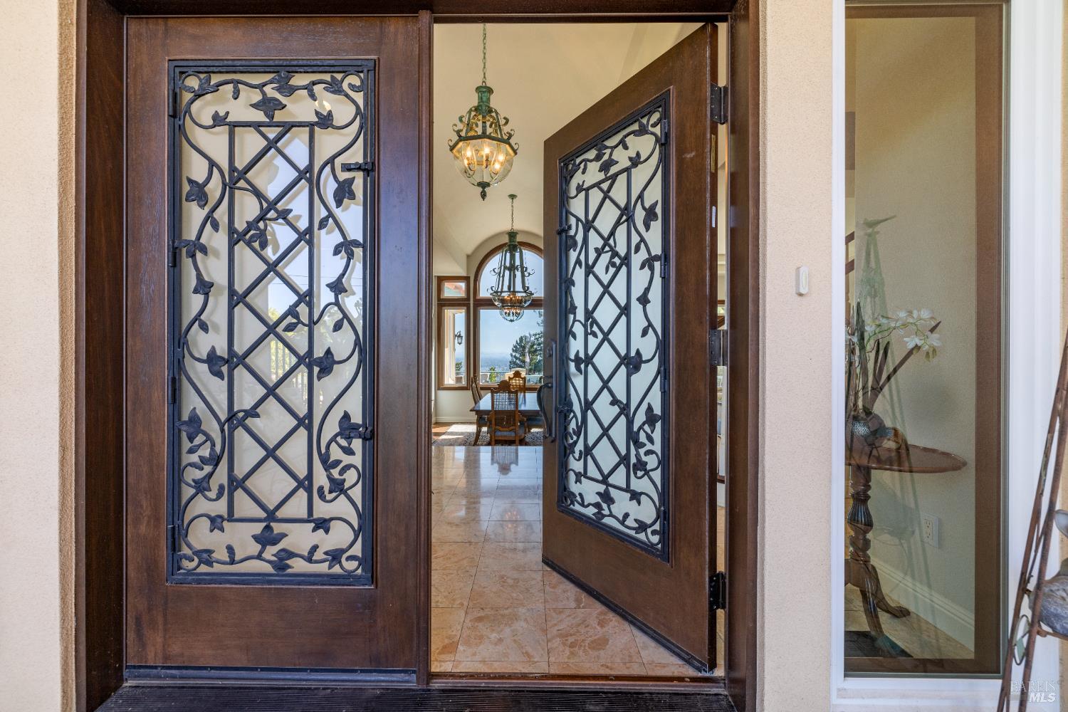 Stunning Private Retreat with Modern Upgrades & Gorgeous Grounds! This beautifully appointed home combines luxury, comfort, and efficiency with a long list of premium upgrades. Inside, you'll find a spacious layout with the primary suite conveniently located downstairs, complemented by Hunter Douglas window coverings, 2018 energy-efficient windows, upgraded flooring and insulation, and a central vacuum system for easy living. The gourmet kitchen and entertaining spaces are enhanced by Wolf appliances, while a custom wine cellar beneath the home adds a unique touch. Safety and convenience come built in with a 22kW natural gas generator (100 amps), a full alarm system, and automated retractable outdoor window screens. Outdoors, enjoy resort-style living with a fully fenced and irrigated yard, powered awnings, and an expansive patio with a complete outdoor kitchen featuring a refrigerator, burner and sink. The terraced grounds showcase over 50 high-producing fruit trees, creating a lush, orchard-like setting. Additional highlights includes a general generator system and thoughtful landscaping designed for both beauty and sustainability. This home is the perfect blend of high-end finishes, modern efficiency, and natural abundance - an extraordinary opportunityInterested in this Listing?
