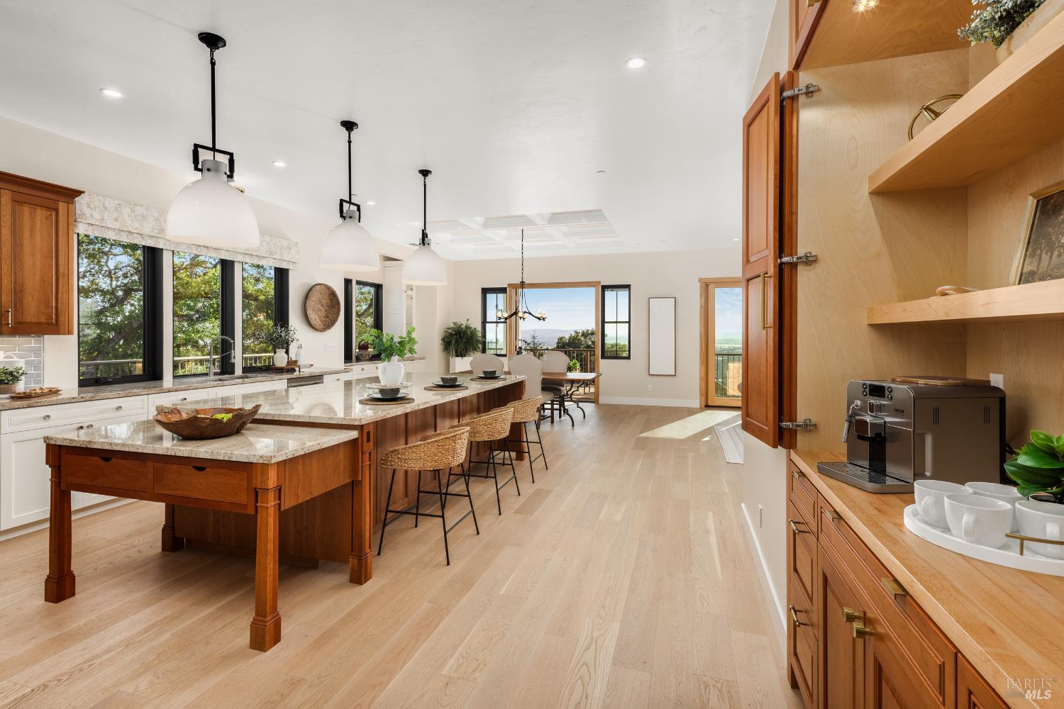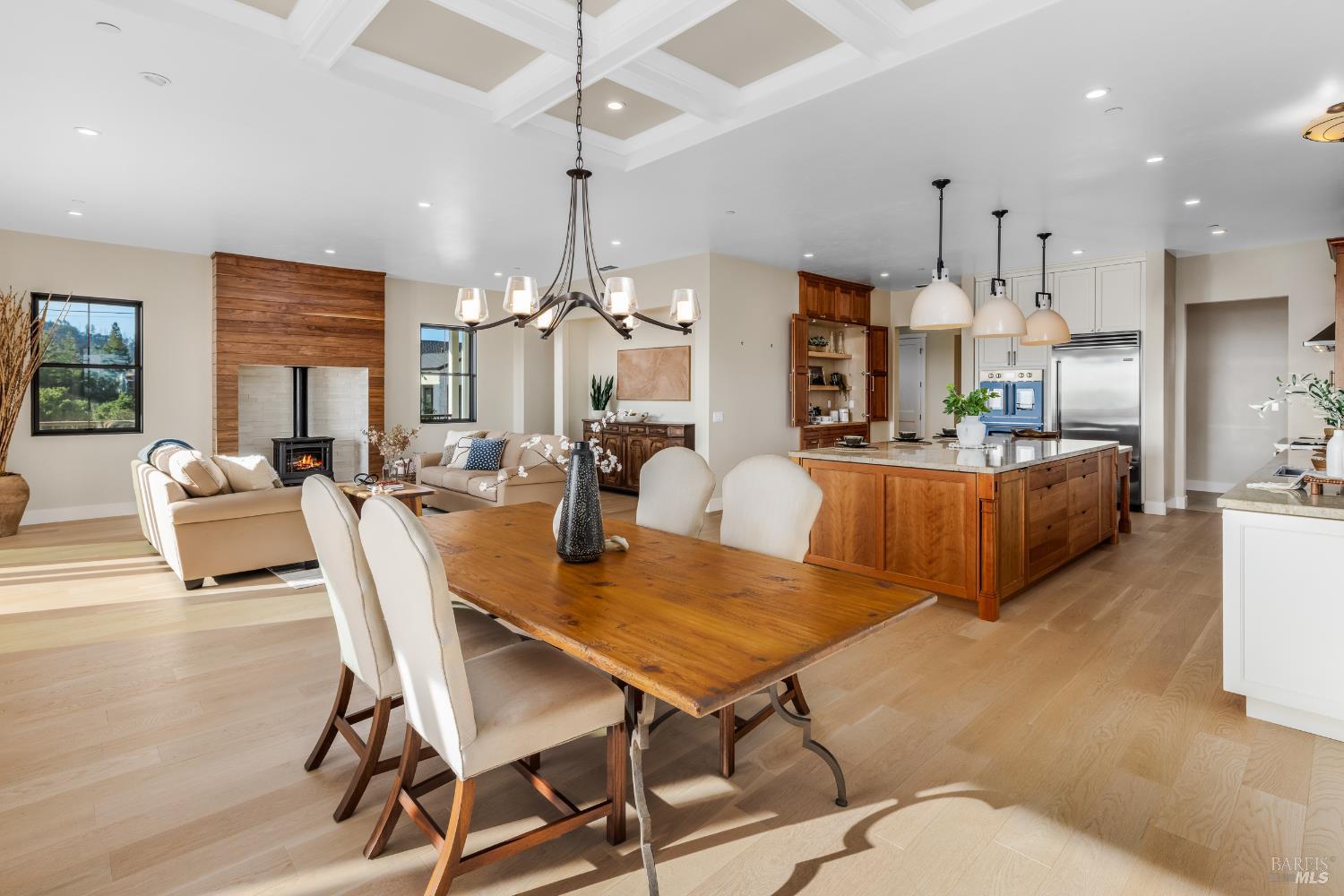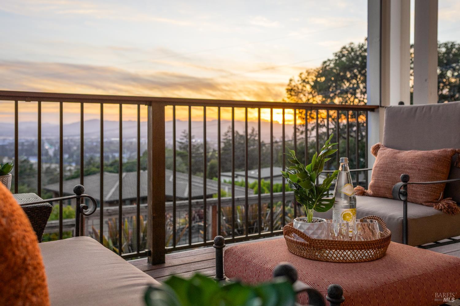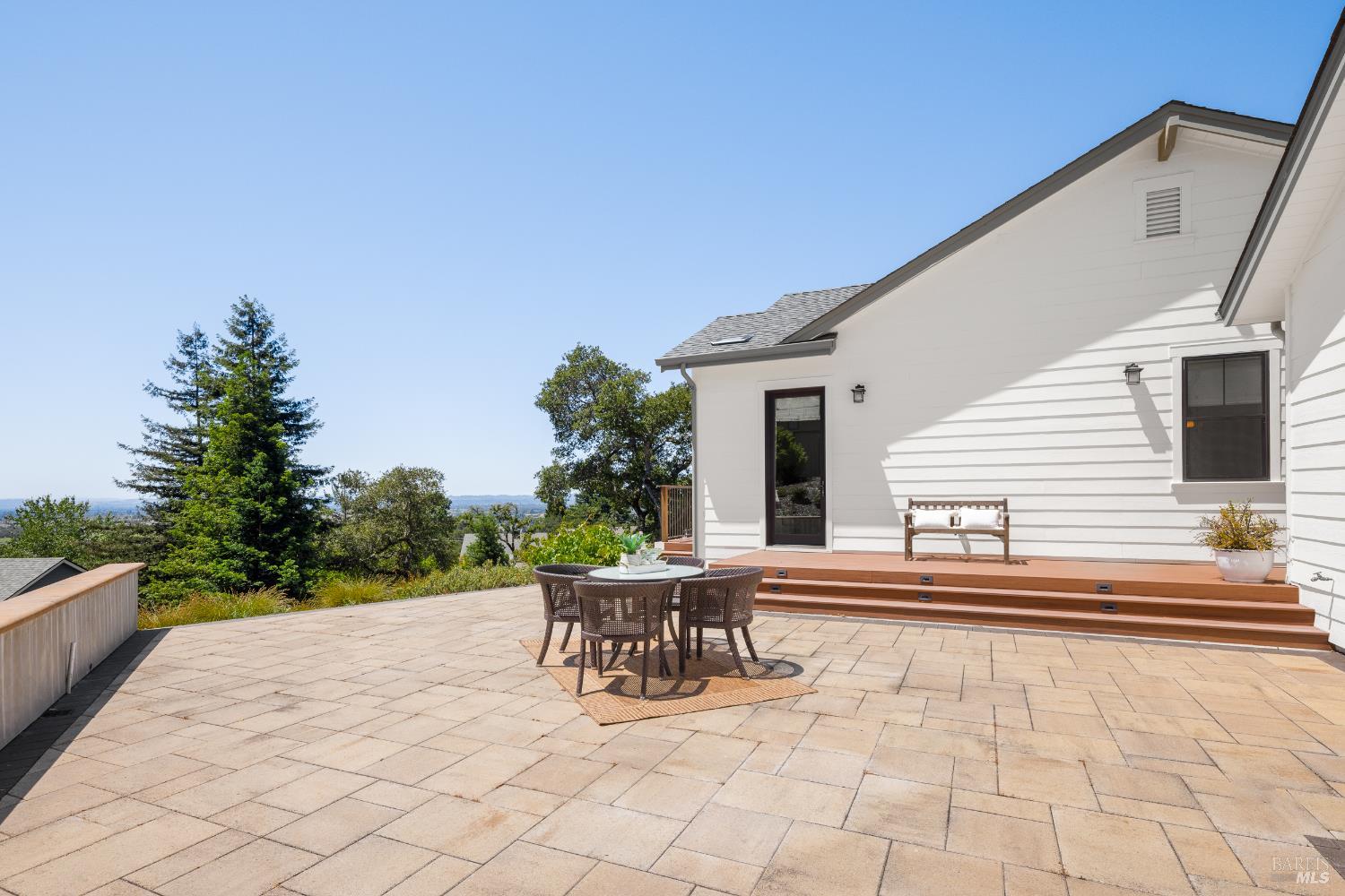 Welcome to exquisite 1335 Wikiup Drive. This captivating single-story custom residence, designed by Farrell Faber in Santa Rosa's beloved Wine Country neighborhood offers breathtaking sunset views. Home features 4 spacious bedrooms, 2.5 luxurious bathrooms, dedicated office space all on a large, beautifully landscaped .59-acre lot. The gourmet kitchen is an entertainer's dream, featuring top-tier BlueStar appliances, a generous walk-in pantry, charming coffee bar & expansive island. The great room is adorned with architecturally appealing coffered ceilings & features a fireplace with walnut surround. The designer appeal showcases solid cherry double entry doors, while extensive white oak flooring adds warmth & elegance. The inviting wrap-around porch boasts breathtaking vistas of cityscape & distance mountains where the fog often rolls in. The primary suite offers views, luxury bath & direct patio access. There's great outdoor entertaining with Trex decking & spacious patio. Professionally landscaped low maintenance grounds with fruit trees and colorful foliage. Enjoy minimal energy bills with paid-for solar & robust battery backup, oversized garage & convenience of being close to shopping, the Wikiup Swim & Tennis Club, Sonoma County Airport, wineries & fine dining.Interested in this Listing?