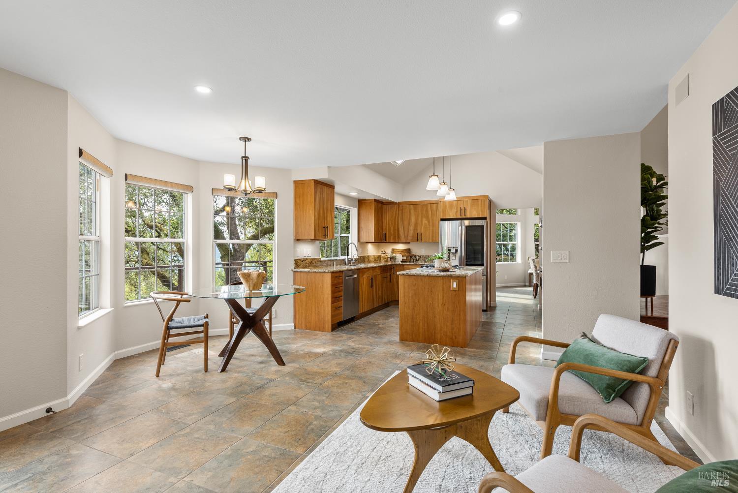 This beautifully updated multi-level home offers easterly-facing views, elegant indoor-outdoor living, and exceptional privacy. Surrounded by lush, professionally and naturally landscaped grounds and backing to open space, this hilltop retreat captures the essence of Wine Country living. Natural light emphasizes the open layout and scenic surroundings. Enjoy both a formal living room and a separate family room. The updated kitchen has plenty of workspace, energy efficient appliances and beautiful custom cherry cabinets with granite countertops. There is a bedroom/office and full bathroom on the main level. The bathrooms feature high-end finishes, while the spa-inspired primary suite includes expansive views and luxury finishes and fixtures. A versatile extra space adds flexibility for a home office, gym, or media room. With thoughtfully designed living spaces, refined updates throughout, and views that stretch for miles, this is an opportunity to own a peaceful, move-in-ready retreat in one of Santa Rosa's most desirable locations.Interested in this Listing?