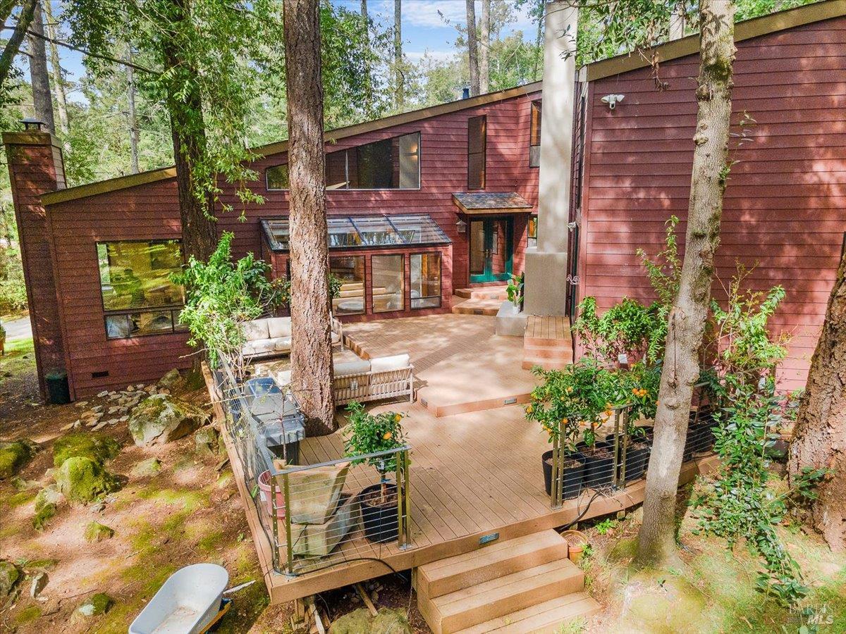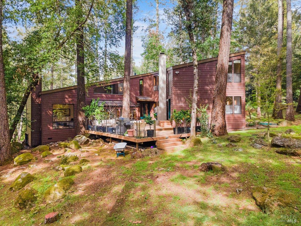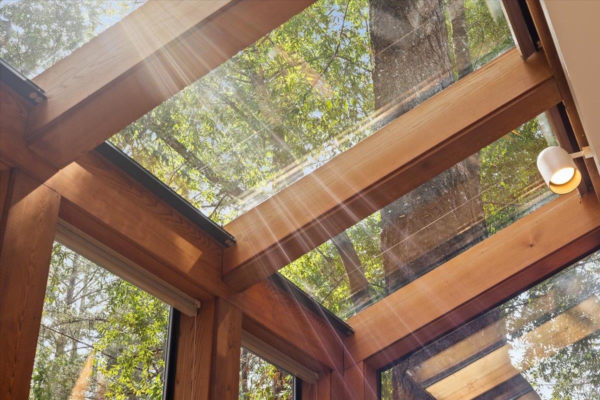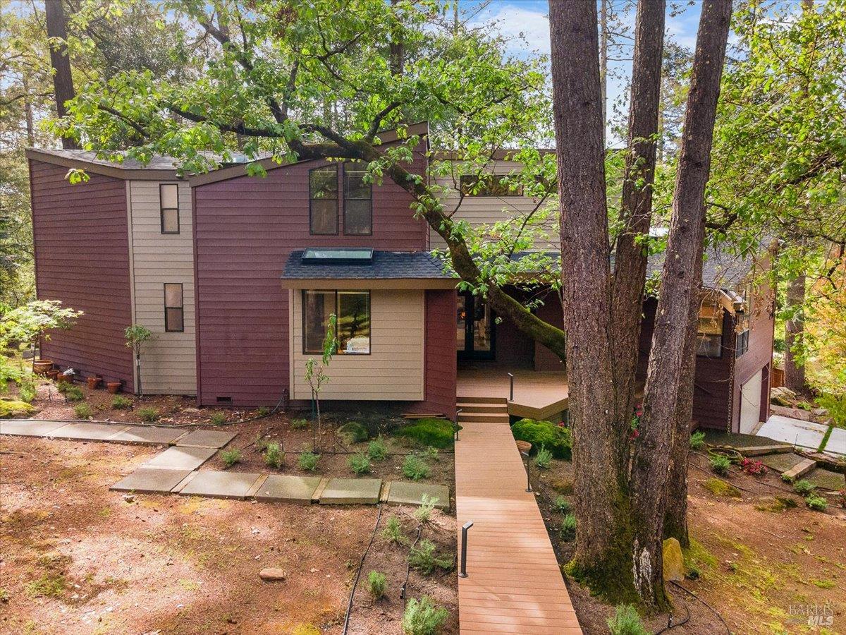 Nestled in the tranquil foothills of Santa Rosa's coveted Piney Knolls neighborhood, 2656 Knob Hill Drive is a masterclass in architectural elegance. Positioned peacefully on a generous, flat one-acre lot at the end of a quiet court, this beautifully designed home offers an unparalleled private retreat surrounded by mature trees and the gentle serenity of nature. Step inside and be captivated by a sun-drenched, open-concept floor plan that seamlessly brings the outdoors in. Magnificent floor-to-ceiling glass windows and dramatic vaulted cedar ceilings frame the lush landscape, while white French oak wide-plank floors ground the space in modern warmth. The step-down living area, anchored by a striking African ladder stone fireplace and thoughtfully integrated LED accent lighting throughout creates a sophisticated ambiance during twilight and evening hours. The chef's kitchen is a study in worldly sophistication and high-end function. It features exquisite Taj Mahal Quartzite countertops sourced from India, a handmade Spanish clay tile backsplash, and premium German Bosch appliances. Entertaining is effortless with a temperature-controlled glass wine wall and a flawless flow out to the expansive back deck. Here, you can enjoy a local vintage by the outdoor fireplace while overlooking your fully fenced, park-like backyard. Retreat to the primary suite, a spa-like sanctuary adorned with beautiful South Asian quartz. End your quiet evenings soaking in the freestanding designer tub, perfectly positioned to gaze up through a dramatic two-story window into the forest canopy overhead. Complete with state-of-the-art smart home technologies and a highly efficient new roof, this property perfectly balances close-in city convenience with the supreme quiet of a natural haven. The combination of private serenity and bespoke design elements makes this home truly one of a kind. Come find your peaceful place in Sonoma County's premier foothills.Interested in this Listing?