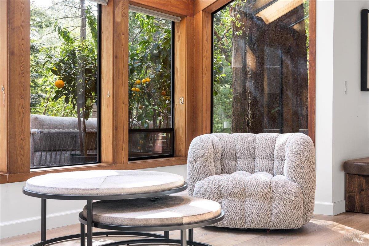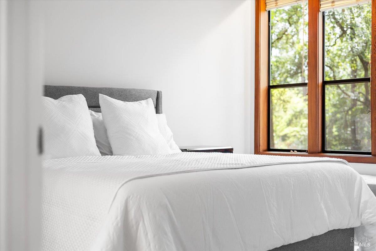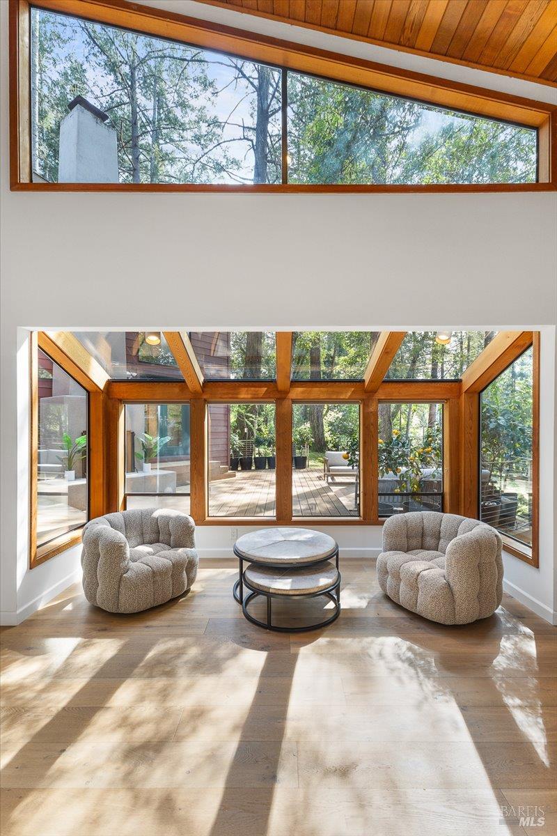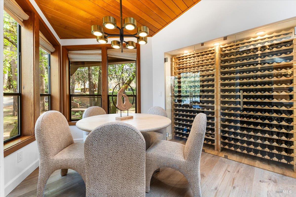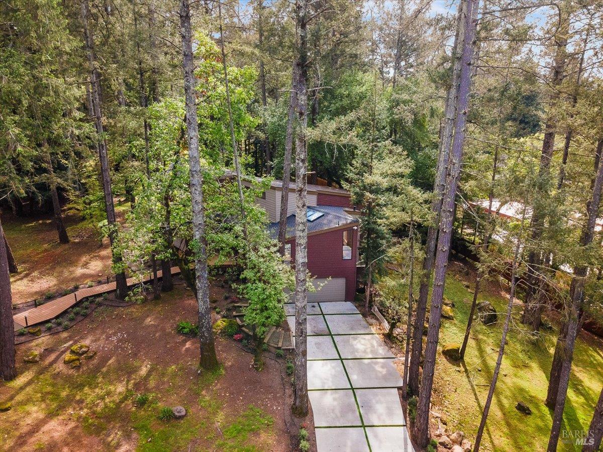 Nestled in the tranquil foothills of Santa Rosa's coveted Piney Knolls neighborhood, 2656 Knob Hill Drive is a masterclass in architectural elegance. Positioned peacefully on a generous, flat one-acre lot at the end of a quiet court, this beautifully designed home offers an unparalleled private retreat surrounded by mature trees and the gentle serenity of nature. Step inside and be captivated by a sun-drenched, open-concept floor plan that seamlessly brings the outdoors in. Magnificent floor-to-ceiling glass windows and dramatic vaulted cedar ceilings frame the lush landscape, while white French oak wide-plank floors ground the space in modern warmth. The step-down living area, anchored by a striking African ladder stone fireplace and thoughtfully integrated LED accent lighting throughout creates a sophisticated ambiance during twilight and evening hours. The chef's kitchen is a study in worldly sophistication and high-end function. It features exquisite Taj Mahal Quartzite countertops sourced from India, a handmade Spanish clay tile backsplash, and premium German Bosch appliances. Entertaining is effortless with a temperature-controlled glass wine wall and a flawless flow out to the expansive back deck. Here, you can enjoy a local vintage by the outdoor fireplace while overlooking your fully fenced, park-like backyard. Retreat to the primary suite, a spa-like sanctuary adorned with beautiful South Asian quartz. End your quiet evenings soaking in the freestanding designer tub, perfectly positioned to gaze up through a dramatic two-story window into the forest canopy overhead. Complete with state-of-the-art smart home technologies and a highly efficient new roof, this property perfectly balances close-in city convenience with the supreme quiet of a natural haven. The combination of private serenity and bespoke design elements makes this home truly one of a kind. Come find your peaceful place in Sonoma County's premier foothills.Interested in this Listing?