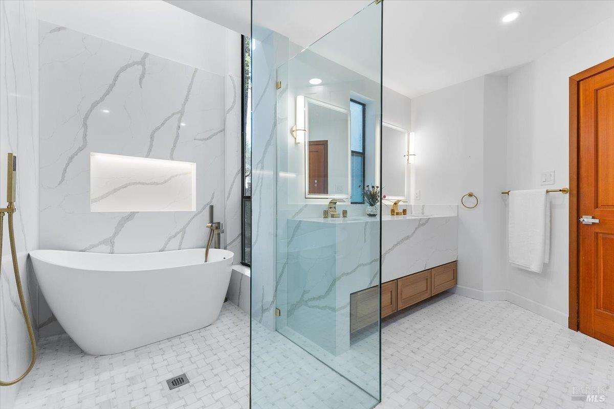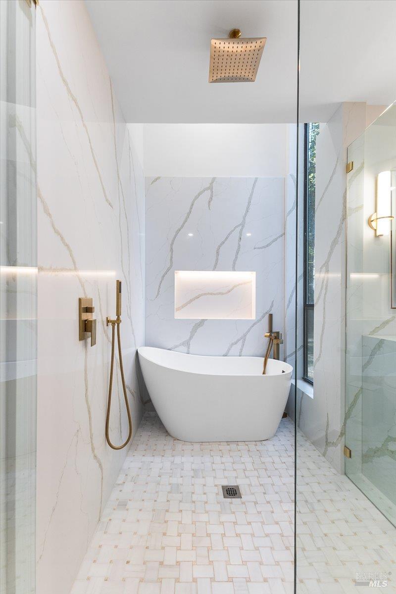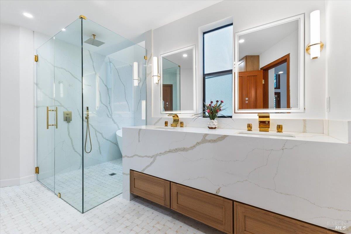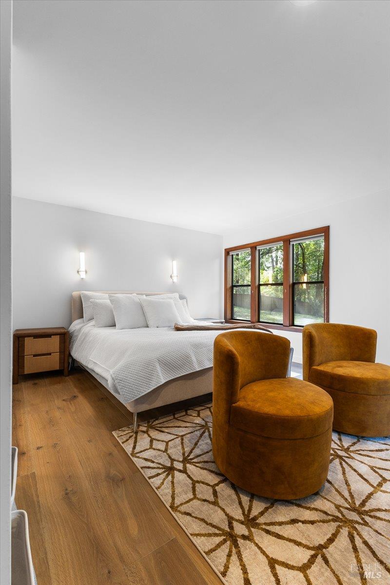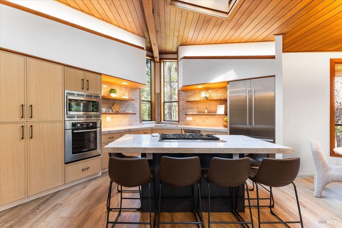 Nestled in the tranquil foothills of Santa Rosa's coveted Piney Knolls neighborhood, 2656 Knob Hill Drive is a masterclass in architectural elegance. Positioned peacefully on a generous, flat one-acre lot at the end of a quiet court, this beautifully designed home offers an unparalleled private retreat surrounded by mature trees and the gentle serenity of nature. Step inside and be captivated by a sun-drenched, open-concept floor plan that seamlessly brings the outdoors in. Magnificent floor-to-ceiling glass windows and dramatic vaulted cedar ceilings frame the lush landscape, while white French oak wide-plank floors ground the space in modern warmth. The step-down living area, anchored by a striking African ladder stone fireplace and thoughtfully integrated LED accent lighting throughout creates a sophisticated ambiance during twilight and evening hours. The chef's kitchen is a study in worldly sophistication and high-end function. It features exquisite Taj Mahal Quartzite countertops sourced from India, a handmade Spanish clay tile backsplash, and premium German Bosch appliances. Entertaining is effortless with a temperature-controlled glass wine wall and a flawless flow out to the expansive back deck. Here, you can enjoy a local vintage by the outdoor fireplace while overlooking your fully fenced, park-like backyard. Retreat to the primary suite, a spa-like sanctuary adorned with beautiful South Asian quartz. End your quiet evenings soaking in the freestanding designer tub, perfectly positioned to gaze up through a dramatic two-story window into the forest canopy overhead. Complete with state-of-the-art smart home technologies and a highly efficient new roof, this property perfectly balances close-in city convenience with the supreme quiet of a natural haven. The combination of private serenity and bespoke design elements makes this home truly one of a kind. Come find your peaceful place in Sonoma County's premier foothills.Interested in this Listing?