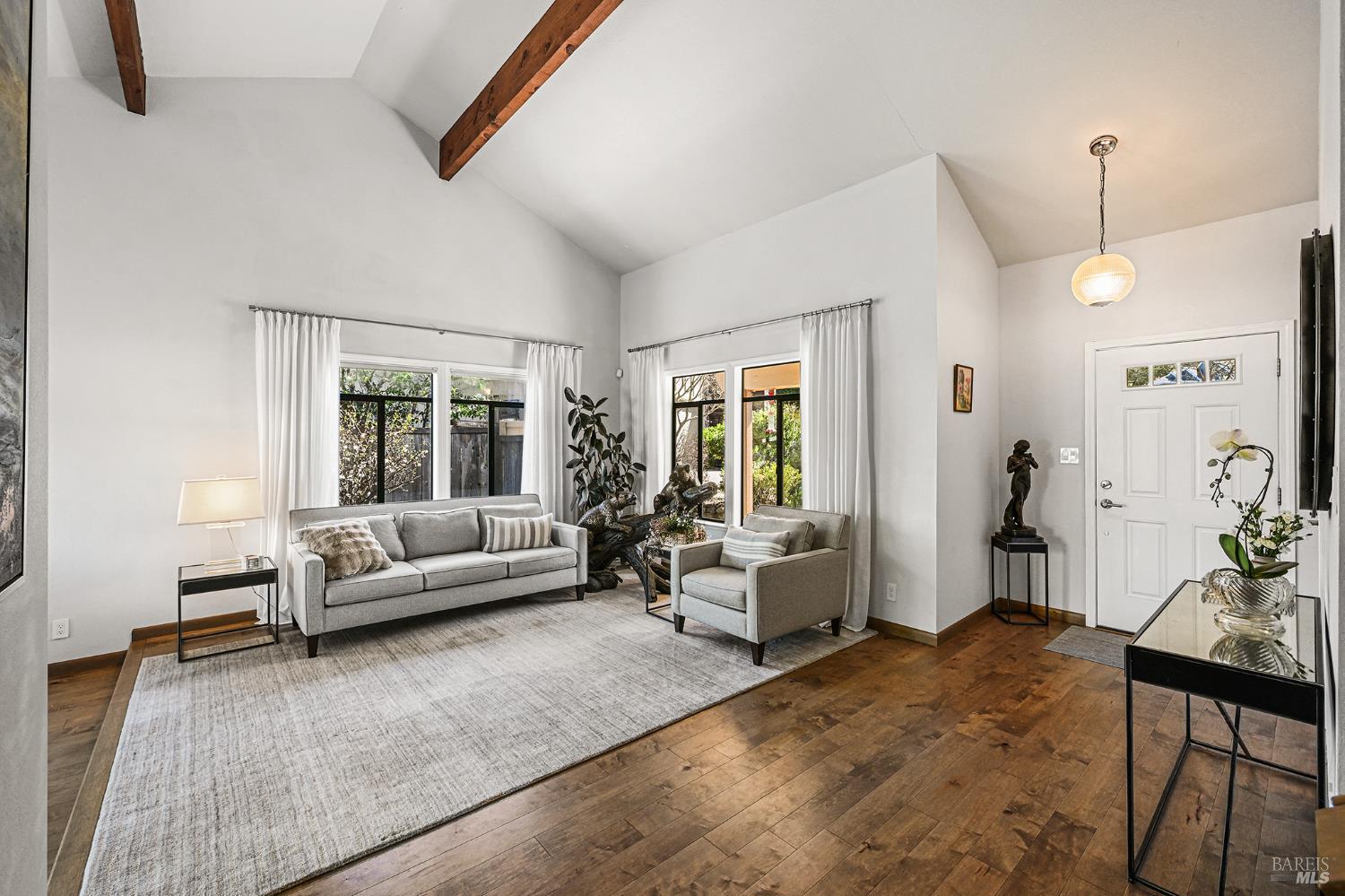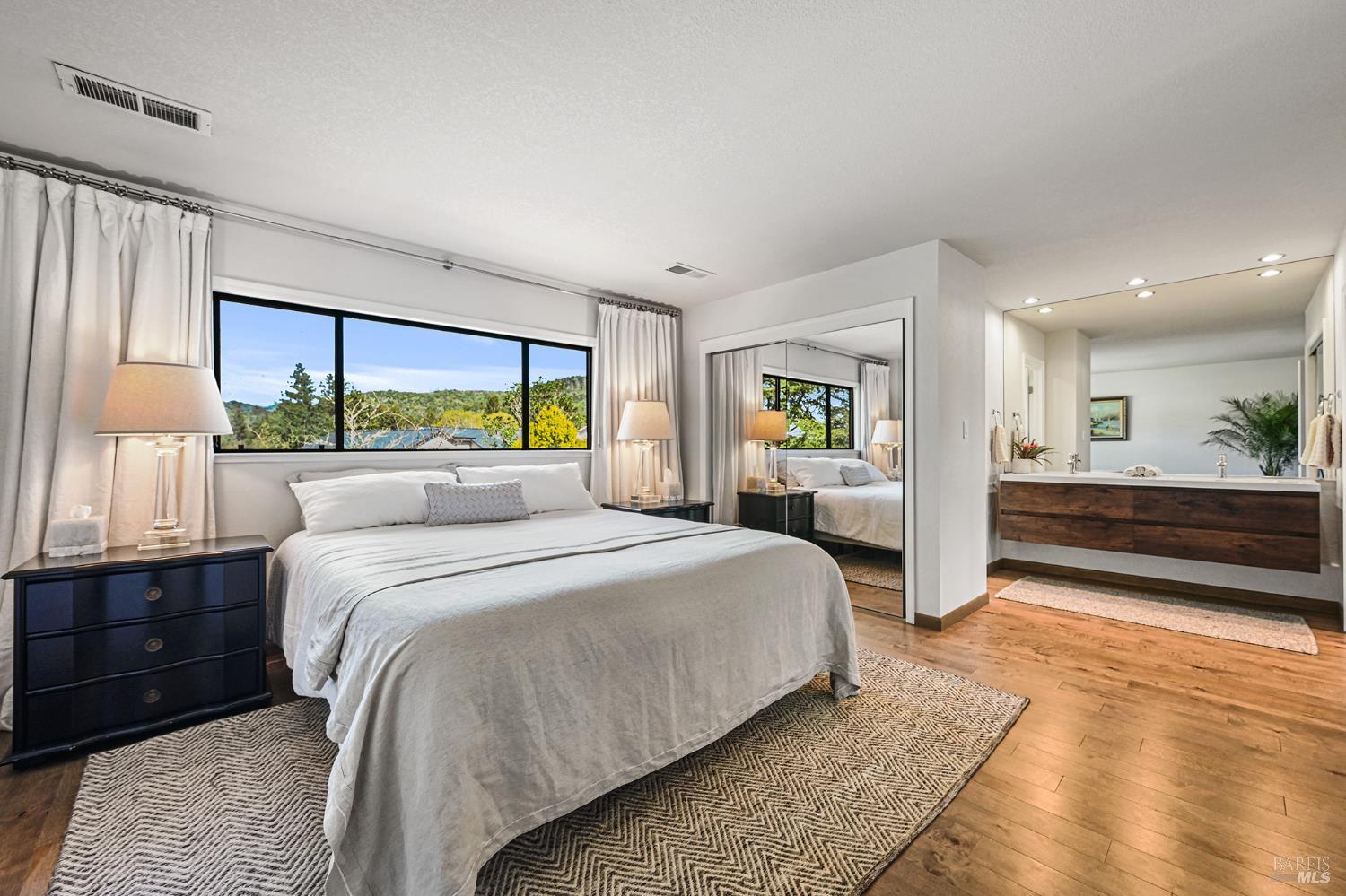 Tucked away on a quiet cul-de-sac in one of Bennett Valley's most desirable neighborhoods, this beautifully remodeled home blends comfort, style, and a deep connection to nature. With 3 bedrooms, 2.5 bathrooms, and a charming detached studio, it's thoughtfully designed for comfortable everyday living. The home welcomes you with the warmth of solid maple flooring, vaulted ceilings, and abundant natural light. The remodeled kitchen, featuring quartz countertops and modern finishes, flows seamlessly into the open living and dining spaces, creating an inviting setting for everyday living or entertaining. Updated bathrooms offer clean, contemporary design, while the detached studio provides a versatile space well suited for a home office, art studio, fitness area, or creative retreat. Enjoy Restoration Hardware lighting, a pull-down TV mount and an ADT-ready security system setup. Outside, unwind on the spacious deck with a hot tub, take in peaceful hillside views, or enjoy the quiet sounds of nature that make this property feel like a private retreat. An owned solar energy system makes this home as efficient as it is beautiful. Ideally positioned for access to some of the area's most notable amenities, the property is just around the corner from the Veterans Memorial Trail, which connects to Trione-Annadel State Park and Spring Lake Regional Park. It is also minutes from Bennett Valley Golf Course and Howarth Park. Montgomery Village adds to the convenience with a mix of retail, dining, and everyday services, including businesses such as Apple, Anthropologie, Vuori, Salt & Straw, Fieldwork, Mendocino Farms, Blue Bottle Coffee, and Copperfield's Books. With its modern updates, energy-efficient features, and serene setting, this Bennett Valley home is a rare blend of style, comfort, and a true connection to nature.Interested in this Listing?