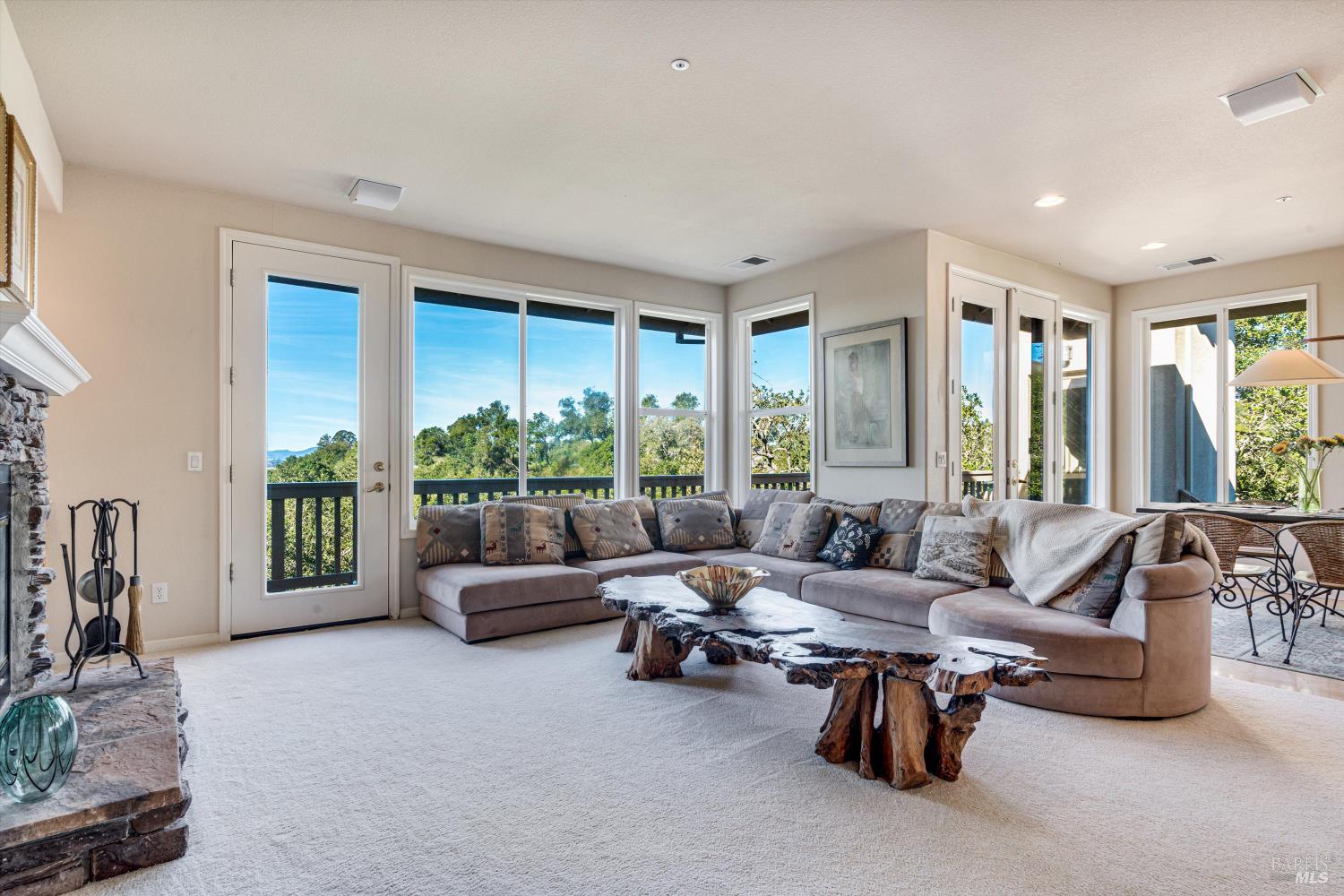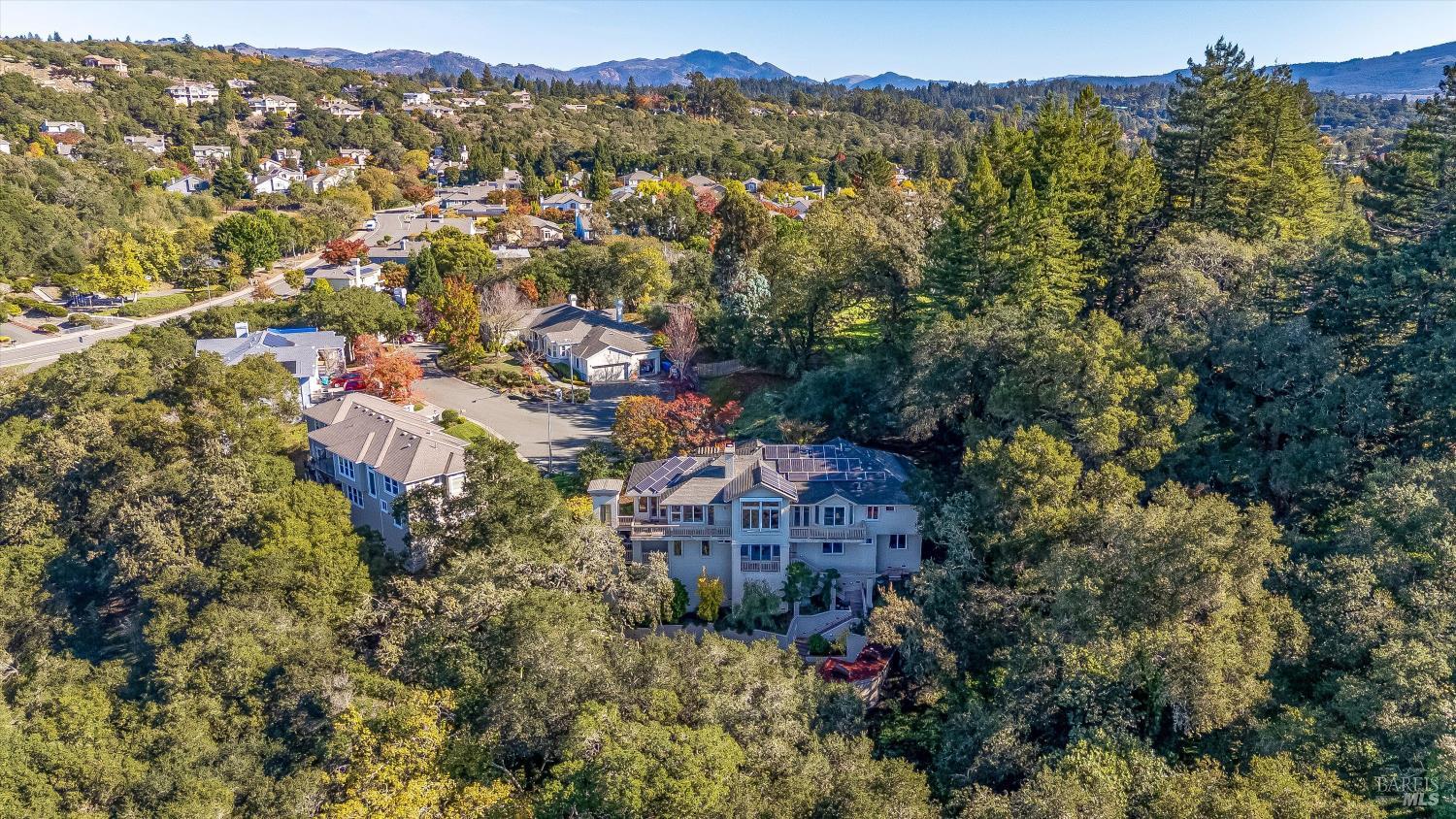Stunning westerly views over treetops to distant mountains, this 4-bed, 4-bath, 3,510 sq. ft. home is perched up high at the end of a private cul-de-sac on a .68-acre parcel. High ceilings and countless windows flood the space with natural light, perfect for taking in stunning sunsets. The main living area and primary bedroom suite sit conveniently at street level, while the lower floor includes three additional bedrooms, two full baths, a second family room, a wine cellar, and approx. 700 sq. ft. of versatile roughed-in space awaiting your vision, perhaps an ADU or other creative expansion. Venture outside to your private, lush, retreat-like paradise nestled in nature, featuring a swimming pool, hot tub, outdoor bar, cabana room with an attached bathroom, and a convenient poolside shower. Other standout features include a Private Elevator, Solar PV, a Greenhouse, a Micro-hobby vineyard and space for the gardening enthusiast. Whether you are seeking a peaceful sanctuary to unwind beneath radiant sunsets or a stylish venue for entertaining, this home offers the best of both worlds. Here you will find a perfect blend of comfort, privacy and convenience all in a location so serene it feels miles away from it all, yet remains just minutes from local amenities.Interested in this Listing?