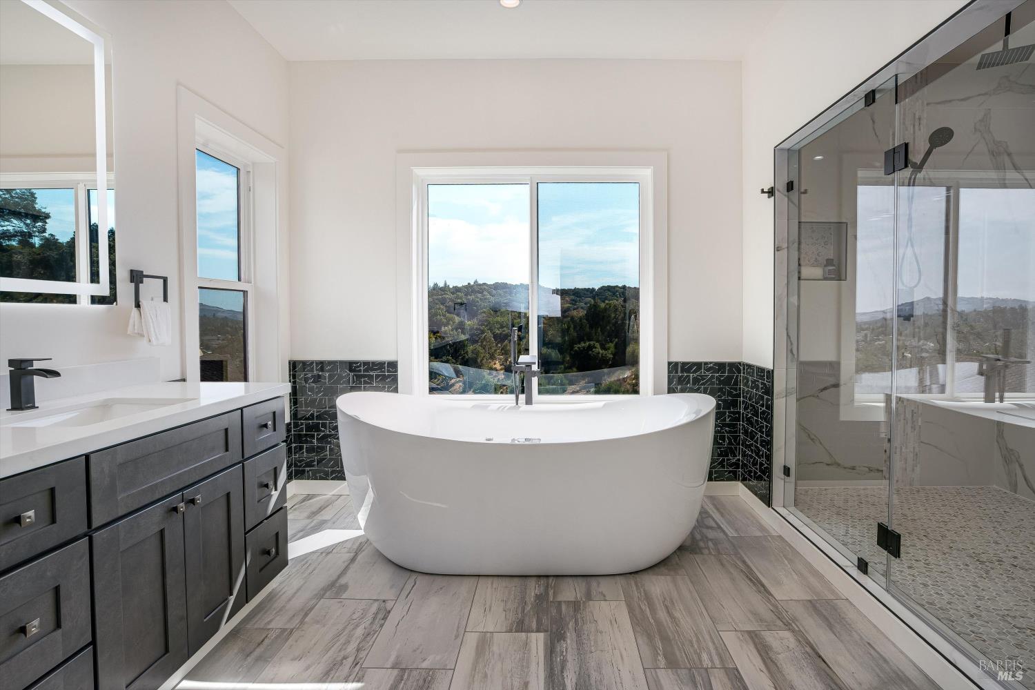 Stunning new construction home in Fountaingrove featuring 4 bedrooms, 3.5 baths, and 3,700 SQFT on a private 0.66 acre cul-de-sac lot with a detached 3 car garage. The main level offers a gourmet kitchen with stainless steel appliances, dining area, two living rooms, a breakfast nook, and office space. Upstairs, the luxurious primary suite boasts mountain views, a spa-like bath, and walk-in closet. The lower level is ideal for families, with three bedrooms and a kitchenette. Set on a generous lot with room to add a pool and an ADU, this home offers a rare blend of privacy, elegance, and Sonoma County's Wine Country lifestyle.Interested in this Listing?