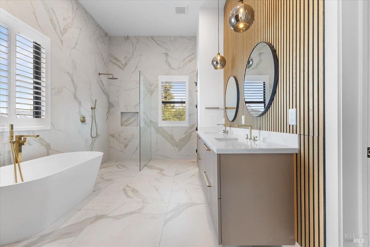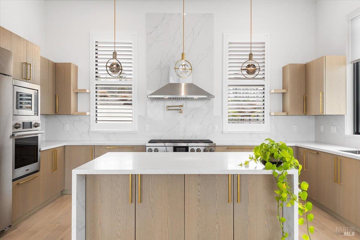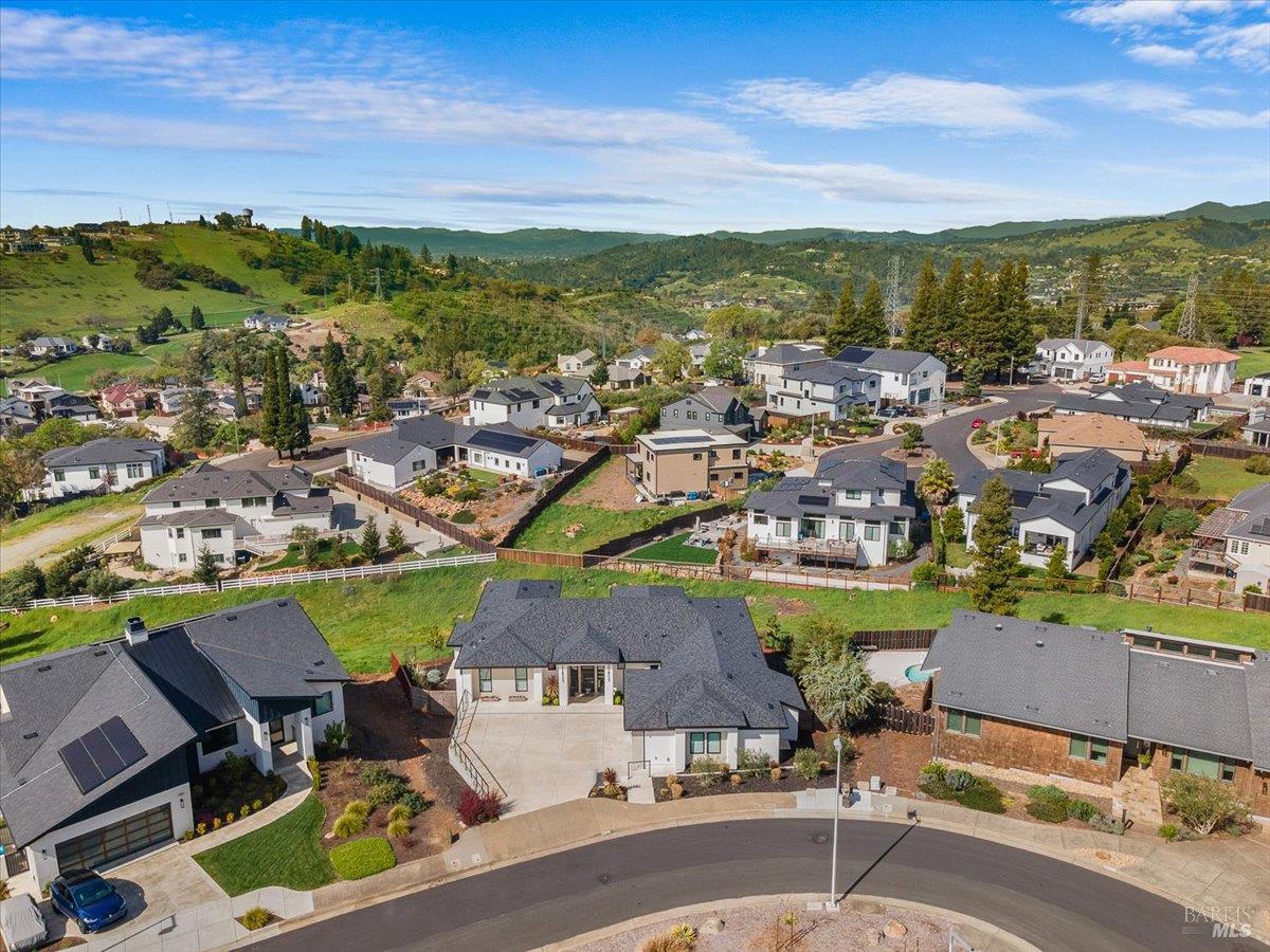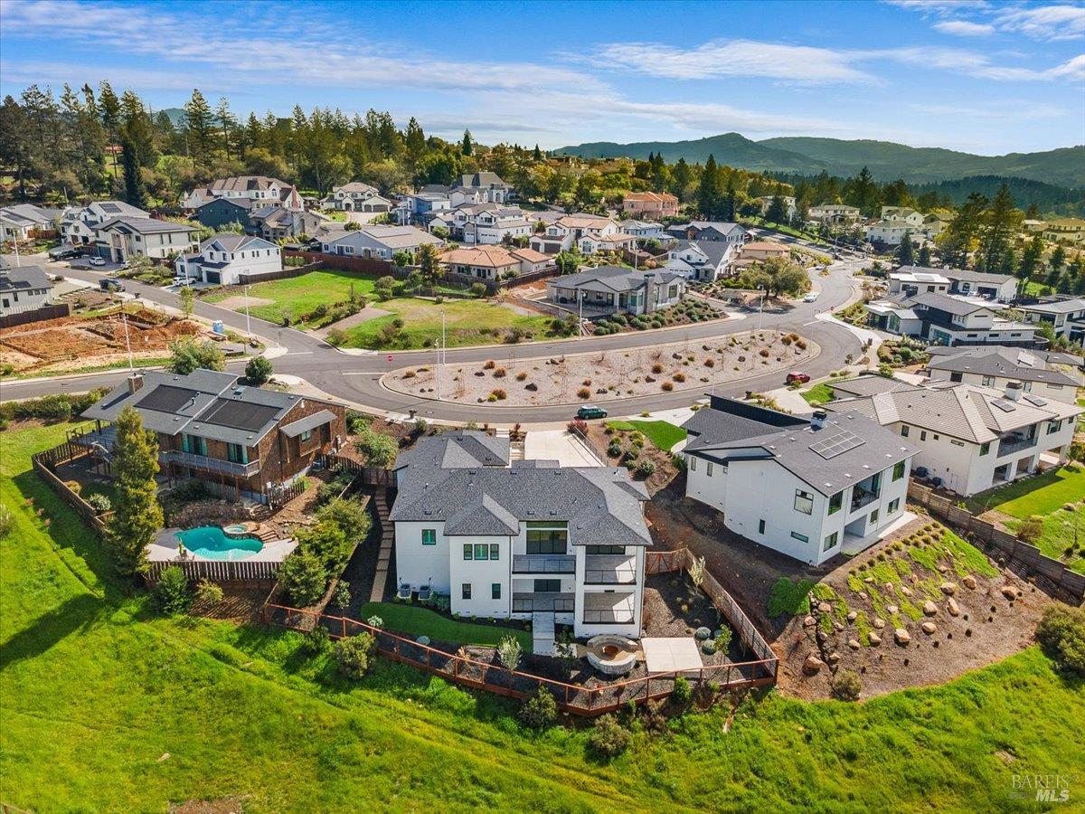 Welcome to refined living in the heart of Fir Ridge (Fountaingrove). Built in 2024 and backing to refreshing open space, this stunning 3,600 sq ft home offers sweeping views from nearly every angle and a level of finish that feels both elevated and effortless. With 4 bedrooms and 5 bathrooms across two thoughtfully designed levels, the home could easily live as a single-level layout thanks to the primary suite on the main level. Step inside to soaring 12-foot ceilings, a sleek linear gas fireplace, and designer lighting that creates a warm yet modern ambiance throughout. The temperature-controlled wine showcase makes a striking statement, while upgraded window shades and shutters add both style and function. The chef's kitchen is the heart of the home, featuring a dramatic quartz island, premium Dacor appliances, a walk-in pantry, and seamless flow into the dining and living spaces, perfect for entertaining or everyday living. Stunning bathroom finishes elevate every space, and the primary suite offers a spa-inspired retreat complete with a closet you truly have to see to believe. The main level includes the kitchen, dining room, living room, two bedrooms, two bathrooms, laundry room, garage access, and a spacious deck ideal for enjoying the surrounding views. Downstairs, you'll find two additional ensuite bedrooms, a generous den/game room, and direct access to the backyard and covered terrace, creating flexible space for guests, multigenerational living, or work-from-home needs. Set on a 13,839 sq ft lot, the backyard is designed for relaxation and connection, with a firepit, lawn area, space to garden, and multiple areas to unwind while taking in the natural setting. An extra-large garage and abundant storage throughout complete this exceptional property, where modern luxury meets serene open space living.Interested in this Listing?