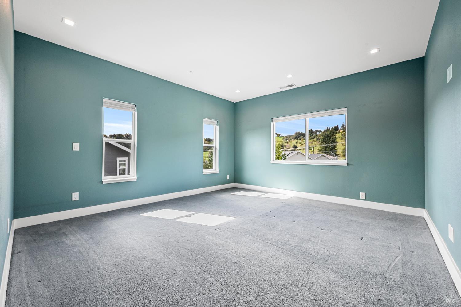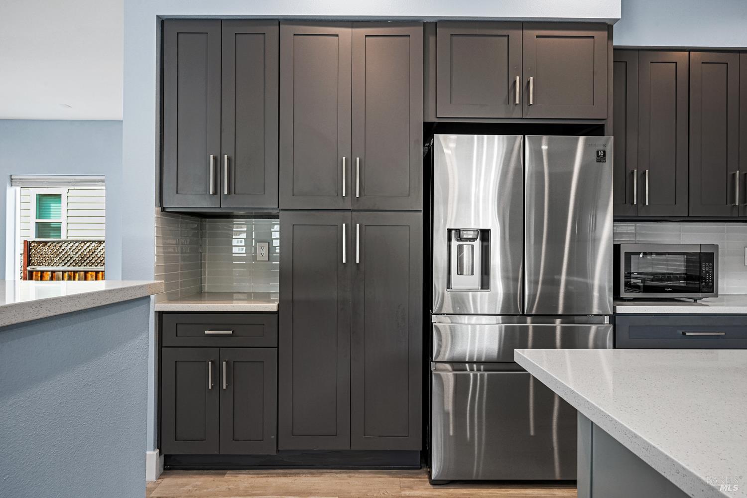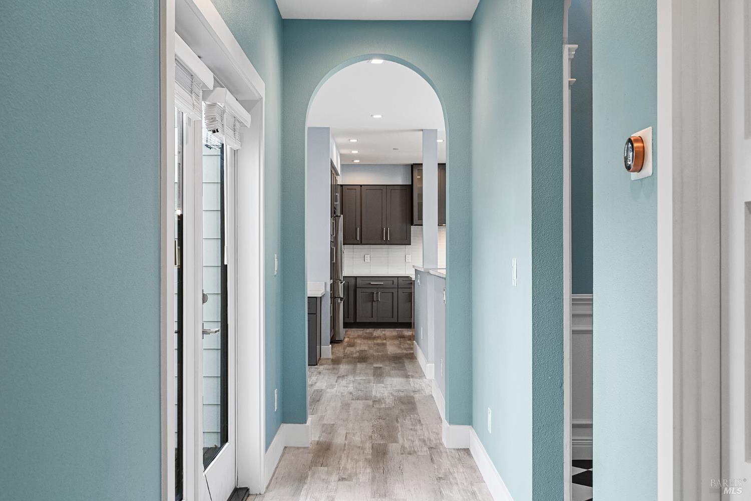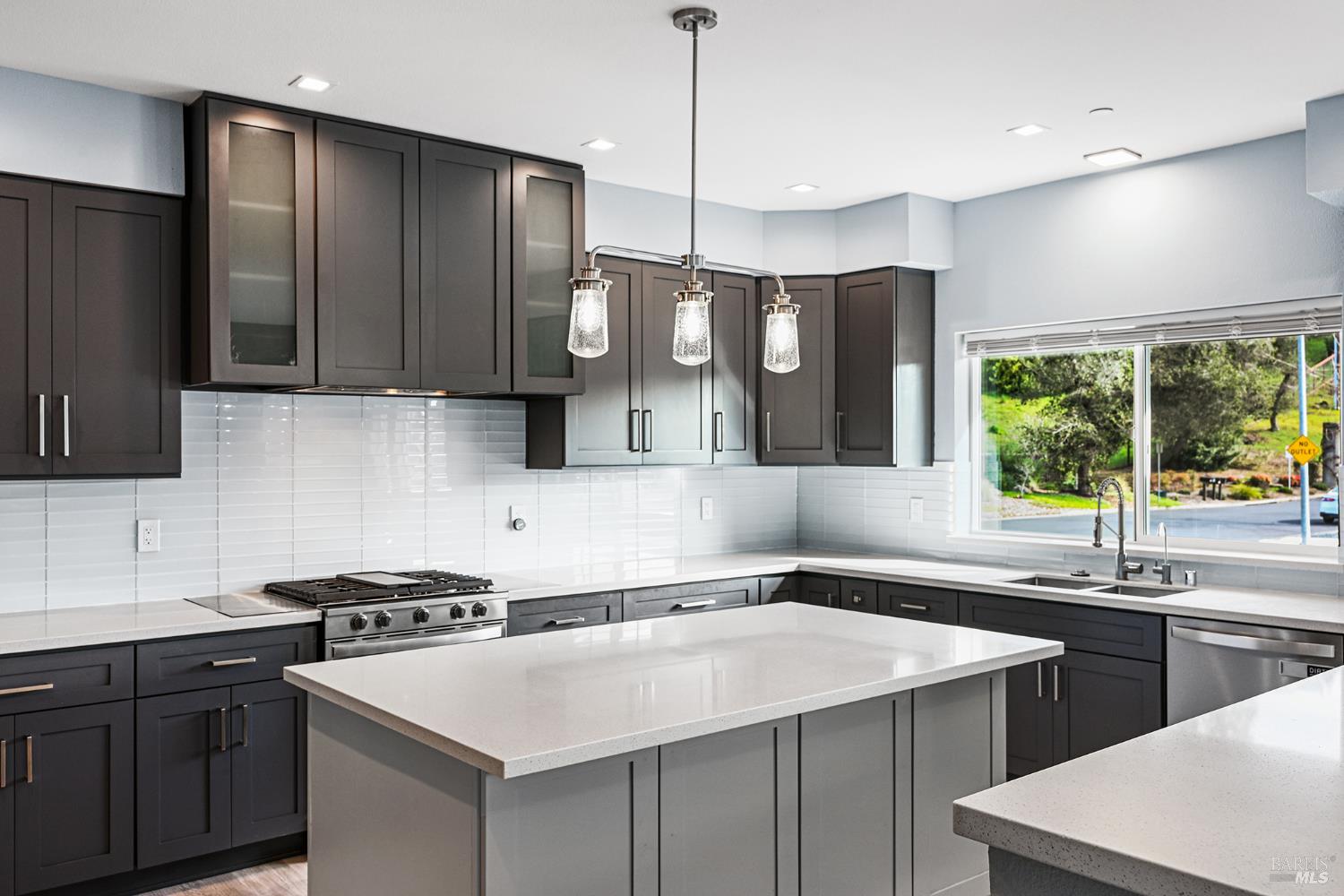 Recently built in 2019, this custom home blends modern design, quality construction, and effortless indoor-outdoor living on a desirable corner lot in a sought-after Santa Rosa neighborhood. The spacious chef's kitchen features quartz countertops, stainless steel appliances, a wine cooler built into the island, and generous prep and gathering space. French doors open to the rear deck and backyard, creating seamless flow for entertaining. A cozy sunken living room with recessed shelving and a striking two-sided gas fireplace add architectural interest and warmth. Designed for flexibility, the home offers three large bedrooms and three full bathrooms, including a bedroom and bath on the main level. Tile and laminate flooring enhance the main living areas, while spray foam insulation, Milgard premium double-pane windows, and a tankless water heater support energy efficiency and year-round comfort. A rooftop terrace with scenic views provides a wonderful place to relax. The low-maintenance, fire-resistant landscaping and fresh exterior paint add peace of mind and curb appeal. Modern conveniences include a Google Nest thermostat and doorbell, dimmer lighting throughout, motion-detector lighting in baths, laundry and primary closet, moisture-sensor fans, Samsung washer and dryer, and a spacious two-car garage with loft storage and a high-voltage outlet. Minutes from Fountaingrove Golf & Athletic Club, shopping, dining, and wine country destinations, this home offers an exceptional balance of convenience, lifestyle, and natural beauty.Interested in this Listing?
