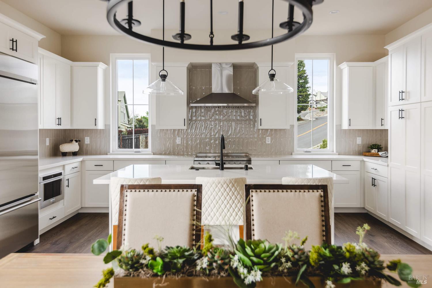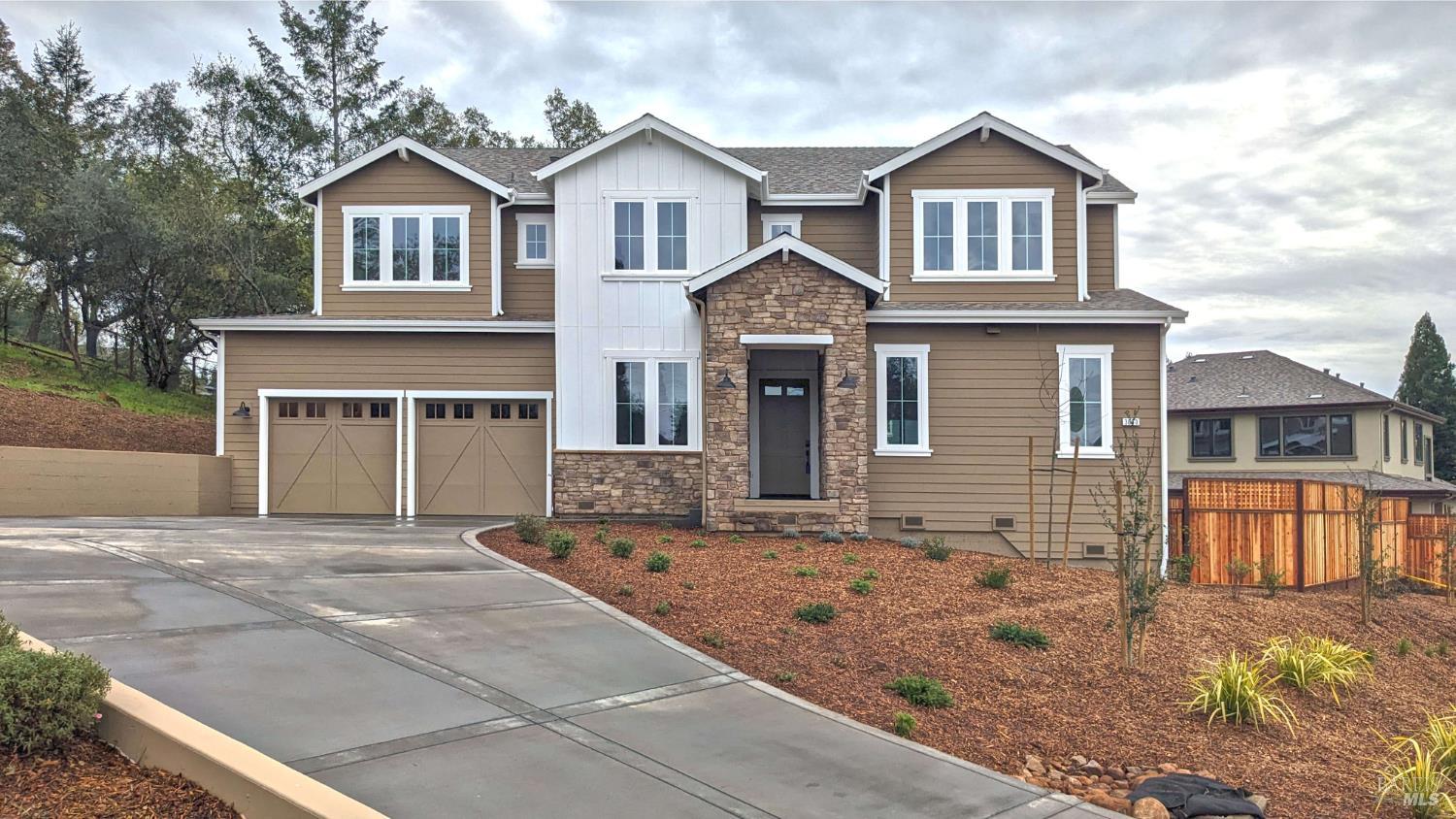 Welcome to Carlile Place, an intimate custom community of only 13 homes that have been thoughtfully designed by Christopherson Builders to be harmonious and distinctive. This farmhouse-style residence offers approximately 3,373 sq ft of interior living on over 1/2 acres. The main level features a junior primary suite with spa-style entry shower and walk-in closet-one of two primary suites, ideal for flexible or multigenerational living. The great room includes a fireplace and opens to a covered loggia with outdoor kitchen, creating a seamless indoor-outdoor living experience. Also on the main level are a spacious dining area, a large kitchen with island and sink, stainless steel appliances, an office with double-door entry, and a powder room. The upper-level shines with media/family room, an oversized primary suite with sitting area, walk-in shower, and separate soaking tub. There are two secondary bedrooms, a guest bathroom, and a generously sized laundry room with abundant counter space and sink. Additional features include a 3-car garage with utility sink and EV wiring. The home is set against a tree-lined hillside adjoining Fir Ridge Park and is 1 block to Fountaingrove Golf Course. Close to Wineries, 101. 15 minutes to Healdsburg and 40 minutes to the coast. Farmers Insurance quotes on file. Two home warranties offered.Interested in this Listing?