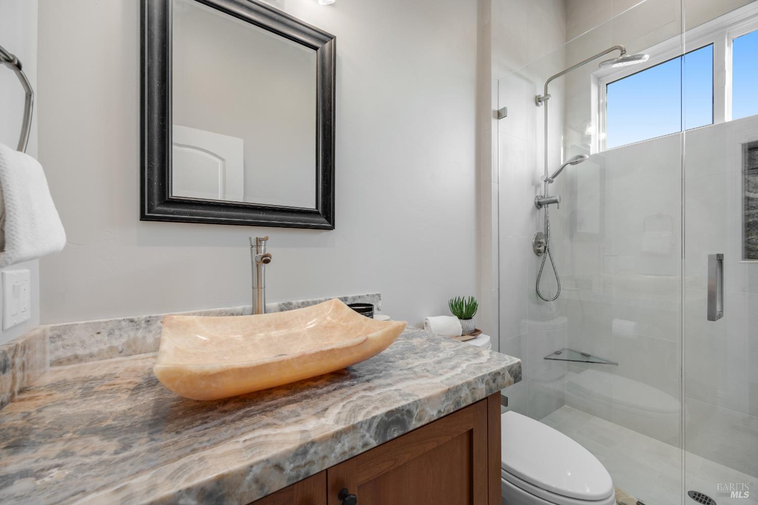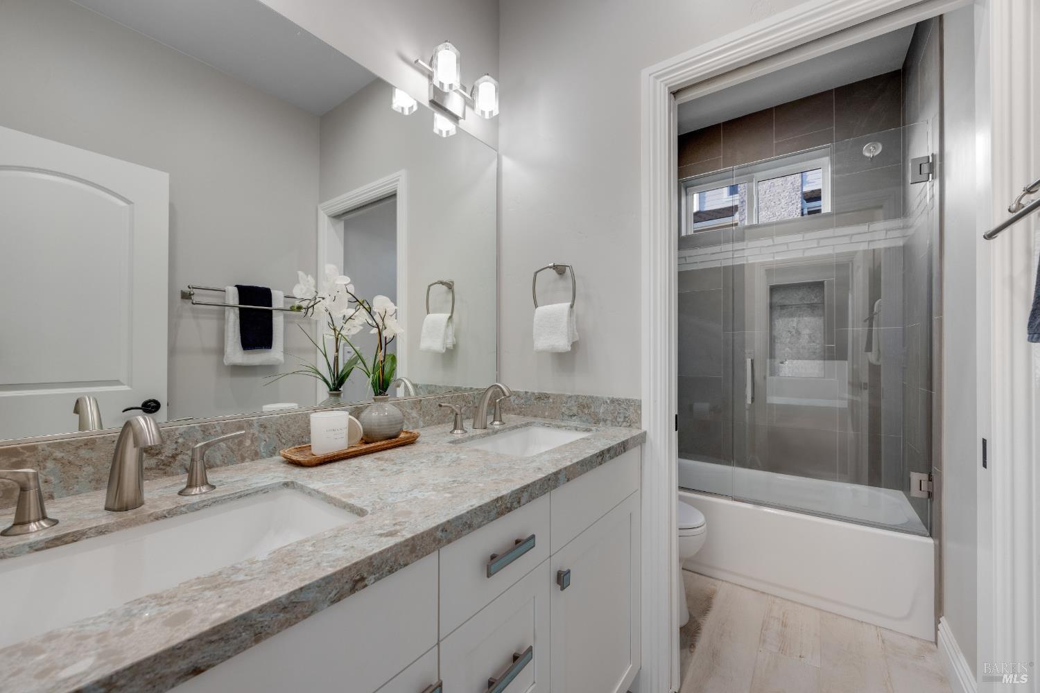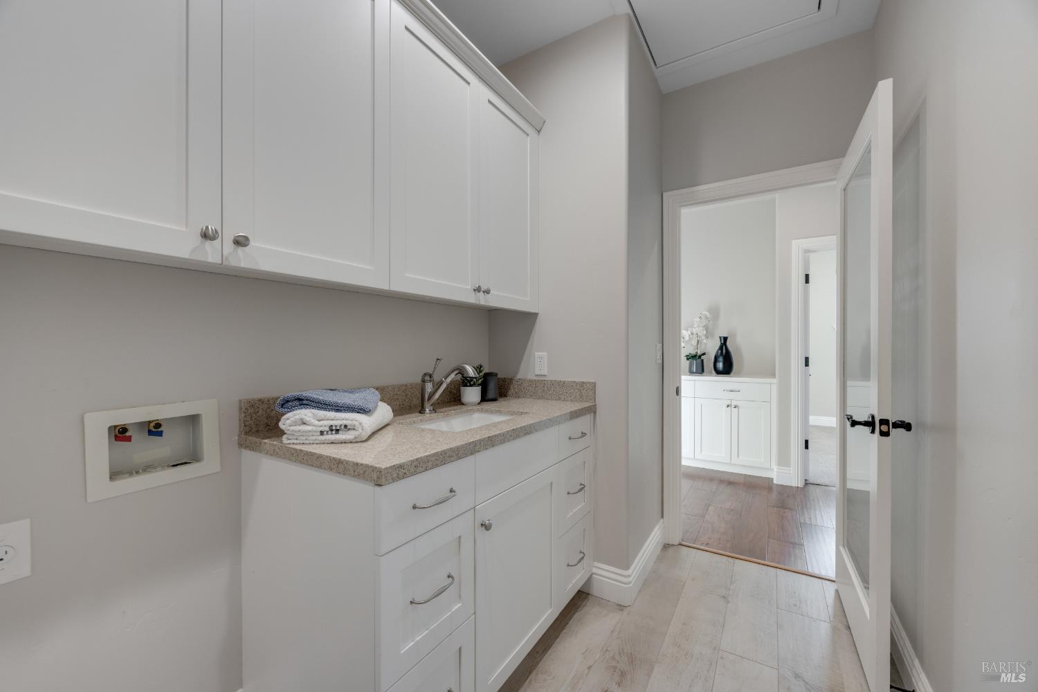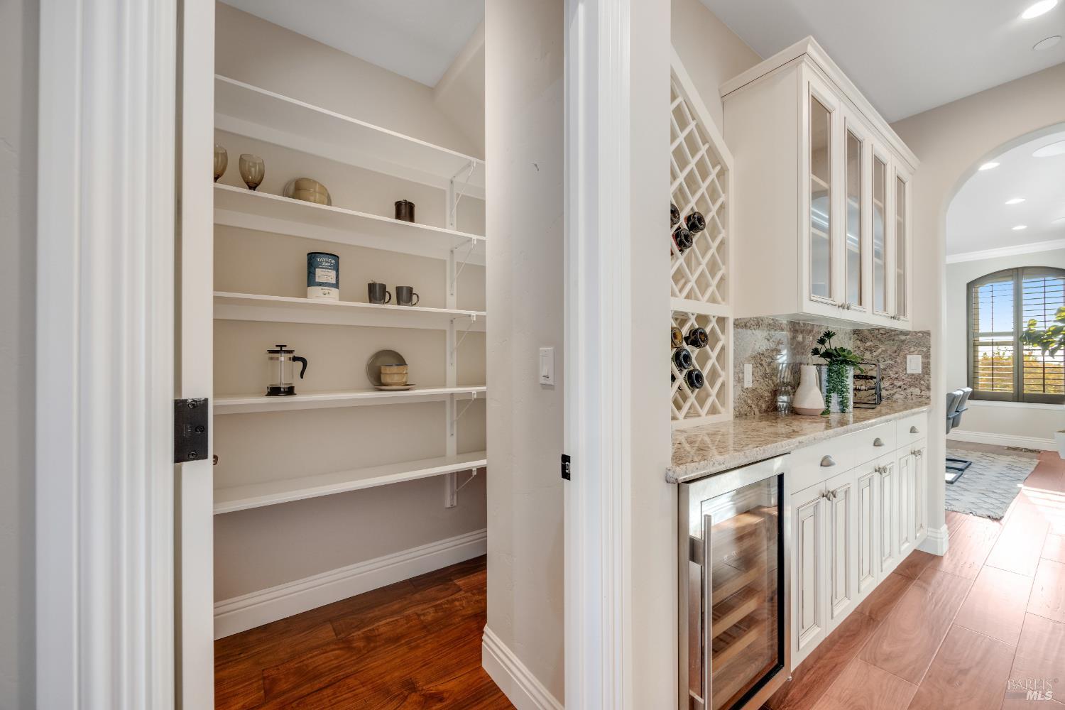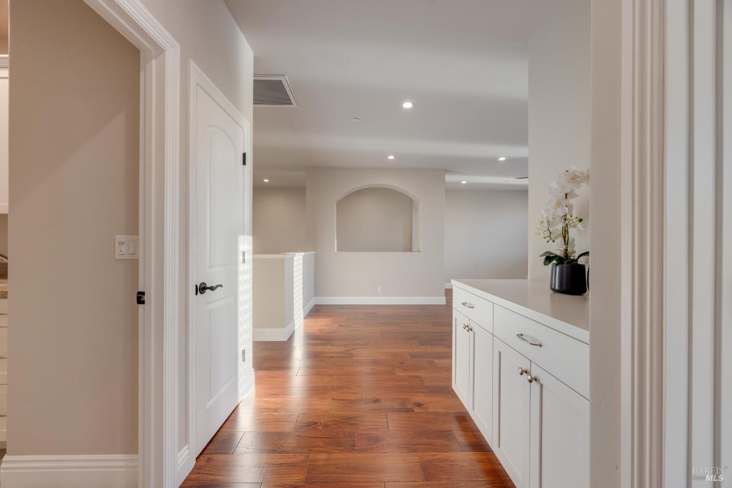 This modern, luxurious Fountaingrove gem blends elegance, comfort, and functionality across 3,818 sq. ft. of meticulously designed living space. Nestled on a generous 0.41-acre lot, this 4-bedroom, 3-bath home features a spacious loft, tile roof, and a 4-car tandem garage perfect for today's lifestyle. Step through the impressive entry to find crown molding and rich Acacia wood floors flowing throughout the main living spaces, setting a tone of warmth and sophistication. The formal dining room invites effortless entertaining, while the serene living room provides a peaceful retreat with tranquil views. The expansive great room centers around a stunning gas fireplace framed by custom built-ins and surround sound, seamlessly opening to the chef's kitchen. Culinary enthusiasts will love the granite countertops, soft-close cabinetry, pendant-lit island, Wolf double ovens and range, Sub-Zero refrigerator, KitchenAid dishwasher, and butler's pantry with wine storage plus a walk-in pantry with decorative glass door. The luxurious primary suite offers a private sanctuary featuring a cozy gas fireplace, coffered ceilings, dual walk-in closets, custom built-ins, private deck, spa-like bath with soaking tub, glass shower, and dual granite vanities. A dramatic staircase leads to the versatile upstairs loft, ideal for a media room, home office, or play space. Additional amenities include upstairs laundry, central heat/air, soft water system, owned solar, alarm system, and a whole-home Generac generator for ultimate peace of mind. Step outside to beautifully landscaped grounds with a paver patio, gas firepit, flagstone pathways, and a relaxing luxury spa all backed by open space for added privacy. A rare opportunity to experience elevated Fountaingrove living refreshed, refined, and ready to welcome you home.Interested in this Listing?