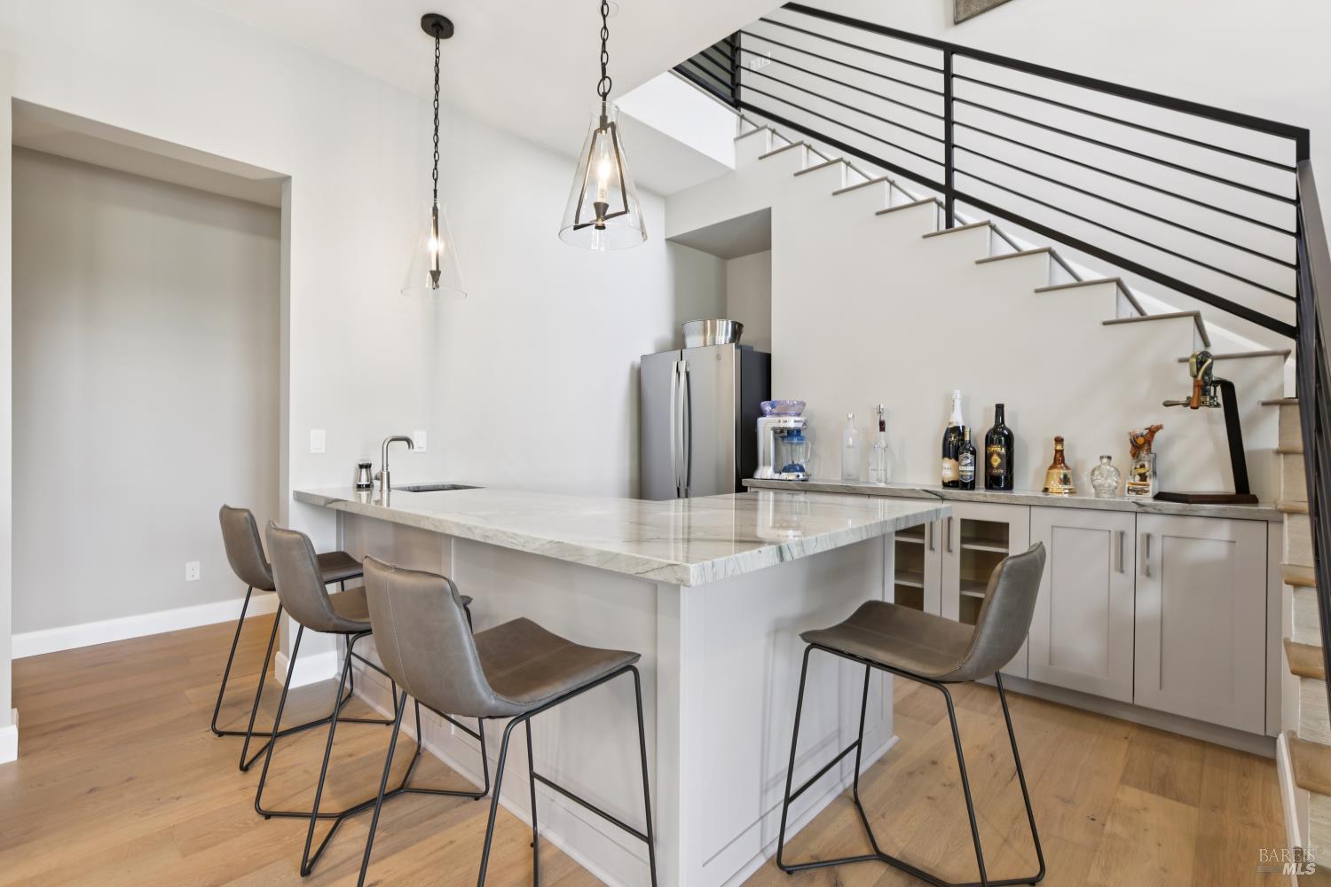 Welcome to this private gated estate where luxury, design, and lifestyle converge. This stunning custom home showcases impeccable craftsmanship and high-end finishes throughout. Step inside to soaring vaulted wood-beamed ceilings, rich white oak wood flooring, and a grand statement fireplace that anchors the light-filled living spaces. Fleetwood retractable sliding doors create seamless indoor-outdoor flow to a covered patio complete with a full outdoor kitchen and TVideal for elevated entertaining. The gourmet kitchen is a showstopper, featuring a 6-burner stove, oversized refrigerator, beverage fridge, warming drawer, waterfall quartzite countertops, and a walk-in pantry with a built-in coffee bar. A dramatic temperature-controlled wine wall adds a sophisticated touch. Retreat to the luxurious primary suite with a private deck and a spa-inspired bathroom offering heated floors, soaking tub, walk-in shower with custom tile, double vanities, and a bespoke walk-in closet with glass storage and center island. Downstairs is an entertainer's paradise with a full bar, pool table, great room, home theater, and covered patio. Outdoors, enjoy a Baja beach pool with dual umbrellas, spa, raised garden beds, expansive patios, and breathtaking views and backing to open space. All on a manicured 1.26 acre private lot. Complete with a 3-car garage, paid solar, and Generac generatorthis estate delivers exceptional living at every turn.Interested in this Listing?